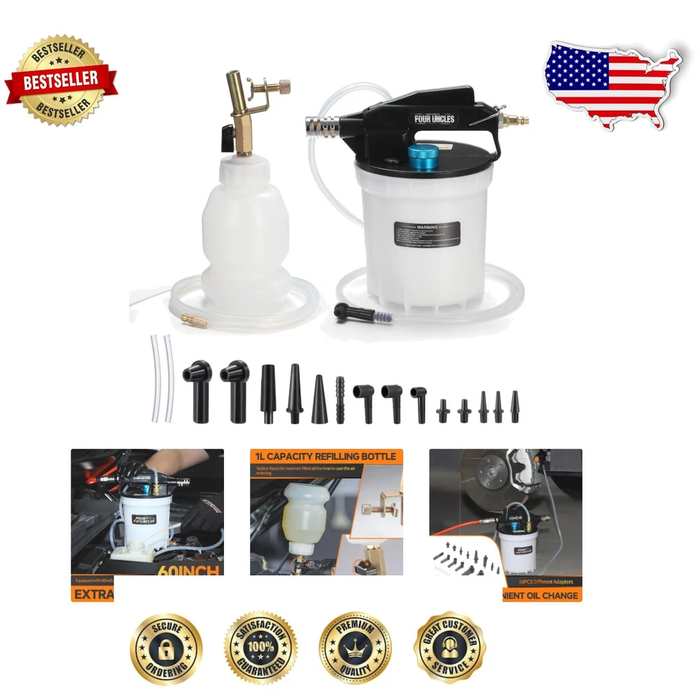 2L Vacuum Pump Brake Bleeder Kit for One-Person Operation - Quiet & Efficient ‹ › ‹ › ‹ › ‹ › ‹ › ‹ › ‹ › ‹ › ‹ › 2L Vacuum Pump Kit Perfect for One-Person Operation : This innovative is designed for effortless bleeding and flushing of hydraulic brakes and clutches with its intuitive vacuum system. Eliminate the hassle of multiple operators while enjoying the simplicity of use. Key Features: Large 2-liter collection reservoir for ample fluid capacity, ensuring your work is efficient without frequent interruptions. Comes with an automatic master cylinder refill kit, complete with a 1-liter safety cup—making brake oil changes a breeze! Includes 16 versatile adapters compatible with most standard and ABS brake systems for utmost convenience. Two 60-inch silicone bleed hoses designed for precision: one universal rubber adapter, and one master cylinder evacuation hose for enhanced capabilities. Variable thumb throttle allows you to maintain an average airflow rate of 2 CFM, optimizing your desired brake fluid flow rate. Fixing ring lock feature ensures continuous, efficient oil extraction for faster results. Built-in integrated silencer provides a quieter operation, making the bleeding process cleaner and less messy. Compact and lightweight, weighing less than 4 lbs, making this kit easy to handle and perfect for anyone to operate. Experience the Advantages: Effortlessly operate the on your own, removing the need for additional assistance. Change brake fluid quickly and with minimal mess, thanks to the integrated silencer and well-designed components. Portability allows for ease-of-use from your garage to the track, accommodating a variety of users. Take control of your brake maintenance without the complications—ideal for both amateurs and professionals. Why Choose Our 2L Vacuum Pump Kit? A leap forward for your automotive care routine, our 2L Vacuum Pump Kit simplifies a traditionally complex task with finesse and efficiency. Neglect the chaos typically associated with brake maintenance, and embrace the serenity of a well-engineered, user-friendly solution. This kit's unique features, combined with its quiet operation, make it an essential tool for anyone committed to vehicle care. Don't compromise on quality—make the intelligent choice for personal brake maintenance. Order your kit today and experience the ease of operation! Shipping Free & Fast Shipping - We offer free shipping to most of the USA with a normal delivery time of 3-7 days. However, due to the current situation, additional delivery time (up to 3 weeks) may be required for some items. Alternative Carriers - We may use alternative carriers (e.g. USPS, FedEx, UPS, etc.) to ensure your package arrives safely and on time. Due to the use of multiple carriers, we are unable to provide a tracking number automatically. Handling Time - Orders are processed and shipped within 1-2 business days of receiving cleared payment. Shipping Restrictions - Shipping to Alaska, Hawaii, Puerto Rico, Guam, and other US territories may incur shipping charges or delivery restrictions. Please contact us before ordering, or your order can be refunded/cancelled. State Restrictions - There may be restrictions based on your state of purchase. For example, certain items may not be shipped to California due to state regulations. Contact for Tracking Updates - If you require tracking updates or have any concerns about the delivery of your order, please feel free to contact us, and we will be happy to assist you. Return 30-Day Hassle-Free Returns - We want you to be completely satisfied with your purchase. If you are not, you can return the item within 30 days of receiving it for a full refund or exchange. Easy Return Process - To start a return, simply contact us and we will provide you with a prepaid return shipping label and detailed instructions. Restocking Fee - There are no restocking fees for returns. However, the buyer is responsible for return shipping costs if the return is not due to a seller's error. Refund Processing Time - Refunds will be processed within 5 business days of receiving the returned item in its original condition. Payment We accept all major credit cards, PayPal, and Apple Pay for your convenience. Your payment information is secure and encrypted to ensure a safe and seamless transaction. Please complete your payment within 3 days of purchase to avoid any delays in shipping. Feedback Your feedback is extremely important to us. We strive to provide the best products and customer service possible. If you are satisfied with your purchase, please take a moment to leave us a positive review. If you have any concerns or issues with your order, please contact us before leaving negative feedback. We are committed to resolving any problems and ensuring your satisfaction. Contact Us If you have any questions or concerns, please feel free to reach out to our customer support team. You can contact us through the eBay messaging system. We are available Monday to Friday, 9:00 am to 5:00 pm EST, and we will do our best to respond to your inquiry within 24 hours. Buy it now and enjoy a pleasant shopping experience! Manufacturer Part Number: Brake Bleeder Kit UPC: Not Set Unit Quantity: 4.05 Type: Brake Bleeder Vacuum Pump Kit,Automotive Bleeding Kit,Brake Bleeder Kit,Brake Fluid Extractor,One-Person Brake Bleeder,Brake Repair Tool Brand: Unbranded Warranty: Unspecified Length Country/Region of Manufacture: Not Set Unit Type: lb