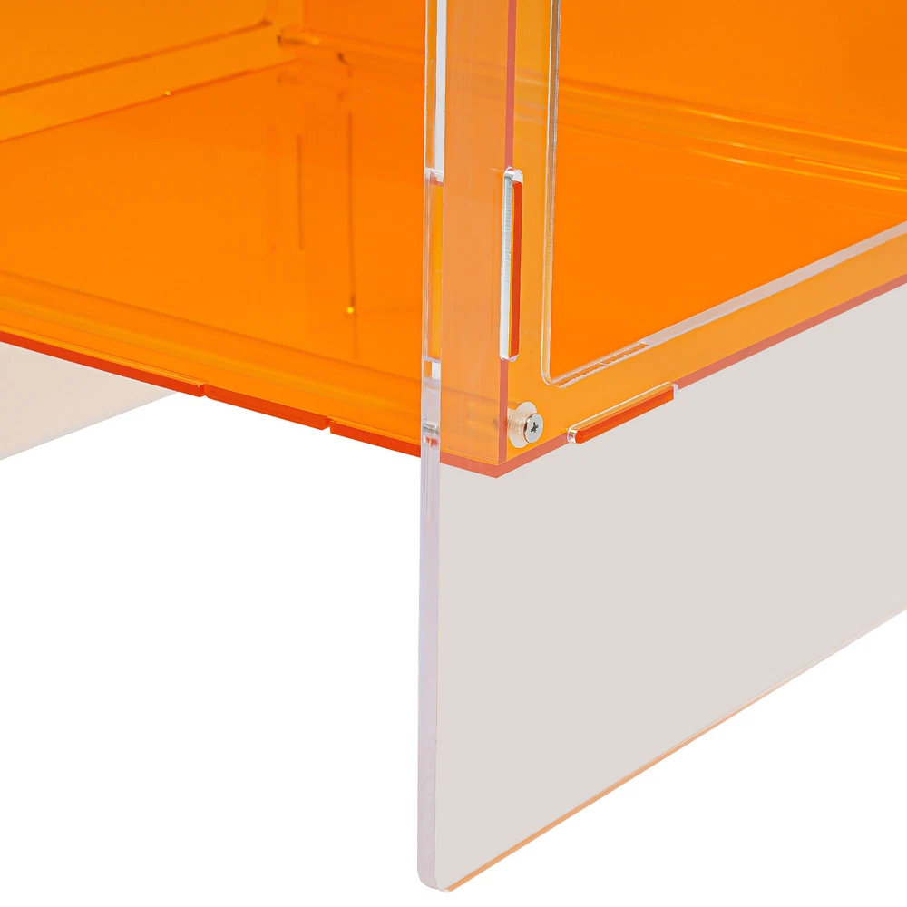 2-Layers Clear Side End Table Acrylic Coffee Table for Living Room Bedside Table Description This acrylic bedside table is not only sturdy and durable but also thoughtfully designed and powerful. The 2-tier structure allows you to sort various jewelry, cosmetics, lamps, books, snacks, and cups. With this product, you can create a neat and cozy room environment, so that you can have a good mood every day! Key Features Build to Last : Premium acrylic with an exquisite laser cutting process makes this product environmentally friendly , safe, rust-resistant , corrosion-resistant , and less prone to deform, so it can maintain aesthetics and practicality for a long time. Storage Assistant: With its 2-tier construction and suitable tier spacing (15.75in), this acrylic bedside table offers plenty of storage space for your items. You can sort your books, toys, cosmetics, plants, and decorative items (all not included) on separate tiers. Suitable Load-bearing Capacity: High-quality material(8mm) and rectangular structure allow this product to hold 22.05 lbs in total, so you can use it with confidence. Space-saving : With its cuboidal structure and vertical design, this product has a small footprint(18.11*15.75 inches) and can be placed in most corners to create a tidy space. Ideal Gift : Beautiful appearance and practical function make it a thoughtful housewarming gift for friends. Easy to Install : The simple structure, pre-drilled holes, and complete accessories allow you to complete installation and start using it in a short period. Nice Appearance: It has a pleasing orange color and smooth lines, giving it a modern appearance that matches most décor styles, making it suitable for most usage scenarios. Effortless Cleaning : With its open construction and smooth surface, you can simply rinse it with water or wipe off surface dust with a damp rag. Good Customer Service : We stand behind all our guests and look forward to assisting you with your purchase. It is our pleasure to answer your confusion and questions. The end of the story between us is not "we sell and you buy". Details Open Storage Compartment : Open storage compartments make it easy to place your books and other items, and allow for easy access. Raised Bottom : The 3.94-inch raised design prevents the bottom from getting wet while making it easy for you to clean. Raised Guardrail : The 1.97-inch raised guardrail prevents items from sliding off. Smooth Surface : The product has a smooth, flat, burr-free surface, making it safer to install and clean. Application It is suitable for indoor places such as the living room, office, and bedroom. It can be used as a bedside table, sofa side table, or storage cabinet for storing cosmetics, books, newspapers, magazines, cups, sundries, etc. Specification Material: Acrylic Color: Orange Process: Laser Cutting Assembly Required: Yes Style: Modern Shape: Rectangular Mount Type: Floor Mount Number of Tiers: 2 Total Load-bearing Capacity: 10kg/22.05lbs Tier Spacing: 40cm/15.75in Plate Thickness: 8mm/0.31in Guardrail Height: 5cm/1.97in Bottom Height: 10cm/3.94in Product Size: 46*40*55cm/18.11*15.75*21.65in Package Size: 58*50*10cm/22.83*19.69*3.94in Gross Weight: 7kg/15.43lbs Net Weight: 6.5kg/14.33lbs Package Included 1*Acrylic Bedside Table All Accessories for Assembly Notes Please confirm the product dimensions before purchasing. Please note that this product does not contain any decorations. Please allow the slight color difference caused by the shooting light and 1-3 cm error due to manual measurement, and make sure you do not mind before ordering. Payment Delivery details Terms of sales About us Contact us Payment We accept ebay payment 。 Fees such as import duties, taxes are not included in the item price or shipping costs. These charges are the buyer's responsibility. Delivery details Shipping: 2-9 working days to: USA Terms of sales We maintain high standards of excellence and strive for hundred percent customer satisfaction. Feedback is very important to us. We hope that you contact us immediately before you give neutral or negative feedback, so that we can address your concerns. It is impossible to address issues if we do not know about them! About us Your satis faction is our ultimate goal. We work hard to earn your trust and future business. Our certified technicians have tested each item before shipping. The unit comes with 1 year limited warranty on all manufacturing defects. a) If you receive a defective item, you may return it or ask for a discount. Please contact us within 14 days after you receive the package. b) What you returned must be intact and in its original packaging as re? u. Customer is responsible for shipping costs of the returned item. c) We will cover the cost of shipping back t with the shipping rate indicated in the registration page. We will send you a new unit or refund the full payment you paid. Thank you. Contact us Business Hour Business Hour: Monday To Friday: 8:30 AM to 5:00 PM (Beijing China time) Due to time zones, our reply to your questions may not be immediately. But within above working time, we will reply your email within 24 hours. If it's non-workdays, please kindly be patient and wait till Monday. Please contact us with ebay message. Please feel free to contact us if you have any questions. Monday To Friday: 8:30 AM to 5:00 PM (Beijing China time) Due to time zones, our reply to your questions may not be immediately. But within above working time, we will reply your email within 24 hours. If it's non-workdays, please kindly be patient and wait till Monday. Please contact us with ebay message. Please feel free to contact us if you have any questions. Brand Unbranded Item Height 21.65in Item Length 18.11in Item Width 15.75in Type Side/End Table Color Orange Material Acrylic UPC Does not apply