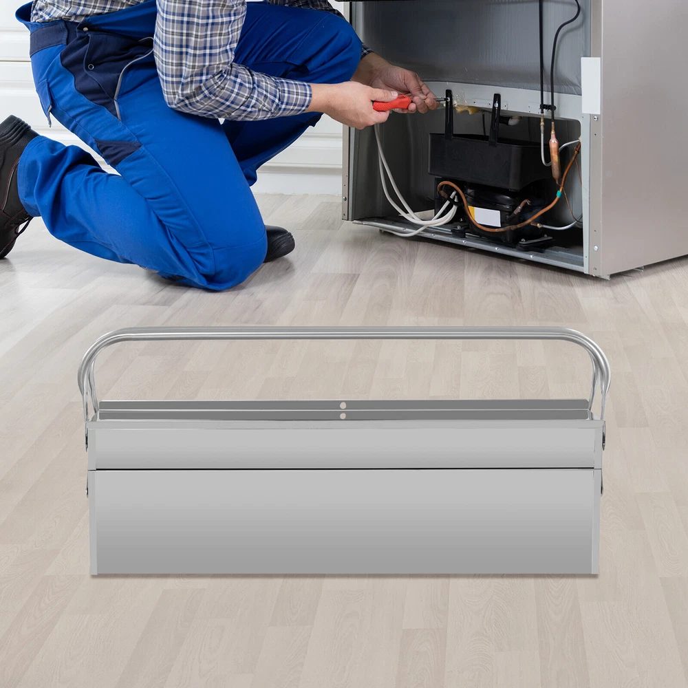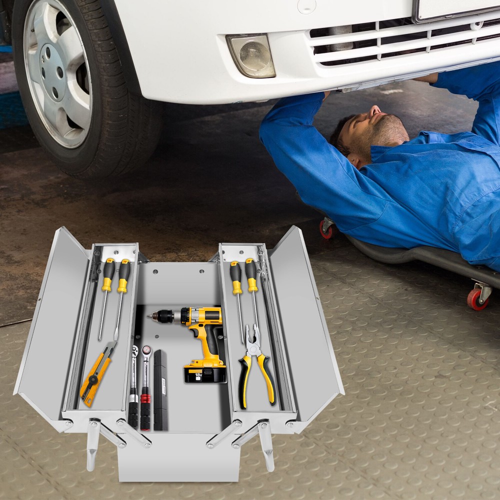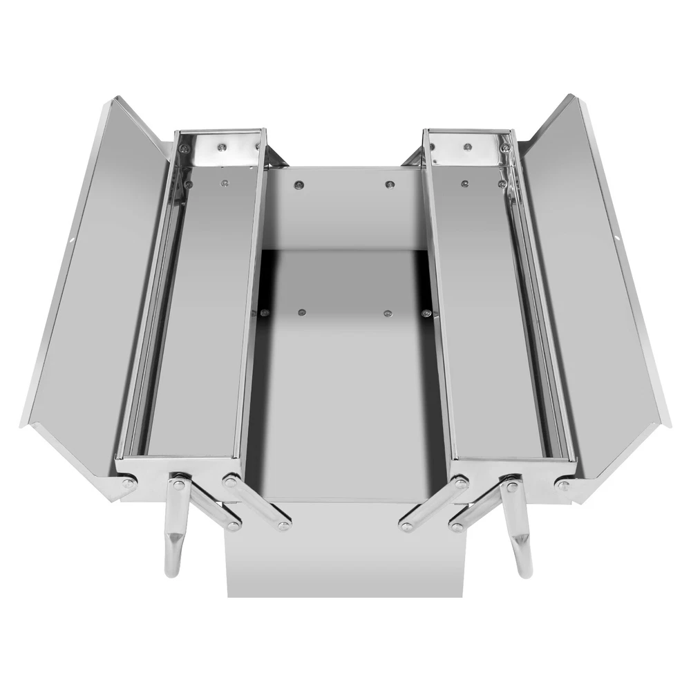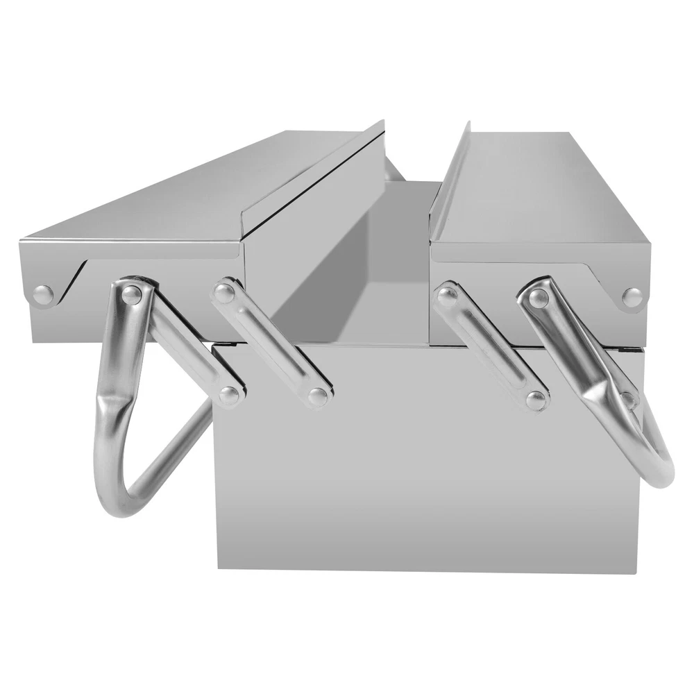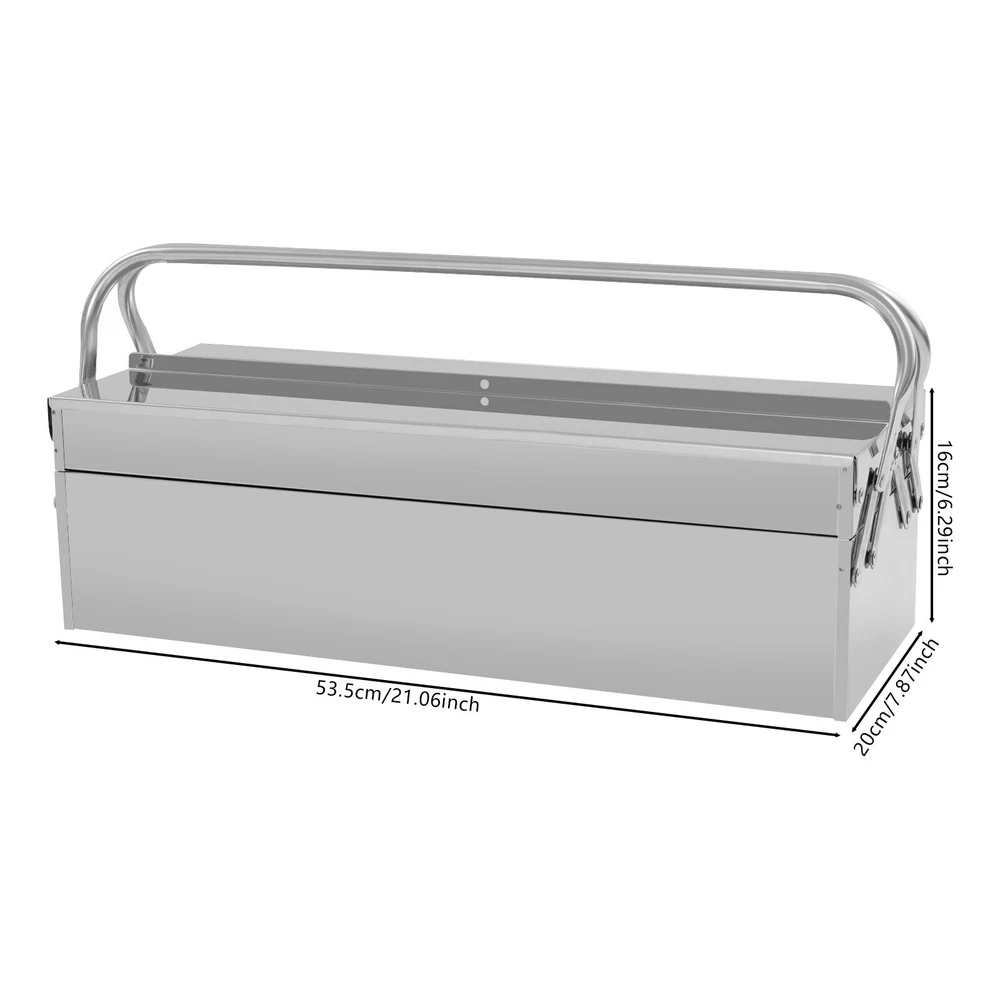 Tool Storage Box, Folding Tool Box, 2-Layer Multi-Function Tool Organizer Description This tool storage box provides you with an effective way to keep your frequently used tools organized. The retractable tray and bidirectional opening design make it easy to categorize and access your tools when needed. The lock hole design ensures the security of your tools, while the double handle design facilitates easy movement and carrying. In summary, this practical product is an excellent assistant for storing your tools. Key Features Made to Last: High-class 410 stainless steel and electroplating process make this product rust-resistant , corrosion-resistant , impact-resistant , and not easily deformed, ensuring long-term use. Two-tier Large Capacity: The retractable tray design makes it easy to place different tools on each tray, and the bottom space is suitable for large and heavy items. Its bidirectional opening design makes it easier for you to access tools during use. Thoughtful Design: The lock hole with a diameter of approximately 0.31 inches allows you to hang a lock (not included) to prevent tools from being lost during transportation, while also preventing children from coming into contact and ensuring safety. Good Portability: The foldable dual-handle design allows you to effortlessly store and transport the toolbox to any place you desire. You can place it in your car trunk for convenient use. Ideal Gift : This product embodies a blend of practicality and aesthetics, making it an ideal gift option for your family, friends, and colleagues. Ready to Use : You can use this product directly after receiving it without additional installation, which saves you time and energy. Easy to Clean: With its simple construction and smooth surface, you can simply wipe off surface dust with a damp rag(not included). Good Customer Service: We stand behind all our guests and look forward to assisting you with your purchase. It is our pleasure to answer your confusion and questions. The end of the story between us is not "we sell and you buy". Details Connecting Rods: The connecting rods fixed by reinforced rivets are strong and durable. Smooth Edges: They can protect your hands from being scratched during use and cleaning and also improve the aesthetics of the product. Application This product is suitable for organizing your screwdrivers, wrenches, drill bits, automotive repair tools, household repair tools, and more in garages, homes, workshops, tool sheds, repair shops, and other environments. Specifications Color: Silver Material: 410 Stainless Steel Process: Electroplate Shape: Rectangle Style: Modern Assembly Required: No Mounting Type: Free Standing Wall Thickness: 0.5mm/0.02in Number of Tiers: 2 Lock Hole Diameter: About 8mm/0.31in Inner Width of Each Tray: 10cm/3.94in Product Size: 53.5*20*16cm/21.06*7.87*6.3in Package Size: 58*25.5*25cm/22.83*10.04*9.84in Gross Weight: 3.38kg/7.45lbs Net Weight: 2.88kg/6.35lbs Package Included 1* Tool Storage Box Notes Please check the size carefully before ordering. Please note that the product does not include a lock or any tools. Please allow the slight color difference caused by the shooting light and the 1-3 cm error due to manual measurement, and make sure you do not mind before ordering. Payment Delivery details Terms of sales About us Contact us Payment We accept ebay payment 。 Fees such as import duties, taxes are not included in the item price or shipping costs. These charges are the buyer's responsibility. Delivery details Shipping: 2-9 working days to: USA Terms of sales We maintain high standards of excellence and strive for hundred percent customer satisfaction. Feedback is very important to us. We hope that you contact us immediately before you give neutral or negative feedback, so that we can address your concerns. It is impossible to address issues if we do not know about them! About us Your satis faction is our ultimate goal. We work hard to earn your trust and future business. Our certified technicians have tested each item before shipping. The unit comes with 1 year limited warranty on all manufacturing defects. a) If you receive a defective item, you may return it or ask for a discount. Please contact us within 14 days after you receive the package. b) What you returned must be intact and in its original packaging as re? u. Customer is responsible for shipping costs of the returned item. c) We will cover the cost of shipping back t with the shipping rate indicated in the registration page. We will send you a new unit or refund the full payment you paid. Thank you. Contact us Business Hour Business Hour: Monday To Friday: 8:30 AM to 5:00 PM (Beijing China time) Due to time zones, our reply to your questions may not be immediately. But within above working time, we will reply your email within 24 hours. If it's non-workdays, please kindly be patient and wait till Monday. Please contact us with ebay message. Please feel free to contact us if you have any questions. Monday To Friday: 8:30 AM to 5:00 PM (Beijing China time) Due to time zones, our reply to your questions may not be immediately. But within above working time, we will reply your email within 24 hours. If it's non-workdays, please kindly be patient and wait till Monday. Please contact us with ebay message. Please feel free to contact us if you have any questions.