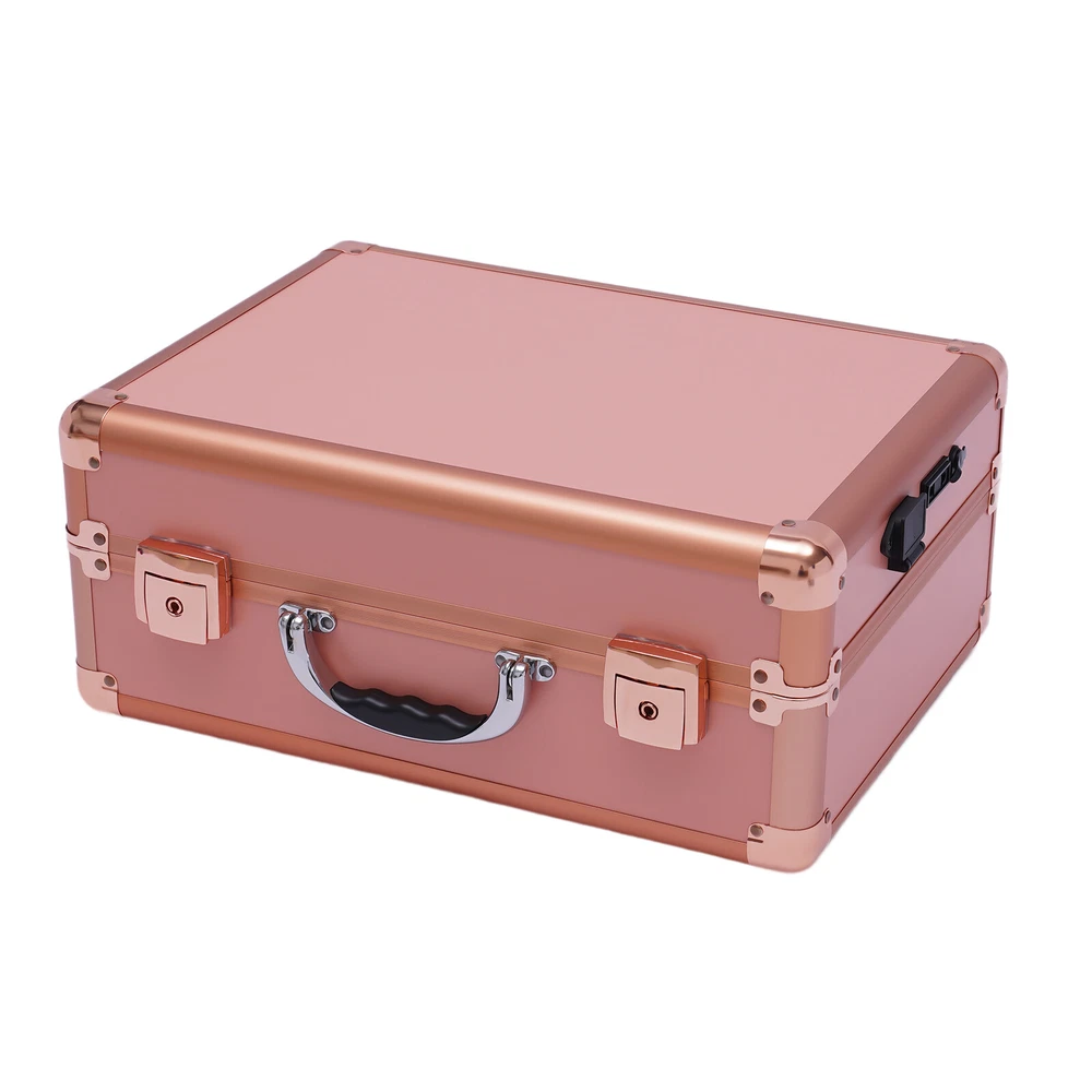 2-Layer Portable Makeup Bag Train Cosmetic Storage Case w/ 2 Lock & LED Mirror Specification Main Material: ABS Color: Rose Gold Plug Type: US Light Source: LED Light Color: Cold White, Warm White and Natural Light Voltage: 110-240v, 50-60Hz Power Cord Length: 1.8m/5.91ft Package Size: 40*21*35cm/15.75*8.27*13.78in Top Cover Mirror Size: 37*28*6.5cm/14.6*11*2.6in Bottom Tray Size: 37*28*9.5cm/14.6*11*3.7in Overall Case Size: 37*28*16cm/14.6*11*6.3in Center Tray Size: 15*22*4cm/5.9*8.7*1.6in Gross Weight: 4kg/8.82lbs Net Weight: 3kg/6.61lbs Package Included 1*Makeup Train Case 1* Power Cord Key Features Large Capacity Zoned Storage : It has two layers . The upper layer consists of 2 separate trays of 5.9*8.7*1.6inch for your usual lipsticks, brushes, blushes, etc. The lower layer is a 14.6*11*3.7in a one-piece tray that provides more space for your nail polish, essential oils, foundation, etc, so you can say goodbye to a cluttered desktop. Elegant Look : It is made in black style with all the components matching that color and keeping in line with the specially made handles for an impressive look. Makeup Assistant: It comes with 4 LED lights designed in the corners of the lid and a top mirror. The LED lights can adjust the light color between cold white, warm white and natural light, and the brightness of the makeup lights can be adjusted by touching the screen, allowing you to apply makeup anytime and anywhere. Security Protection : It comes with 2 locks to protect privacy and security during travel. Therefore, it is also suitable for holding watches, bracelets and some other valuables. Considerate Design:This make-up case comes with a 12V rechargeable jack, an external power supply jack, and a power jack. And the power cord can be used for an external curling iron, mobile phone, and hairdryer power when it is powered up to meet your needs while working. High Quality : It is made of high-quality ABS material, which is sturdy and durable, and the metal reinforced corners have good wear resistance . It can be used for many years. Easy to Clean : ABS stain-proof plastic is easy to clean. If the tray gets dirty with cosmetics, just wipe it with a damp cloth and it will be as good as new. Humanized Design : In addition to the makeup fire compartment itself which is closed, the two separate trays on the upper level also have their separate lids, which can effectively prevent dust and stains on your cosmetics. Ideal Gift : This elegant makeup train case is what every girl needs, so it is a great gift for girls. Portable : It is designed as a mini suitcase with dimensions of 5.9*8.7*1.6in and weighs only 6.61lbs. The curved grip makes it easy to hold and carry on your journey. Details Enhanced Corners : Durable aluminum material for long-term use can hold all your daily cosmetics and tools and keep their shape. Glass Lids : The two separate trays on the upper level feature clear glass lids, making it easy for you to be able to find your cosmetics at a glance. 5.91ft Power Cord : It comes with a 5.91ft power cord, allowing you to have plenty of length at your disposal. Therefore, it is more convenient for you to use it. Application This product is suitable for storing cosmetics and skin care products, as well as jewelry, such as necklaces and earrings. Besides, it also can be used in dark places for makeup. Notes Please allow the slight color difference caused by the shooting light and 1-3cm error due to manual measurement, and make sure you do not mind before you order. Payment Delivery details Terms of sales About us Contact us Payment We accept ebay payment 。 Fees such as import duties, taxes are not included in the item price or shipping costs. These charges are the buyer's responsibility. Delivery details Shipping: 2-9 working days to: USA Terms of sales We maintain high standards of excellence and strive for hundred percent customer satisfaction. Feedback is very important to us. We hope that you contact us immediately before you give neutral or negative feedback, so that we can address your concerns. It is impossible to address issues if we do not know about them! About us Your satis faction is our ultimate goal. We work hard to earn your trust and future business. Our certified technicians have tested each item before shipping. The unit comes with 1 year limited warranty on all manufacturing defects. a) If you receive a defective item, you may return it or ask for a discount. Please contact us within 14 days after you receive the package. b) What you returned must be intact and in its original packaging as re? u. Customer is responsible for shipping costs of the returned item. c) We will cover the cost of shipping back t with the shipping rate indicated in the registration page. We will send you a new unit or refund the full payment you paid. Thank you. Contact us Business Hour Business Hour: Monday To Friday: 8:30 AM to 5:00 PM (Beijing China time) Due to time zones, our reply to your questions may not be immediately. But within above working time, we will reply your email within 24 hours. If it's non-workdays, please kindly be patient and wait till Monday. Please contact us with ebay message. Please feel free to contact us if you have any questions. Monday To Friday: 8:30 AM to 5:00 PM (Beijing China time) Due to time zones, our reply to your questions may not be immediately. But within above working time, we will reply your email within 24 hours. If it's non-workdays, please kindly be patient and wait till Monday. Please contact us with ebay message. Please feel free to contact us if you have any questions.