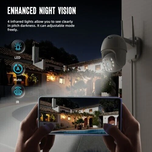 2M Wireless Outdoor PTZ 1080P WiFi Security Camera with Night Vision