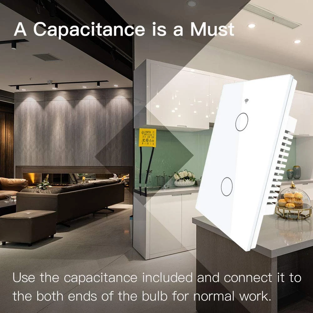 Store New Arrivals Add to Favorite View Feedback Contact 2Nd Generation Wifi RF433 Smart Touch Wall Single Fire Smart Switch,No Neutral Wire Needed,Compatible with Smart Life/Tuya App, Works with Alexa and Google Home Single Pole 110V White 2 Gang Description Item dimensions L x W x H 4.7 x 2.9 x 1.5 inches Current Rating 2 Amps Operating Voltage 110 Volts Mounting Type Wall Mount Color White Product Dimensions 4.7 x 2.9 x 1.5 inches; 4.8 ounces Switch Type Smart Single Fire Switch Material Glass Terminal Screw Operation Mode ON-OFF-ON Actuator Type smart touch Circuit Type 1-way Contact Type Normally Closed Size 2 Gang(No neutral required) 1.【 No Neutral Wire Required】 Easily installed without rewiring your existing wire with single live wire design; Fire-retardant material and no electric arc new technology to secure and reliable working, giving the best look to blend with any wall design. 2.【Scheduling】Use timer or countdown schedules to set your smart switch to automatically turn on and off while you're home or away. 3.【Hands-Free Voice Control】Compatible with Alexa and Google Home for hands-free voice control. Enjoy smart and convenient life. 4.【Control from anywhere】 Allows the switch to be controlled via Smart Life, touch control and voice 5.【Advantages & Note】 No neutral wire required/No hub required/single pole; Only supports 2.4G network; Minimum control 5watts. Product Description MoesGo Single Live Wire Smart Switch Enjoy your Smart Life with MoesGo Products. MoesGo WiFi Smart Wall Touch Switch RF433+WiFi Wireless Remote Control Single Live Wire Design and No Neutral Wire needed.This new designed glass panel wireless touch smart switch is designed with WiFi+RF to replace traditional switches with a variety of ways to control.Now one new smart feature as backlight on/off and relay status are added into the Smart Life/Tuya App for added convenience.Its scratch resistance glass panel is suitable for different decoration styles with its best value.Works with Alexa and Google Home,ensures a better user experience of controlling your lights,providing your smart life with much more convenience and enjoyment. Package listing MoesGo Single Live Wire Smart Switch *1 Screw*2 User Manul*1 Capacitance*1 Main Specifications Working voltage: 95-130V AC,60 Hz Max. total current: 2.5 A Wireless type: Wi-Fi 2.4GHz Power consumption: ≤0.5W Working temperature: 0℃~40℃ RF Frequency: 433MHz RF Standard Code: 1527 Voice control Free hands via easy voice control with Alexa or Google Home Timer Function Timing setting and countdown options. Control your lights in advance. Multiple Control You can create group in the APP to manage all the lights in your house and share the device to your family members. Luxury Glass Panel High quality tempered glass. Water proof. Installation method Easily choose the installation method with horizontal or vertical to cater to your desired style. Note Neutral Wire is not required You only need to connect the capacitor in the package to both sides of the bulb on the L1 line. Only supports 2.4G network ABOUT US We offer the best prices around on high quality products. Our E-store includes media such as books, movies, music and games while offering electronics, toys, sporting apparel, clothing, tools, general home, garden items and more. SHIPPING We are always working hard to ensure your package arrives as soon as possible. Please understand that some factors like weather, high postal traffic, and the performance of shipping companies are outside of our control. We offer free shipping to the lower 48 states and ship within 2 business days of payment, usually sooner. We do not accept P.O. Boxes. Please provide a physical address. For shipping outside of the continental USA, we only use eBay's Global Shipping Program.The item is shipped to KY and then sent to the rest of the world. International customers are responsible for all duties and taxes. Continue to check out in order to calculate costs for shipping the item to your country. Messages regarding eBay's Global Shipping Program MUST be directed at eBay EXCLUSIVELY. RETURNS We offer a 30-Day Return Policy on items which you are not completely satisfied with. You have the option for a full-refund or an exchange of the item. No returns are available on items shipped outside of the USA. PAYMENT We accept PayPal. CONTACT US This page content is yet to come Please ad us to your favorite seller and visit again later Thank You CUSTOMER SATISFACTION We try our very best to make sure every customer is completely satisfied. If there's a problem, message us! We're happy to help. WE ACCEPT Copyright © 2021 AutoDS. | All Rights Reserved