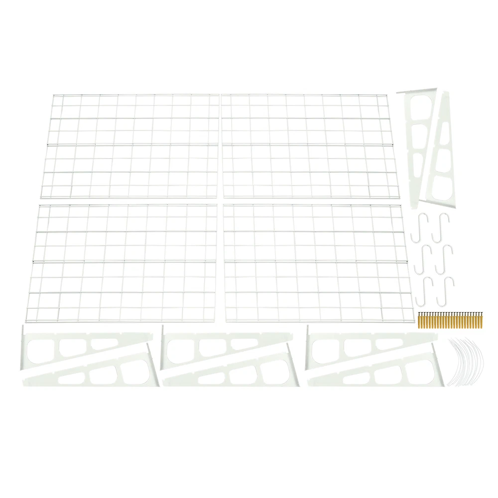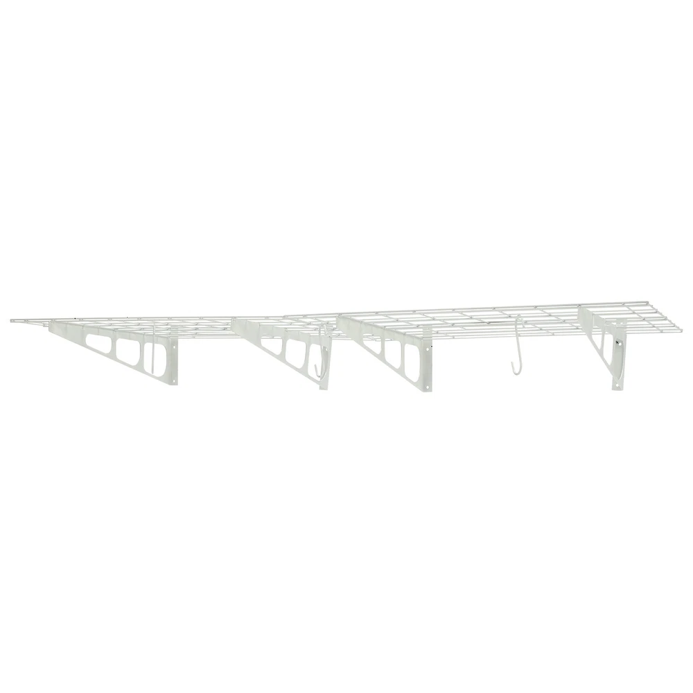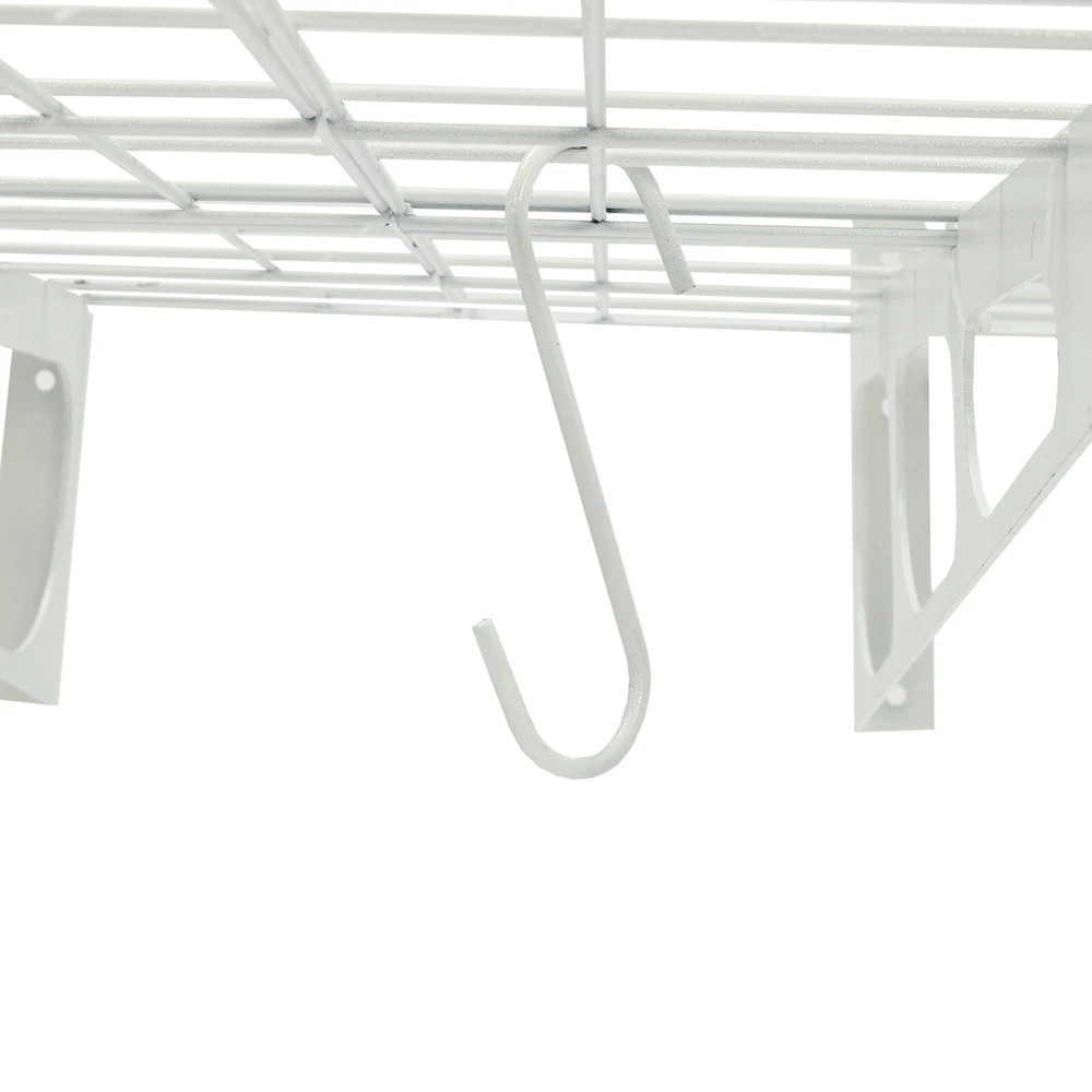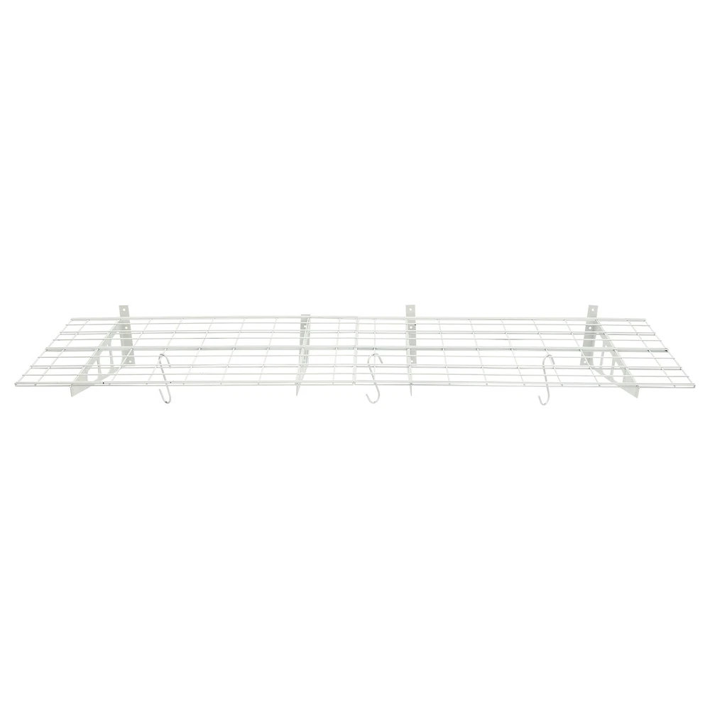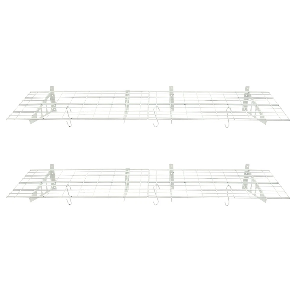 Made of steel wire, the garage storage rack has triangular brackets and zip ties design so it can withstand heavy loads. It comes with six hooks to extend your storage space, meeting your daily storage needs. Meanwhile, the neat grid and sleek white finish add a touch of a stylish yet modern look to your garage. Details Double-Fixed Bars: The horizontal bars are double-layered to keep the product firm and stable. Net Boards: They are not just strong and durable but also boast good ventilation, keeping your items dry and allowing the odor to dissipate in a timely manner. Application It's suitable for hanging or storing bikes, tools, storage boxes, sports equipment, and other items. 2PACKS 400LBS Garage Shelving with Hooks, Garage Storage Rack, Garage Wall Shelf Description Made of steel wire, the garage storage rack has triangular brackets and zip ties design so it can withstand heavy loads. It comes with six hooks to extend your storage space, meeting your daily storage needs. Meanwhile, the neat grid and sleek white finish add a touch of a stylish yet modern look to your garage. Key Features Build to Last: The product is made of steel wire, after the plastic spraying process, with high strength, corrosion resistance, abrasion resistance , and long service life. High Load-bearing Capacity: The high-quality material, sturdy triangular brackets, welding process, and zip ties design allow it to withstand up to 400 lbs without falling, giving you a piece of mind. And each hook can withstand up to 33 lbs. Set of 2: The package includes two-piece garage storage racks with 6 hooks, so you can choose different mounting methods, such as parallel mounting, vertical mounting, separated mounting, which can fully meet your daily storage needs. Large Storage Capacity: The wall-mounted storage rack is 72*24in and the removable storage hooks can be moved to any position, holding toolboxes, sports equipment, gardening tools, and more equipment, flexible to meet your actual storage needs, and saving space in the garage. Stylish Appearance: The sleek white finish and the neat modern grid appearance make it a nice garage decor. At the same time, toolkits and clutter are arranged in a neat and orderly manner, which is more pleasing to the eye. Effortless Assembly: Complete installation accessories, a simple structure, and pre-drilled holes allow you to complete the assembly in a very short time. Adjustable Spacing Design: The spacing between the four triangular brackets can be adjusted according to your actual installation needs. Guaranteed Customer Service: We stand behind all our guests and look forward to assisting you with your purchase. It is our pleasure to answer your confusion and questions. The end of the story between us is not "we sell and you buy". Details Double-Fixed Bars: The horizontal bars are double-layered to keep the product firm and stable. Net Boards: They are not just strong and durable but also boast good ventilation, keeping your items dry and allowing the odor to dissipate in a timely manner. Application It's suitable for hanging or storing bikes, tools, storage boxes, sports equipment, and other items. Specifications Material: Steel Wire, Nylon Surface Treatment: Plastic Spraying Process Color: White Style: Modern Mount Type: Wall Mounted Load-bearing Capacity: 181kg/400lbs Each Hook Load-bearing Capacity: 15kg/33lbs Assembly Required: Yes Number of Items: 2 Number of Hooks: 6 Gross Weight: 17kg/37lbs Product Size: 183*61cm/72*24in Package Size: 95*62*12cm/37.4*24.4*4.7in Package Included 2* Garage Storage Racks 6* Hooks All Accessories for Installation Notes lt is normal that the expansion screw will blow up after the force is applied. Before purchasing, please check the product information carefully to make sure the load bearing of your wall and the installation environment are suitable! Please check the screw hole spacing carefully if it is installed on the studs! Cement walls need to be perforated and thin wood walls or hollow walls need to be supported by a certain thickness of solid wood struts(not included) laid on the front or back of the wall. Please allow the slight color difference caused by the shooting light and 1-3cm error due to manual measurement, and make sure you do not mind before you order. Brand Unbranded Type Wall Mounted Rack Shelf Type Bracket Shelf, Floating Shelf Color White Material Steel Wire, Nylon Surface Treatment Plastic Spraying Process Style Modern Mount Type Wall Mounted Load-bearing Capacity 181kg/400lbs Each Hook Load-bearing Capacity 15kg/33lbs Assembly Required Yes Number of Items 2 Number of Hooks 6 Gross Weight 17kg/37lbs Product Size 183*61cm/72*24in Package Size 95*62*12cm/37.4*24.4*4.7in Manufacturer Warranty 3 Years
