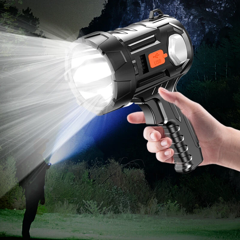 2PC 3000000LM Bright Solar/USB Rechargeable LED Spotlight Flashlight Searchlight
