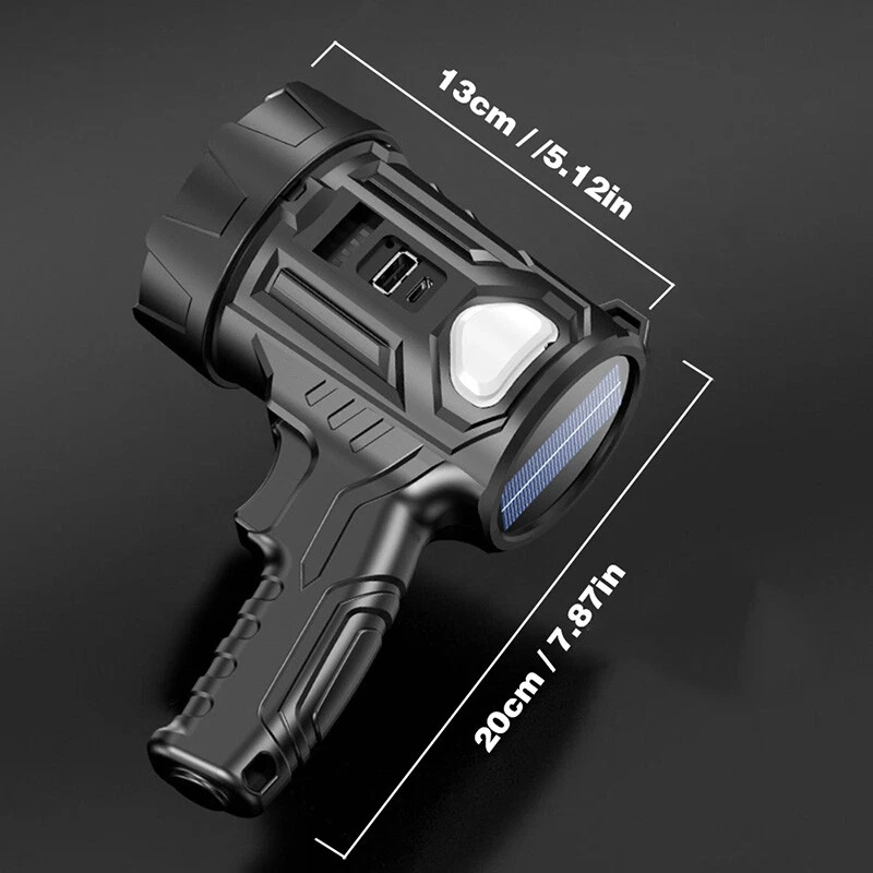 Waterproof Grade: IPX4 MPN: Does not apply Operating Range: 25 m Material: ABS, PC UPC: Does not apply Color: Black Features: Batteries Included, Emergency Charging, Handheld, Power Indicator, Rechargeable, Solar, Waterproof gtin13: Does not apply Type: Flashlight Brand: Unbranded Battery capacity: 1800MAH Lighting Technology: LED Power Source: USB