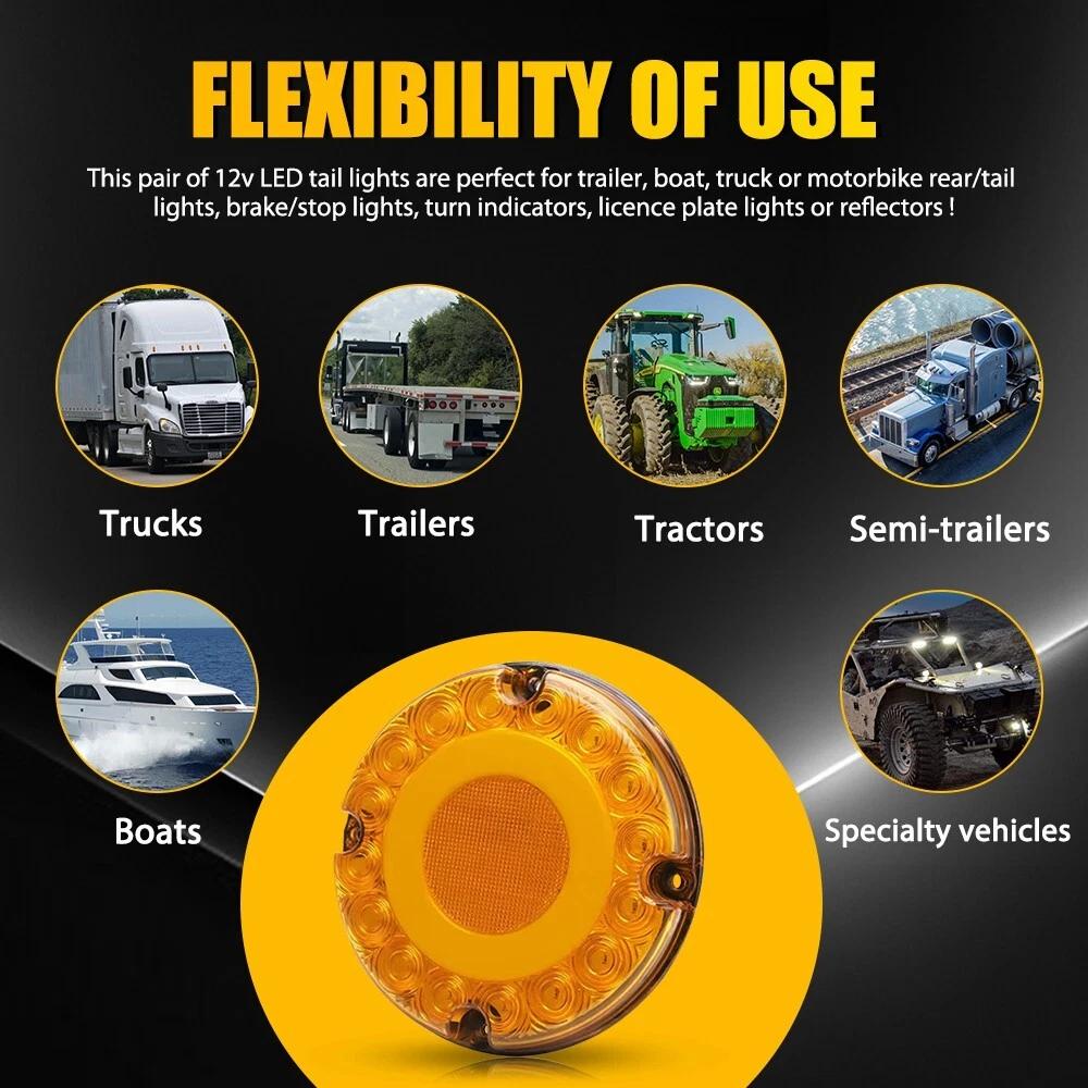 Fit for: Suitable for truck, trailers, semi truck, caravans, campers, buses, vans, lorry, car, rv, bulldozer, crane, etc Specifications: Product Material: ABS+PC Light Color: Amber Voltage: 12-24V LED Quantity: 36 Size: 7inch round Functions: Brake light, tail light, turn signals, etc Wiring Mode: Black wire: Negative Red wire: Amber light on the outer ring of running light Yellow wire: Amber light in the inner circle of the brake light Blue wire: Flashing amber light Waterproof Grade: IP67 Lifespan: 50,000h+ Features: *High Brightness Each LED tail light bright enough and energy-saving. 2PC 7in LED Round Tail Rear Light Brake DRL Turn Signal Bus Truck Trailer Amber Fit for: Suitable for truck, trailers, semi truck, caravans, campers, buses, vans, lorry, car, rv, bulldozer, crane, etc Specifications: Product Material: ABS+PC Light Color: Amber Voltage: 12-24V LED Quantity: 36 Size: 7inch round Functions: Brake light, tail light, turn signals, etc Wiring Mode: Black wire: Negative Red wire: Amber light on the outer ring of running light Yellow wire: Amber light in the inner circle of the brake light Blue wire: Flashing amber light Waterproof Grade: IP67 Lifespan: 50,000h+ Features: *High Brightness Each LED tail light bright enough and energy-saving. *Superior Quality Made of high quality material to ensure its low energy consumption, good waterproof and shock resistance. *Waterproof: The tail light has IP67 waterproof rating, which works even under extreme conditions such as rain and snow. *Wide Application This pair of LED tail lights can be used in truck, trailers, semi truck, caravans, campers, buses, vans, lorry, car, RV, bulldozer, crane, etc. It also can be used as brake light, daytime running light, tail light, turn signal light, etc. *Warm Notice Please check the detail information of the product carefully before purchasing. Your satisfaction is our utmost concern, please feel free to contact us for any questions and concerns. Packaging Include: LED tail lights*2 Item Specifics Brand : AUXITO Package Include : LED tail lights*2 Type : Tail Light Assembly Manufacturer Warranty : 1 Years Fitment Type : Direct Replacement Features 1 : High Brightness Features 2 : Superior Quality Features 3 : Waterproof Features 4 : Wide Application Features 5 : Warm Notice Material : ABS PC Light Color : Amber Fit for 1 : Suitable for truck, trailers, semi truck, caravans, campers, Fit for 2 : buses, vans, lorry, car, rv, bulldozer, crane, etc Voltage : 12-24V LED Quantity : 36 Size : 7inch round Functions : Brake light, tail light, turn signals, etc Black wire : Negative Red wire : Amber light on the outer ring of running light Yellow wire : Amber light in the inner circle of the brake light Blue wire : Flashing amber light Waterproof Grade : IP67 Lifespan : 50,000h+ Wire : 4-lines Payment (1) Instant PayPal payment is the preferred method of payment. (2) We also accept payment via PayPal, DebitCard, Visa, MasterCard, Discover. (3) We will only ship to the confirmed PayPal shipping address given with the payment. (4) If you want to ship to other address, please change your PayPal shipping address before you make payment. (5) To avoid initiating an unpaid item claim, please pay within 7 days. Shipping (1) We will ship your item(s) within 24 hours. (2) We ship this item to US usually via USPS first class mail. It usually takes 3-6 working days to deliver. Returns (1) We offer free return & money back guarantee. If you are not satisfied with your purchase for any reasons, you can return the item for refund or replacement/exchange. All returns must include the original packaging. (Please refer to our return policy for details.) (2) If you don't return goods within 60 days from date of purchase, your right to cancel will be revoked. Any items damaged because of incorrect installation will not be refunded. Please contact us for return or troubleshooting help prior to returning any products. (3) Unauthorized reselling of AUXITO products is strictly prohibited and we can't honor the warranty if purchasing from the unauthorized reseller. Contact Us [Our office hours are MONDAY - Saturday 9:00PM - 6:00PM PST, but we will response you once we get your message .There will be some delay on respons if you send message or E-Mail on Sundy.] (1).Negative feedback will not help resolve any problems you have, please contact us via eBay messages before leaving negative feedback, our customer service will make best effort to help you with the issues. (2).We maintain high standards of excellenceand strive for 100% customer satisfaction! Feedback is very important to us. We request that you contact us immediately BEFORE you give us neutral or negative feedback, so that we can satisfactorily address your concerns. FAQ Why swith to LED? LEDs not only give your vehicle a clean, modern look but, with proper use, will outlast any halogen bulb and HID bulb! Low energy draw, high lumen output, and instant on/off LED technology out shines stock bulbs in every way. Which bulbs are used in my vehicle? Check Sylvania automotive lamp replacemnt guide, you can select the year, make, and model of your vehicle, then select the application you want to replace or upgrade from stock. What does CAN Bus mean? CAN Bus means Controller Area Network Bus. This system monitors your vehicle and reports operating conditions. CAN Bus systems are commonly found in European vehicles such as BMW, Audi, Mercedes, Volkswagen, Porsche, and in many American vehicles. While most late model American vehicles have CAN Bus systems, it is always good to check with your vehicle dealer to see which system your vehicle has before purchasing electrical products. When do you need Warning Canceller? Some vehicles with cmplex internal computers(such as Audi,BMW,Jaguar,Mercedes,etc.) might report on-dash errors or flickering on the headlights. The warning canceller fixes the dashboard warning and flickering effect. Bulb Out Dashboard Error: On some vehicles, the dash