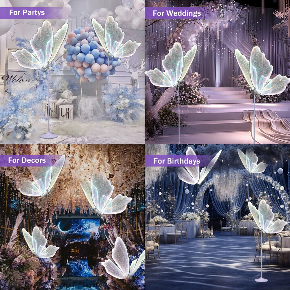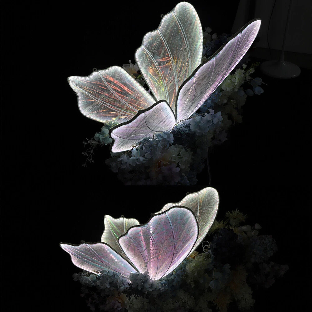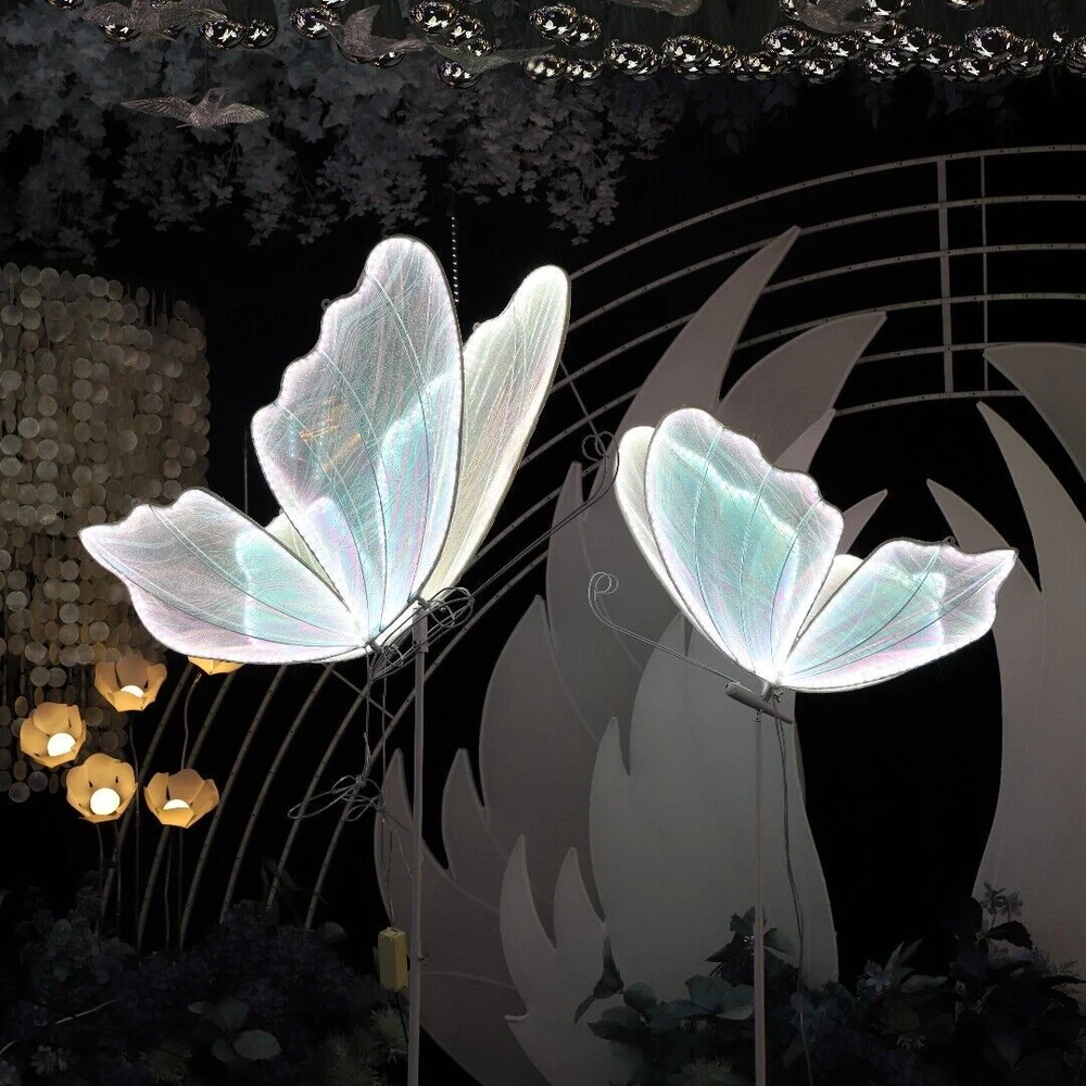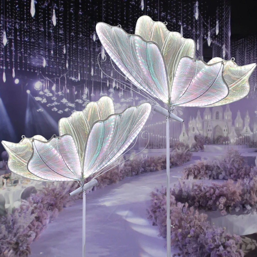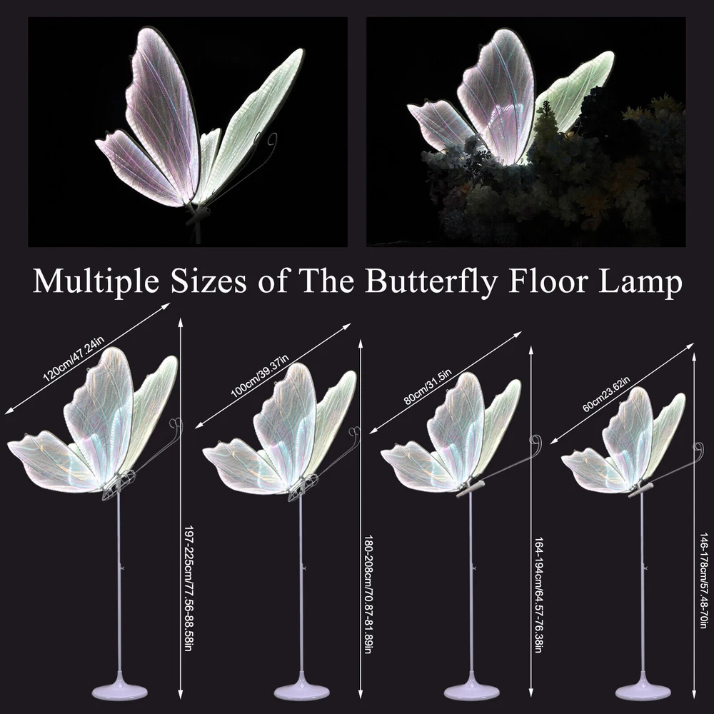 Product Description đŠăWedding Butterfly Floor LampăThe wedding romantic atmosphere floor lamp creates a romantic, warm and elegant atmosphere at the wedding or party venue. It can be used on the floor or ceiling. Butterfly decorations can be matched with flowers and background to bring you a unique romantic atmosphere. đŠăSturdy MaterialăButterfly floor lamp made of iron body + lace cloth + LED light strip, with LED white light (white lace cloth) Butterfly lamp uses built-in LED chip light source,white light (6000K). They can be placed in every corner of the venue to add a warm and romantic light and shadow play. đŠăEasy to InstallăSurface mount, includes all mounting hardware for quick and easy installation, features push button switch for easy adjustment. The package includes the butterfly lamp and base, which can be hung or ceiling-mounted. đŠăApplicable ScenesăWedding Romantic Atmosphere Floor Lamp creates a romantic, warm and elegant atmosphere at the wedding or party venue. Butterfly lamp suitable for wedding stages, T stage street guidance decorative lights, wedding halls, hotel layouts, window layouts, lamps, hotel decorations. Creating a Romantic Atmosphere: These decorative lights typically emit soft lighting, creating a warm and romantic ambiance at the wedding venue. They can be placed in various corners of the venue, adding a cozy and romantic play of light and shadow.