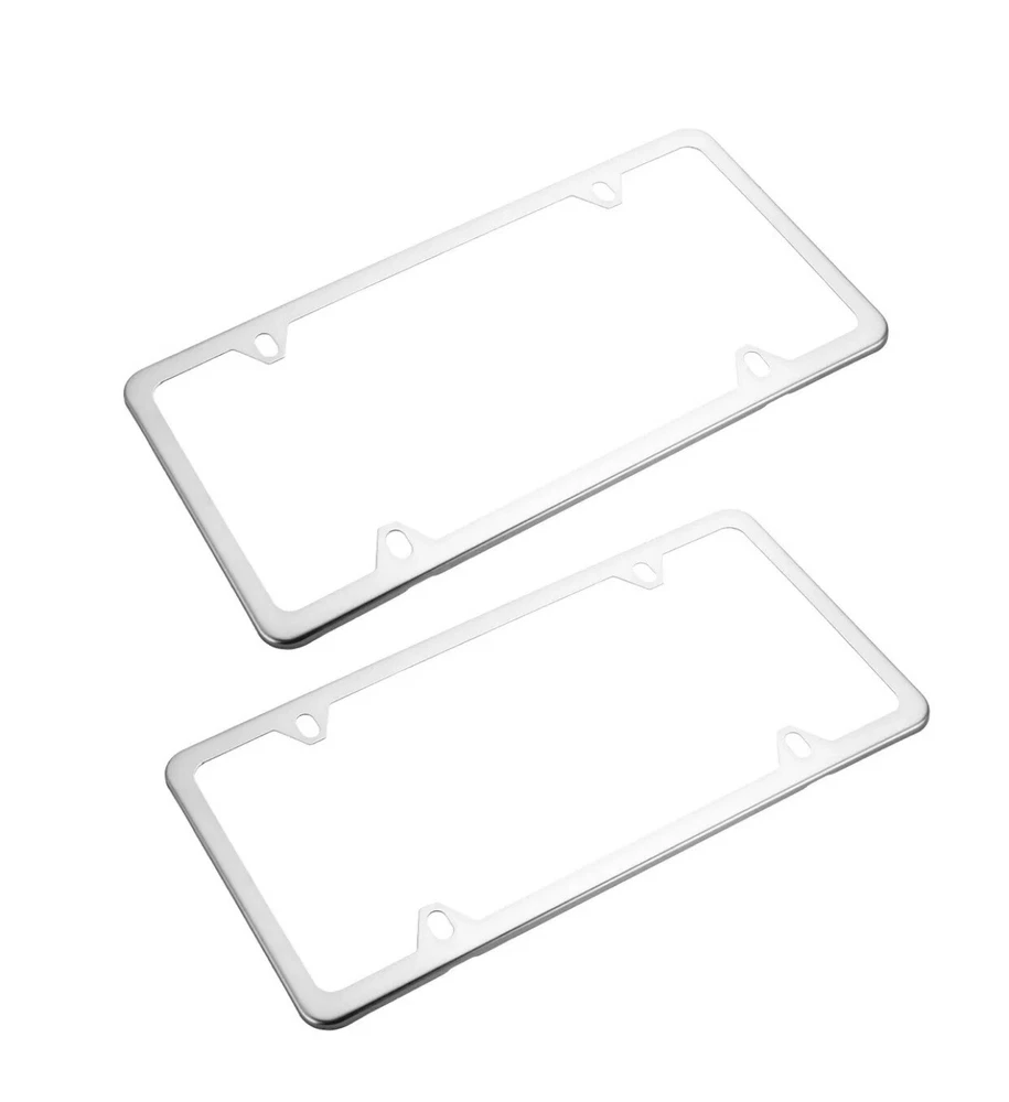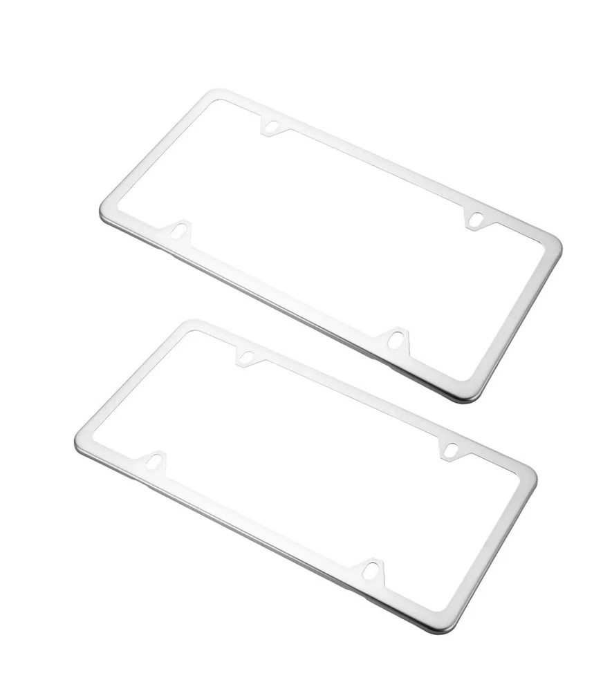 2PCS Chrome Stainless Steel License Plate Frame with Screw Caps