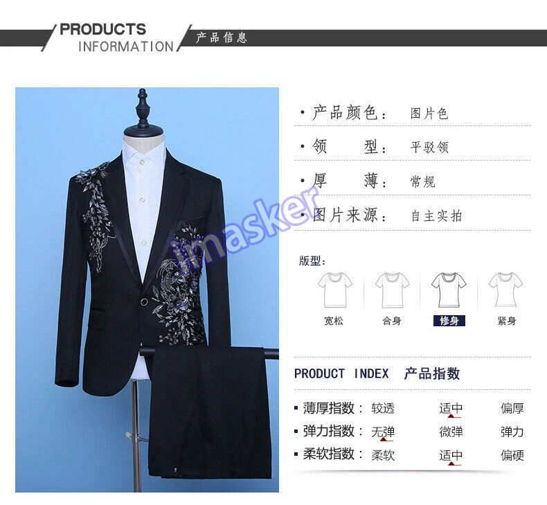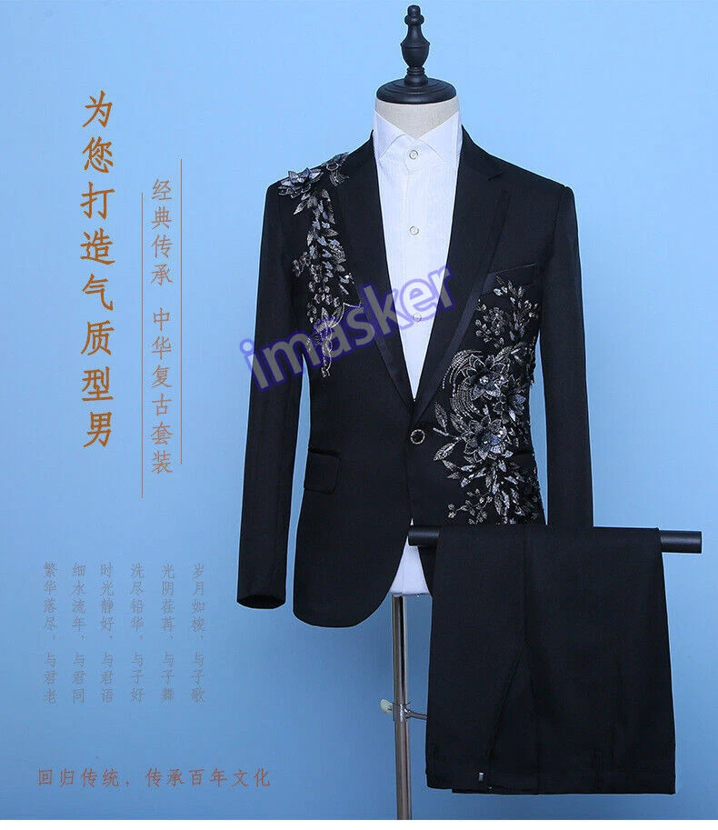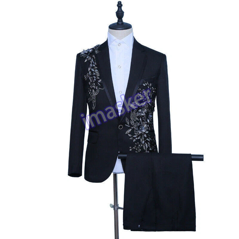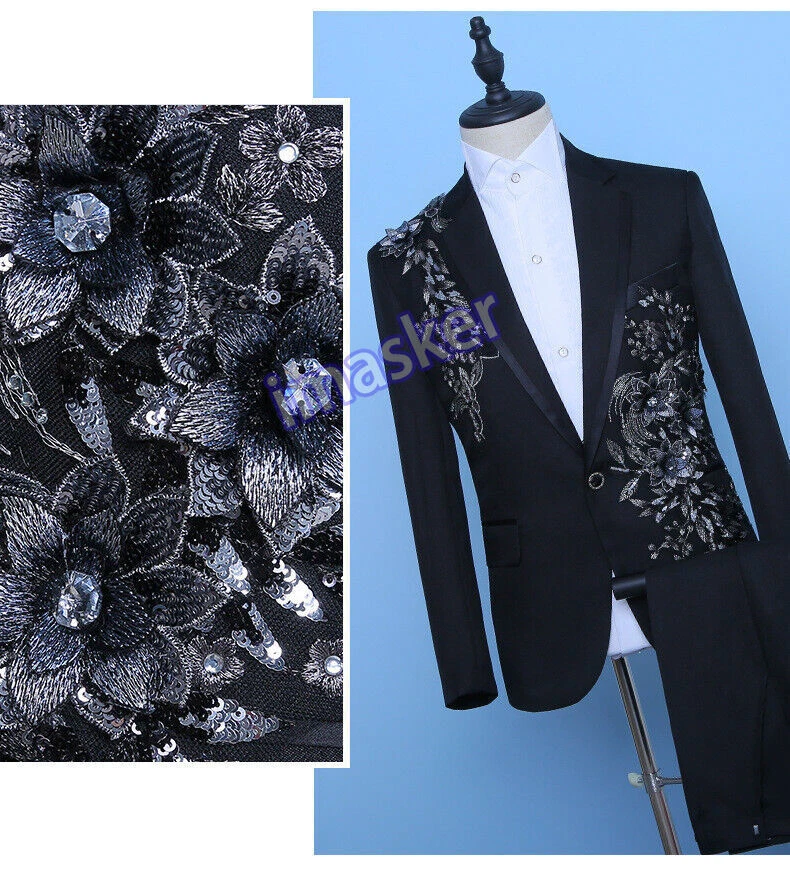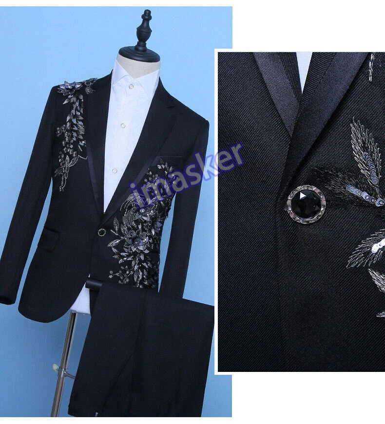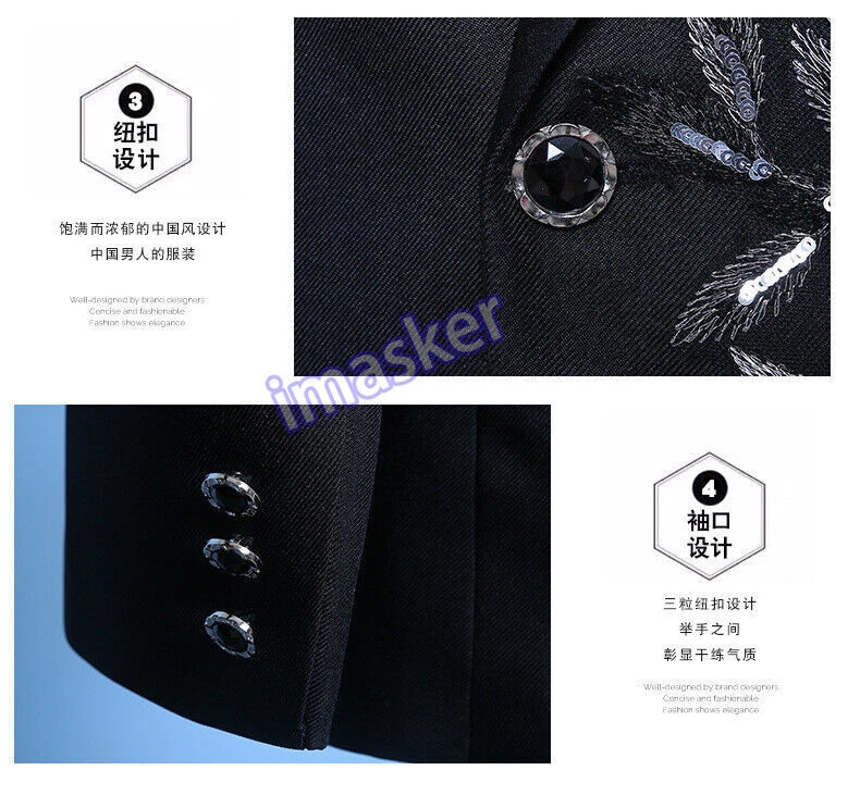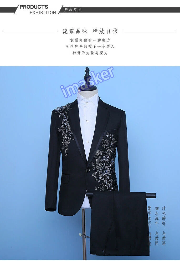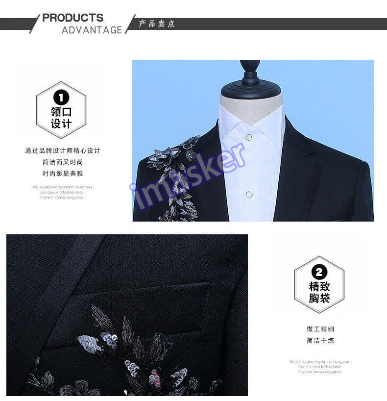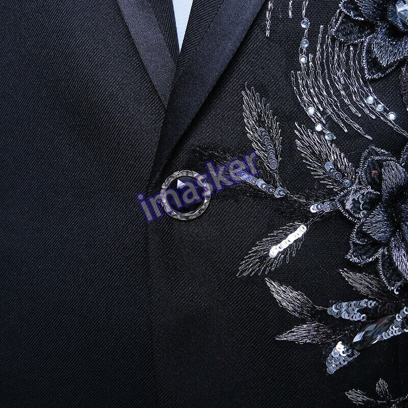2PC Set Mens Sequins Embroidery Blazer Jacket Pant Wedding Dress Suit One Button Set Include : 1x Men Jacket Pant Color:Black, Blue Material:Polyester Size: 2XS-L Friendly Tips: The size is measured by hands, please allow minor error of measurement. Photo color might be a little different from the actual product due to color display of different monitors. Payment 1. We accept PAYPAL only. 2. Payment must be made within 7 days of auction closing (Unpaid dispute will automatically open when item is not paid in 7 days). 3. PLEASE NOTE: SHIPPING&HANDING DOES NOT INCLUDE DUTIES, LOCATL TAXES OR ANY OTHER IMPORTATION FEES. 4. Please list your special requests (color, packages, value of declaration, etc.) in the EBAY NOTES SECTION when you make payment Shipping 1. We Ship to Worldwide 2. We ship your orders within 1-2 business days after the payment cleared. 3. Item shipped from China via china Post Airmail, reach most of the countries within 2 to 4 weeks. 4. Delivery time depends on destination and other factors, it may takes up to 20 days. If you don't receive the item after 25 days,please contact us, we'll investigate and solve the delivery problem. 5. Import duties, taxes, and charges are not included in the item price or shipping cost. These charges are the buyer's responsibility. Please check with your country's customs office to determine what these additional costs will be prior to bidding or buying. Warranty Return 1. Customer satisfaction is our top goal. All products are quality checked. They are new and in good condition when shipped to our customers. If product is defective or damage upon arrival, or wrong product shipped, please contact us immediately. Returns accepted within 14 days of delivery date and item must be in original new condition, not worn or altered in any way with attached tags & wrap. Otherwise deal is final. Return shipping must be paid by buyer. 2. Please contact us first if you have anyproblems/questions/concerns. We will be happy to resolve any issues you may have in a cordial and friendly manner. 3. We appreciate your Positive Feedback, and will do the same in return. PLEASE DO NOT leave negative feedback without first communication with us. Please allow max 24 HOURS for us to respond About Feedback We maintain high standards of excellence and strive for 100% customer satisfaction! Feedback is very important to us. We request that you contact us immediately BEFORE you give us neutral or negative feedback, so that we can satisfactorily address your concerns.It is impossible to address issues if we do not know about them! Contact Us We care about our valued customers, if you have any questions, please feel free to contact us in EBAY MESSAGE, our Customer Service staffs will be very pleasure to reply you in 24 Hours.