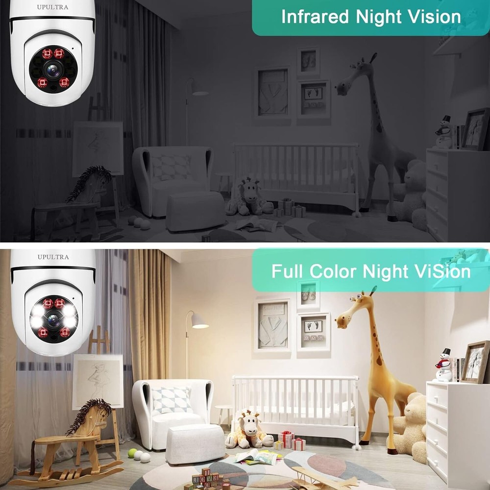 About this item đź’ˇWireless & Easy Installation: This camera can be installed using a normal E27 base(110V~240V),NO MORE EXTRA INSTALLATION STEPS.then you just need to connect the camera system to the router,open the app to setup the camera within minutes. đź’ˇ1080P & Pan Tilt: This Pan Tilt WiFi camera can provide you with a clear vision (Full HD 1080P resolution) at any time,You can use the APP to control the camera viewing angle to achieve 360 viewing without blind spots. đź’ˇMotion Detection & Real-time Alerts: this PTZ dome surveillance camera adopts a highly sensitive motion sensor,Once the camera detects the movement of the object after connecting it to the Internet, it will record the moving picture and notify you through the APP. đź’ˇRemote Viewing & Night Vision: Our camera can control the viewing angle through APP,you can access remotely view anywhere and any time through your iPhone/Android phone/Ipad,Even in complete darkness, you can view clear images. đź’ˇTwo-Way Audio & High Quality Service: Built-in microphone and speaker, the bulb security camera can have a conversation between you and your visitor,If you have any question, please contact us.We provide lifetime technical support and services. E27 Light bulb security camera,100% WIFI and easy to install,Keep your family safe. Main Features: 1.Easy to install, comes with an E27 jack. 2.With infrared and white light, You can switch between black and white and color night vision at will,even at night, you can see as clearly as day. 3.You can control the camera to rotate 360 degrees at any time through the mobile APP, no visual blind spots. 4.Sensitive motion detection, when an object is detected to move, you can push notifications to your mobile phone as soon as possible. 5.Two-way Audio allows you to communicate clearly with the person opposite the camera at any time. Tips: 1.Please make sure the device is connected to the power and your phone is connected with Wifi. 2.The product does not have a memory card, please prepare by yourself if you need it, or choose the link with a memory card when purchasing. Easy to Install It is very easy to install this E27 camera. Just screw the camera into the lamp holder, connect to the wifi, no drilling, no wiring, no power cord, no hard settings, and then open the APP to set up the camera in a few minutes. Night Vision With infrared and white light, You can switch between black and white and color night vision at will,even at night, you can see as clearly as day. Motion Detection This Wireless camera is a good protector for your family and house property. When the PIR catches the motion, it will push an alarm notification to our phone app and it begins to record at lest 15s after the motion is out of the detecting area. Two-way Audio Two-Audio voice makes it more convenient for you to communicate with your family, allowing you to video and voice with your family anytime, anywhere. Easy Remote Monitoring You can watch live monitoring video on your Smartphone, support iOS, Android, tablet, iPad, and windows system IE anytime and anywhere,Can also share with family. Easy Remote Monitoring The camera used for home security can choose to save all videos to micro SD card or cloud storage. All videos can be played directly through the application. Product information Compatible Devices Android Power Source Corded Electric Connectivity Protocol Wi-Fi Controller Type Android Mounting Type Wall Mount Video Capture Resolution 1080p Color 2pcs 64G memory card included Number of Items 1 Wireless Communication Technology Wi-Fi Item dimensions L x W x H 7 x 3.1 x 7 inches Batteries Required? No Low light technology Night Color Alert Type Motion Only Room Type Office, Kitchen, Living Room, Classroom Video Capture Format MPEG-4 Unit Count 2.0 Count International Protection Rating IP67 Product Dimensions 7 x 3.1 x 7 inches Item Weight 1.07 pounds ASIN B0BD4C9WG1