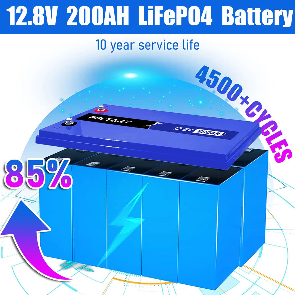 2PCS 12V 200AH LiFePO4 Deep Cycle Lithium Battery with BMS for RV Camping Solar Marine