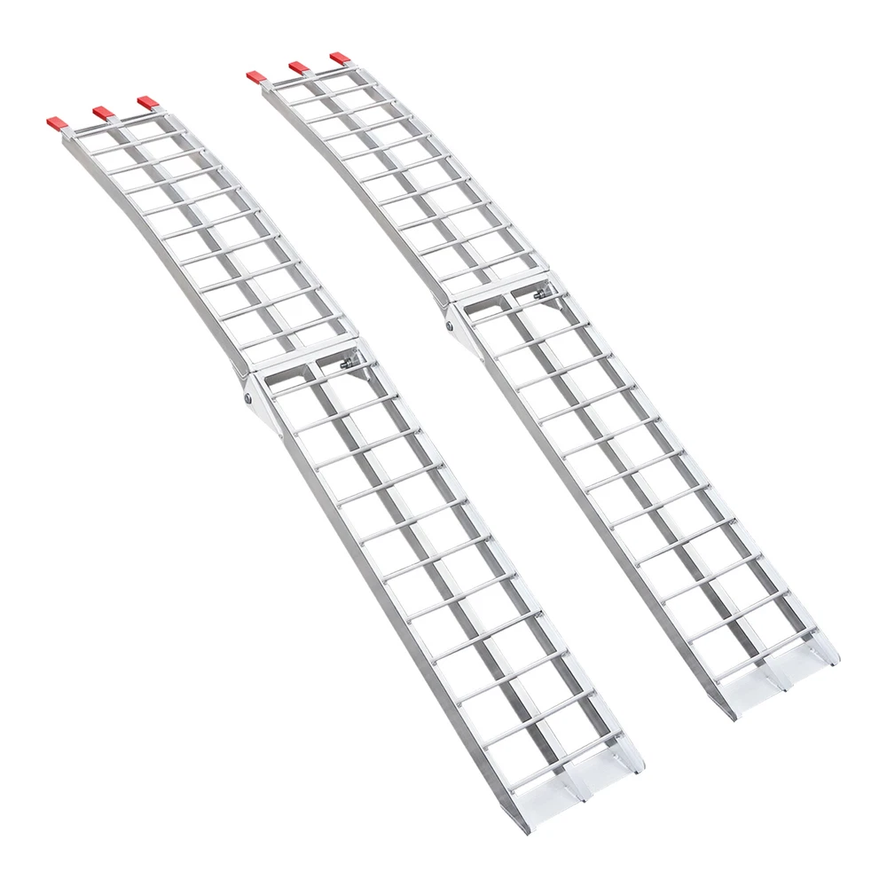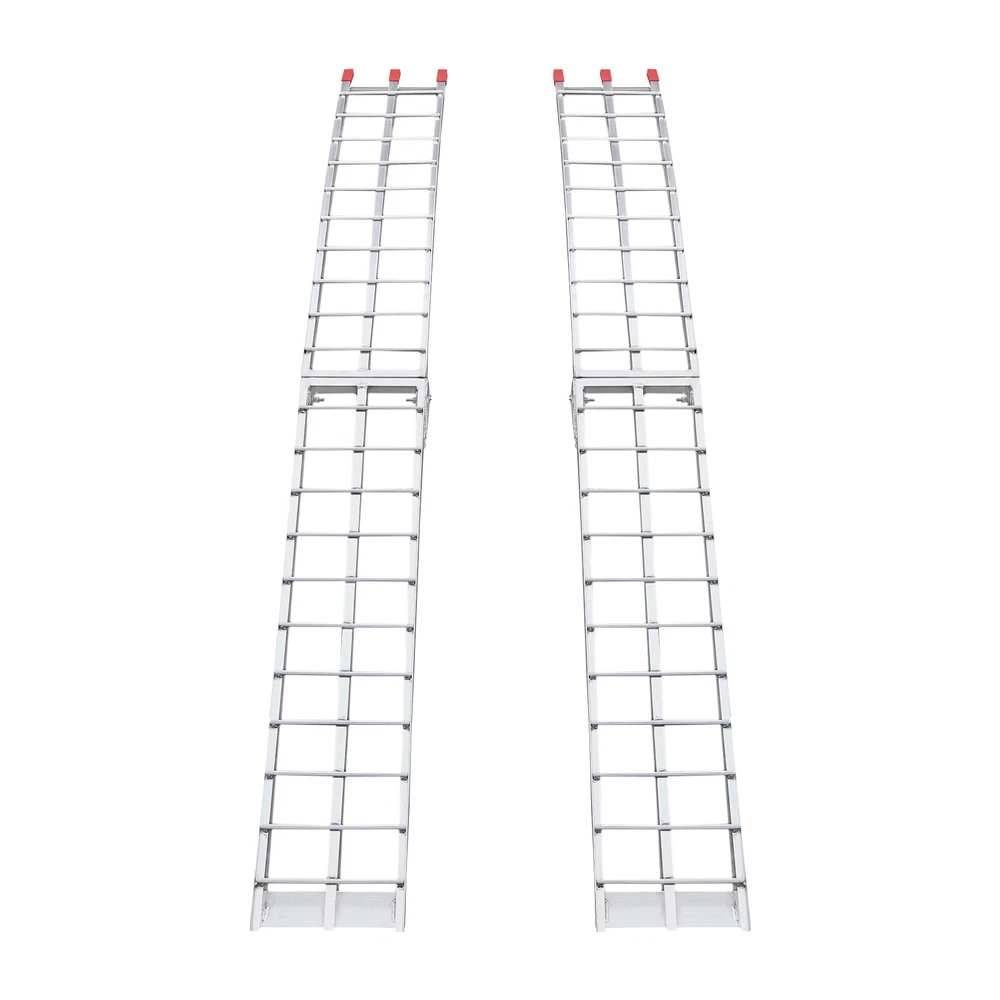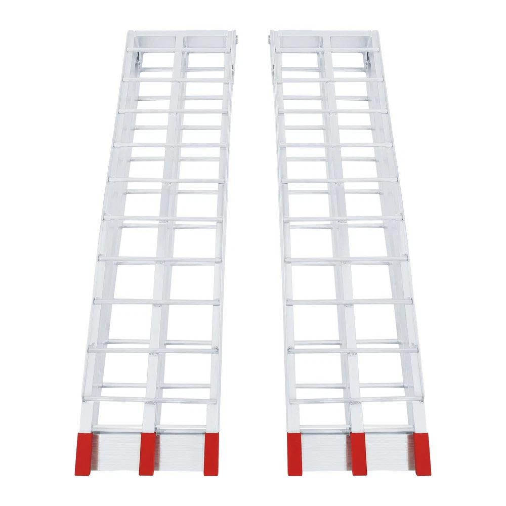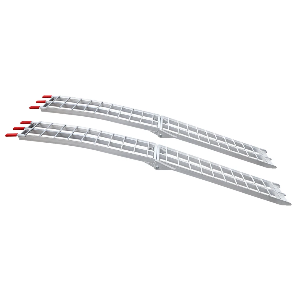 2PCS 12"x89" Aluminum Loading Trailer Ramps For Motorcycle ATV/UTV Truck 3000LBS Welcome to our store^-^ Set of 2, Loading Truck Ramps, Heavy Duty Motorcycle Ramps, Folding Ramps 89*11in 3000LBS Description This set of trailer ramps is built with aluminum alloy for superior strength and stability, giving the ramp excellent weight capacity ( EACH IS ABOUT 1500 LBS ) and longevity. The ramp can be easily folded for storage and portability, and the non-slip design increases friction, preventing your vehicle from slipping and ensuring your safety during use. This set includes two ramps for flexible use in different situations, which are very suitable for both two-wheelers and four-wheelers. Key Features High-quality Material: It is made of high-quality aluminum alloy with polishing and welding processes, which is sturdy, durable, and resistant to corrosion and rust, giving our product a long service life. Large Load Bearing: Its strong structure gives this product a high load-bearing capacity (each is about 1500 lbs) for transporting small four-wheelers or motorbikes. Smooth and Stable Transporting: Its clearance space, round crossbar design, and anti-slip patterns on the foot part allow the wheels to roll more smoothly without sliding, saving you the labor of transporting your motorcycle. SET OF 2: The Package Includes Two Pieces of Ramps that allow for transporting a two-wheeler or a four-wheeler. Easy to Use: Ramps are assembly-free . You simply unfold them, install them on the back of the trailer, tie straps, and then you can transport your motorbike after confirming it is installed firmly. Convenient Design: The foldable design makes our ramps easy to move and store. Details Safety Straps: These heavy-duty straps can keep the ramp firmly attached to the back of the trailer and ensure safe transport without collapsing or buckling. They can also help bind the folded ramps and allow you to move them more easily. PP Ends: These anti-slip PP ends provide extra security while preventing the back of the trailer from scratching or damage. Application Each of the ramps' load-bearing capacity is about 1500 lbs, which makes transporting motorcycles, dirt bikes, mini 4-wheelers, trailers, ATVs, UTVs, garden tractors, and lawnmowers easy with this set of ramps. Specifications Color: Silver Material: Aluminum Alloy, PP Each Load Bearing Capacity: 680.39kg/1500lbs Process: Welding, Polishing Suitable Width of Wheels: <29cm/11 inches Assembly Required: No Each Product Size(Folded): 30.48*116cm/12*45.7inch Each Product Size(Unfolded): 30.48*228cm/12*89.8inch Packaging Size: 119*32*33cm/46.85*12.6*12.99inch Gross Weight: 20kg/44lbs Package Included 2* Trailer Ramps 2* Straps Payment Delivery details Terms of sales About us Contact us Payment We accept ebay payment 。 Fees such as import duties, taxes are not included in the item price or shipping costs. These charges are the buyer's responsibility. Delivery details Shipping: 2-9 working days to: USA Terms of sales We maintain high standards of excellence and strive for hundred percent customer satisfaction. Feedback is very important to us. We hope that you contact us immediately before you give neutral or negative feedback, so that we can address your concerns. It is impossible to address issues if we do not know about them! About us Your satis faction is our ultimate goal. We work hard to earn your trust and future business. Our certified technicians have tested each item before shipping. The unit comes with 1 year limited warranty on all manufacturing defects. a) If you receive a defective item, you may return it or ask for a discount. Please contact us within 14 days after you receive the package. b) What you returned must be intact and in its original packaging as re? u. Customer is responsible for shipping costs of the returned item. c) We will cover the cost of shipping back t with the shipping rate indicated in the registration page. We will send you a new unit or refund the full payment you paid. Thank you. Contact us Business Hour Business Hour: Monday To Friday: 8:30 AM to 5:00 PM (Beijing China time) Due to time zones, our reply to your questions may not be immediately. But within above working time, we will reply your email within 24 hours. If it's non-workdays, please kindly be patient and wait till Monday. Please contact us with ebay message. Please feel free to contact us if you have any questions. Monday To Friday: 8:30 AM to 5:00 PM (Beijing China time) Due to time zones, our reply to your questions may not be immediately. But within above working time, we will reply your email within 24 hours. If it's non-workdays, please kindly be patient and wait till Monday. Please contact us with ebay message. Please feel free to contact us if you have any questions. Warranty 10 years Manufacturer Warranty 10 Years Item Location CA /NJ /Austell Note Do not send to Brazil Feature 4 FAST SHIPPING FROM US LOCAL WAREHOUSE! Feature 3 Stable performance,Durable 1.Feature High-quality Part Type Trailer Ramp Brand Unbranded Manufacturer Part Number QC9PUS8-RWD-YB8 Country/Region of Manufacture Unknown Type Pair of Ramps Material Aluminum Alloy, PP Each Load Bearing Capacity 680.39kg/1500lbs Process Welding, Polishing Suitable Width of Wheels <29cm/11 inches Assembly Required No Weight 20kg/44lbs California Prop 65 Warning Does not apply Shipping Notice Can not ship to Puerto Rico,Alaska/Hawaii UPC 756804829452