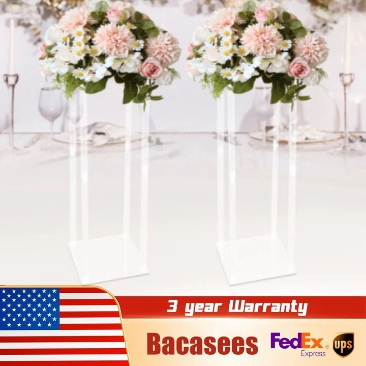 Specification Material: Acrylic Color: Clear Shape: Rectangular Style: Modern Mounting Type: Free-standing Number of Pieces: 2 Acrylic Panel Thickness: 0.3cm/0.12inch Rod Diameter: 1.88cm/0.74inch Package Size: 51*28*9cm/20.1*11.0*3.5inch Product Size:25*25*100cm/9.84*9.84*39.37inch Gross Weight: 4.5kg/9.9lbs Load-bearing Capacity: 15kg/33lbs Package Included 4* Acrylic Panels 16* Acrylic Rods Other Accessories for Installation 2PCS 39" Acrylic Flower Stand Column Vase Centerpieces Clear Wedding Decoration Clear Wedding Flower Stand, Wedding Geometric Flower Vase Column Stand for Wedding Party Table Centerpiece for Home Decor Description A Beautiful Flower Stand Is Necessary for a Fantastic Wedding. Our Minimalist-style Acrylic Flower Stand Will Be Your Ideal Choice. the Shiny and Clear Acrylic Looks like Crystal, Adding Beauty to Your Wedding or Party. Moreover, the Thickened Acrylic Plates Are Durable Enough to Be Used for a Long Time. It Can Also Be a Wonderful Decoration in Your Home. Key Features Two-piece in One Pack: This Package Contains Two Acrylic Flower Stands, Which Are Economical and Can Also Meet More of Your Decorating Needs. Great Durability: This Beautiful Flower Stand Is Made Entirely of Thickened Acrylic Panels and Rods. the Thickened Acrylic Material Is Very Hard and Sturdy Enough to Be Used for a Long Time. Good Load-bearing Capacity: the Tightly Screwed and Highly Rigid Material Allows This Flower Stand to Hold up to 33 Pounds, Which Is Enough to Support Most Potted Plants and Decorations. Good Stability: with the Support of the Thickened Acrylic Rods and Square Base, the Flower Stand Can Stand Firmly on Flat Ground. Even If You Decorate a Lot of Flowers or Balloons on It, It Will Not Shake or Fall. Exquisite Appearance: the Shiny Acrylic Is like Dazzling Crystals and Gemstones. so It Looks a Little Luxurious. the Simple Square Shape Design Looks Stylish and Neat. Such an Exquisite Flower Stand Will Add Beauty to Your Wedding. Space-saving: the Slender Rectangular Body Makes the Most of the Vertical Space in Your Home with a Small Footprint of 9.84*9.84inch. Diy Design: You Can Design This Stand by Yourself with Flowers, Greenery, Balloons, Tulle Cloth, Letters, and Garlands to Create a Unique and Great Backdrop. Portable: This Flower Stand Is Very Easy to Carry in the Car After Disassembly. so If You Want to Have an Outdoor Wedding or Party, You Can Easily Take It to Your Destination. Easy to Assemble: This Flower Stand Has a Simple Structure, and We Also Provide the Necessary Screws for the Installation, so You Can Easily Assemble It Yourself. Easy to Clean: Since the Flower Stand Is Made of Washable Acrylic, You Can Wash It Directly or Wipe off Its Surface Dust and Stains with a Wet Towel. Excellent Customer Service: Your Satisfaction Is Our Top Priority, We Will Make Things Right for You. If You Are Unsatisfied with Our Products, You Can Contact Us and We Will Ensure You Have a Pleasant Shopping Experience in Our Store. Details Smooth Surface and Rounded Corners: the Acrylic Surface Is Very Smooth, so It Is Comfortable for You to Touch. Moreover, the Corners of the Acrylic Panels Are Ground into Rounded Corners to Prevent Scratching Your Hands. Two-section Rod Design: We Designed the Rod into Two Sections for Easy Transportation. the Two Sections of the Rod Are Also Punched with Screw Holes to Facilitate Your Connection. Screw Holes: the Two Square Acrylic Panels of the Flower Stand Are Punched with Screw Holes to Facilitate Your Installation. Application It Is Used As Wedding Decoration, Valentine's Day Decoration, Christmas Decoration, New Years' Decoration, Commercial Celebration Decoration, Dessert Tables, Etc. It Can Also Be Used As an Indoor Decorative Flower Stand for Living Rooms, Bedrooms, Dining Rooms, Kitchens, Restaurants, Offices, Etc. Specification Material: Acrylic Color: Clear Shape: Rectangular Style: Modern Mounting Type: Free-standing Number of Pieces: 2 Acrylic Panel Thickness: 0.3cm/0.12inch Rod Diameter: 1.88cm/0.74inch Package Size: 51*28*9cm/20.1*11.0*3.5inch Product Size:25*25*100cm/9.84*9.84*39.37inch Gross Weight: 4.5kg/9.9lbs Load-bearing Capacity: 15kg/33lbs Package Included 4* Acrylic Panels 16* Acrylic Rods Other Accessories for Installation Notes The Acrylic Panels and Rods Are Covered with a Protective Film, Please Remove the Protective Film Before Using It. Please Notice That the Flower Stand Does Not Include Flower Ball Decorations and Needs to Be Purchased by Yourself. Please Allow the Slight Color Difference Caused by the Shooting Light and 1-3 Cm Error Due to Manual Measurement, and Make Sure You Do Not Mind Before Ordering. ❤️❤️ ❤️ ❤️ ❤️ Welcome to bacasees !!!!! ❤️ ❤️ ❤️ ❤️ ❤️ Payment Delivery details Terms of sales About us Contact us Payment We accept ebay payment 。 Fees such as import duties, taxes are not included in the item price or shipping costs. These charges are the buyer's responsibility. Delivery details Shipping: 2-9 working days to: USA Terms of sales We maintain high standards of excellence and strive for hundred percent customer satisfaction. Feedback is very important to us. We hope that you contact us immediately before you give neutral or negative feedback, so that we can address your concerns. It is impossible to address issues if we do not know about them! About us Your satis faction is our ultimate goal. We work hard to earn your trust and future business. Our certified technicians have tested each item before shipping. The unit comes with 1 year limited warranty on all manufacturing defects. a) If you receive a defective item, you may return it or ask for a discount. Please contact us within 14 days after you receive the package. b) What you returned must be intact and in its original packaging as re? u. Customer is responsible for shipping costs of the returned item. c) We will cover the cost of shipping back t with the shipping rate indicated in the registr