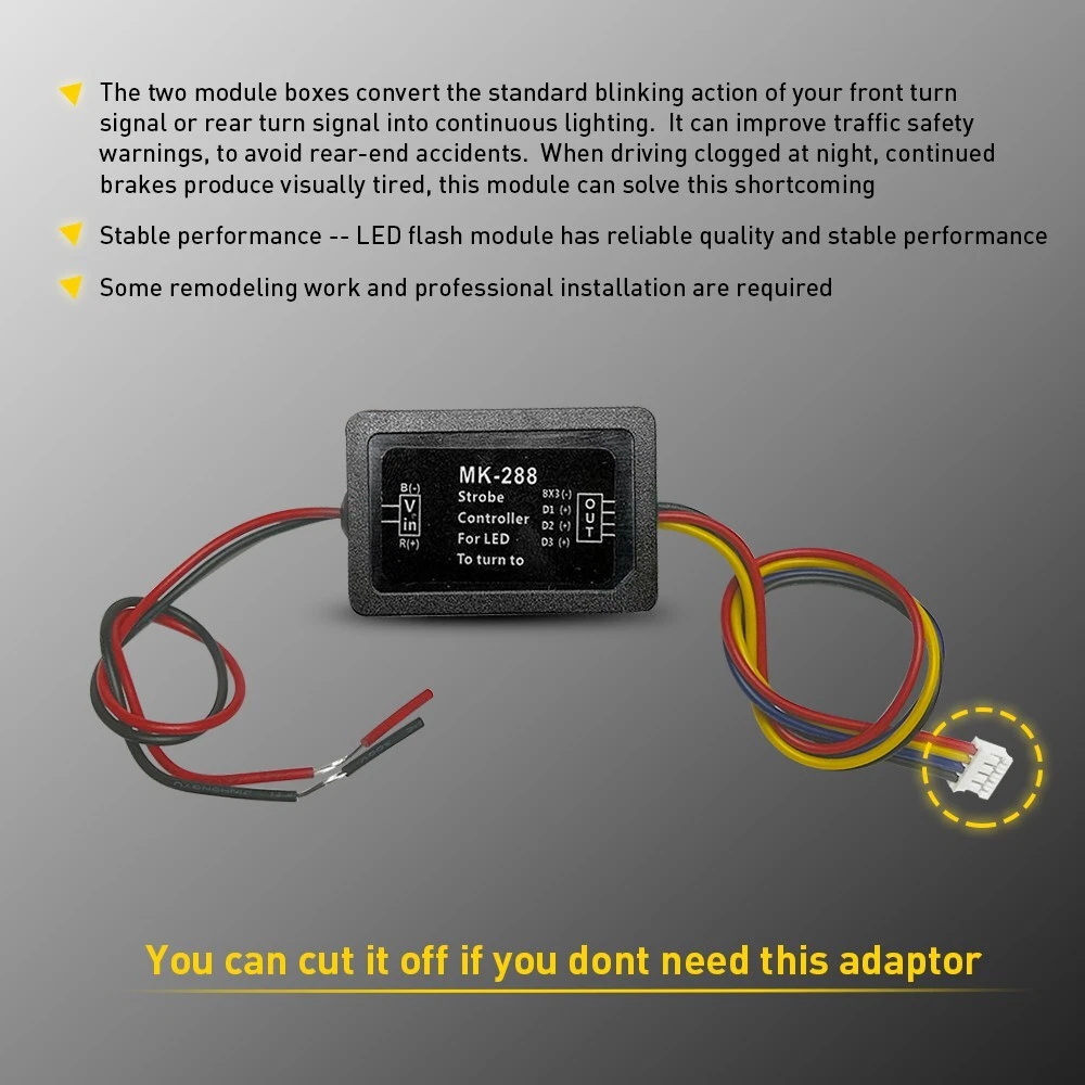 Specifications: Color: Black Material: ABS Input:12V DC, Output: 12V DC; supports up to 21W simultaneously Function:With the successional flash module box installed, your car's turn signal lights will get three sequential outputs with each flashing about 0.28 seconds for a full turn signal rotation of 0.85 seconds. Fits for: Most car's front or rear turn signal lights but needed some retrofitting work. Features: *Stable performance Equipped with LED flash module with reliable quality and stable performance. *Professional installation 2PCS 3-Step Sequential Flow Semi Dynamic Flash Chase Light Tail Box Module 12V Specifications: Color: Black Material: ABS Input:12V DC, Output: 12V DC; supports up to 21W simultaneously Function:With the successional flash module box installed, your car's turn signal lights will get three sequential outputs with each flashing about 0.28 seconds for a full turn signal rotation of 0.85 seconds. Fits for: Most car's front or rear turn signal lights but needed some retrofitting work. Features: *Stable performance Equipped with LED flash module with reliable quality and stable performance. *Professional installation Some remodeling work and professional installation are required. If you do not need the output adapter, you can cut it off. *Safety The two module boxes convert the standard flashing action to your forward turn signal or rear turn signal for continuous illumination. It can improve traffic safety warnings and avoid rear-ending accidents.It also can solve the problem of visual fatigue caused by braking continuously when there is a traffic jam. Package Included: 3-step Sequential Chase Flash Module *2 Item Specifics Brand Unbranded Number Of Pieces 2 Type 3-step Sequential Chase Flash Module Placement on Vehicle Front, Left, Rear Material ABS Interchange Part Number Tail Light Controller Fitment Type Direct Replacement Superseded Part Number 3-Steps Sequential Module Boxes System Interchange Part Number Tail Light Controller Fitment Type Direct Replacement Superseded Part Number 3-Steps Sequential Module Boxes System Payment We accept PayPal via eBay Secure Check-Out only. Immediate payment needs to be processed for items with Add to Cart option so that any promotional discounts can be applied to your order immediately. Shipping 1 .We do everything we can to ship your orders out as soon as possible. 2. Shipping and Handling: We process orders within two business day after the payment was clear. Returns Our 30-day Satisfaction Guarantee assures our customers that they will receive all orders promptly and exactly as described. In addition, it allows customers to return new and unused products in their original factory condition for any reason within 30 days from the date of purchase. 1. All returns must be pre-approved by AUXITO and have a return merchandise authorization(RMA) number. Unauthorized returns will not be accepted. 2. Buyers are responsible for appropriate packing, returning shipping cost, insurance and returning the item in "new" condition. Used items will not be accepted for return. 3. We will replace the returning item with an identical item, issue a full store credit or a full refund. Contact Us Our Working Time:(GMT+8)Monday to Friday,9:00-18:00. For inquires and customer support, please send your email via ebay email system. All emails will be responded to within 24 hours during business days. Feedbacks 1. We appreciate your business and strived to improve our customer service and our commitment to quality. 2. We will leave a positive feedback immediately after payment is received. We appreciate a positive feedback as much as you do. 3. If for some reason there is any issue with the purchase, please contact us prior to leaving feedback, and we will be glad to work with you to have it resolved. DESCRIPTION PAYMENT SHIPPING RETURN POLICY CONTACT US Hot Item Fit For 2015-2019 Hyundai Center Light Gray Sonata Armrest Console Lid Cover USD 13.29 Waterproof Motorcycle Handlebar Dual USB Phone Charger Cigarette Lighter Socket USD 13.29 AUXITO 7440/7443 Turn LED Signal Light Bulbs Anti Hyper Flash Amber Super Bright USD 21.84 190 PCS Bumper Fender Moulding Side Garnish Grille Retainer Clip ABS Various USD 10.44 146PCS For Toyota RAV4 Fender Door Hood Bumper Trim Clip Retainer Fastener Kit USD 10.92 Hot Item Waterproof Motorcycle Handlebar Dual USB Phone Charger Cigarette Lighter Socket USD 13.29 190 PCS Bumper Fender Moulding Side Garnish Grille Retainer Clip ABS Various USD 10.44 AUXITO 7440/7443 Turn LED Signal Light Bulbs Anti Hyper Flash Amber Super Bright USD 21.84 Fit For 2015-2019 Hyundai Center Light Gray Sonata Armrest Console Lid Cover USD 13.29 146PCS For Toyota RAV4 Fender Door Hood Bumper Trim Clip Retainer Fastener Kit USD 10.92 2PCS 3-Step Sequential Flow Semi Dynamic Flash Chase Light Tail Box Module 12V Specifications: Color: Black Material: ABS Input:12V DC, Output: 12V DC; supports up to 21W simultaneously Function:With the successional flash module box installed, your car's turn signal lights will get three sequential outputs with each flashing about 0.28 seconds for a full turn signal rotation of 0.85 seconds. Fits for: Most car's front or rear turn signal lights but needed some retrofitting work. Features: *Stable performance Equipped with LED flash module with reliable quality and stable performance. *Professional installation Some remodeling work and professional installation are required. If you do not need the output adapter, you can cut it off. *Safety The two module boxes convert the standard flashing action to your forward turn signal or rear turn signal for continuous illumination. It can improve traffic safety warnings and avoid rear-ending accidents.It also can solve the problem of visual fatigue caused by braking continuously when there is a traffic jam. Package Included: 3-step Sequential Chase Flash Module *2 Payment We accept PayPal via eBay Secure Check-Out only. Immediate payment needs to be processed for ite
