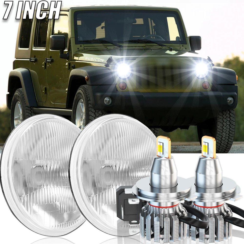 7" Inch Universal Round Cut Chrome Front Clear Glass Lens Diamond Headlights Kit 7" Inch Round Headlight Housing *Black Chrome housing with clear lens design , Lens is made out of clear glass. *Enhance visibility during night time, heavy rain, snow, or dense fog. Precision optics offers a highly controlled concentration of light to enhance visibility. *Direct replacement, easy installation. *High quality O.E grade materials to withstand the most rigorous weather *Compatible For Manufacturer Headlight Part Numbers # H6014 / H6015 / H6024 *These headlights are set up for high and low beams, just simply plug them into your original wiring. *This design is perfect replacement for old sealed-beam round headlight on any vehicle that uses standard 7” bucket. H4 HB2 9003 LED Headlight Bulbs Specifics -Color: 6000K Cool White -Power Consumption: 50 Watt -Luminosity: 10,000 LM -360 Degree / U6S Series CSP Chip Perfect Beam Angle -H4 - Dual Beam Function (You will have HIGH AND LOW!) -500% Brighter than Stock Halogen -Built in IC Circuit (Current Regulator)-Prevents LED Damage From Voltage Variations & Spikes. -Lifespan: 50,000 Hours -Operating Voltage: DC 12V / 24V -Amperage: 1.9A - 2.9A -Maintenance free, Waterproof IP67, Shockproof -Warranty 5 years Top Features 300% Brighter than Halogen: 50W 6000K cool white, 1w=100lm, with clear visibility and perfect beam pattern, so you can enjoy good vision while driving at night. Super Focused Beam Pattern: U6Splus led bulbs with 1.0mm ultra-thin centered light emitting. No dark spots or foggy light, do not blind oncoming traffic. 10mins Easy Installation: The LED bulb’s almost 1:1 design as halogen. Plug and play. No other tools are needed 360° Adjustable Beam Pattern: Adopts 360° adjustable locker ring to ensure the best beam pattern. except H1, H3, 880, PSX26W 50,000 hours Lifespan: U6S plus comes with a copper base board, cold pressed aluminum heat sink and 12,000rmp cooling fan. Better solve the dimming or over heated of led bulbs. Parcel Content: - 2 * 2-side H4 Headlight Bulbs - 2 * 7" inch headlight housing On Nov 19, 2024 at 20:57:31 PST, seller added the following information: