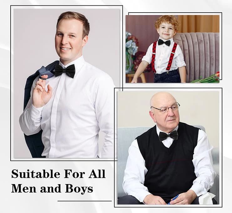 Return Policy Fast Delivery Trusted seller 2PCS Bow Ties for Men, Adjustable Black Bow Tie, Classic Bow Tie for Weddings, Banquets, Bands, Graduations, Christmas, Celebrations and Any Other Formal Occasions Product Description Shipping Returns Payment Shipping Shipping is FREE to all addresses other than APO/PO boxes in the lower 48 states. All our stock ships from US-based warehouses. Shipped via USPS or UPS (depending on location and package weight) Unless stated otherwise, all orders will ship within 24-72 hours of your payment being processed. Check our feedback to see the great reviews of FAST shipping we offer. Returns Seller does not accept returns Payment We currently accept payment via eBay managed payments only. Once payment is cleared, we will dispatch your shipment within 1-3 business days. Please refer to the "Shipping" tab for more information regarding shipping speed to your destination.