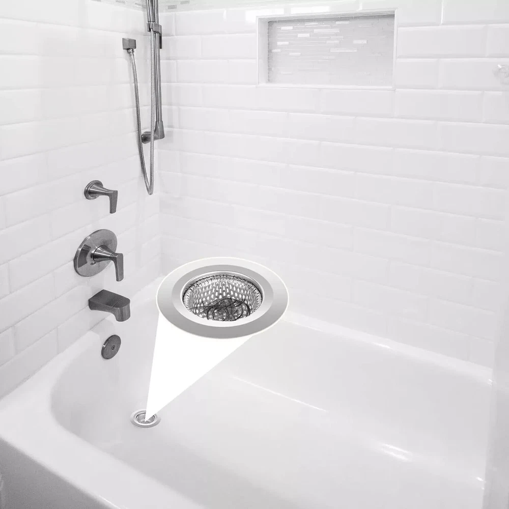 Enhance the plumbing system of your home with this modern bathtub drain strainer. Made of high-quality stainless steel with a brushed finish, it effectively catches hair and other debris from entering the drain. Measuring 2.79 inches in width and 0.74 inches in height, it is compatible with dishwashers for easy cleaning. This anti-clogging drain strainer is designed for use in the bathroom and is manufactured in China. With its sleek and modern style, it is perfect for any home decor. The item model number is OH-OH010A and it weighs 1.06 ounces. Get this shower hair catcher today and enjoy a clog-free drain.