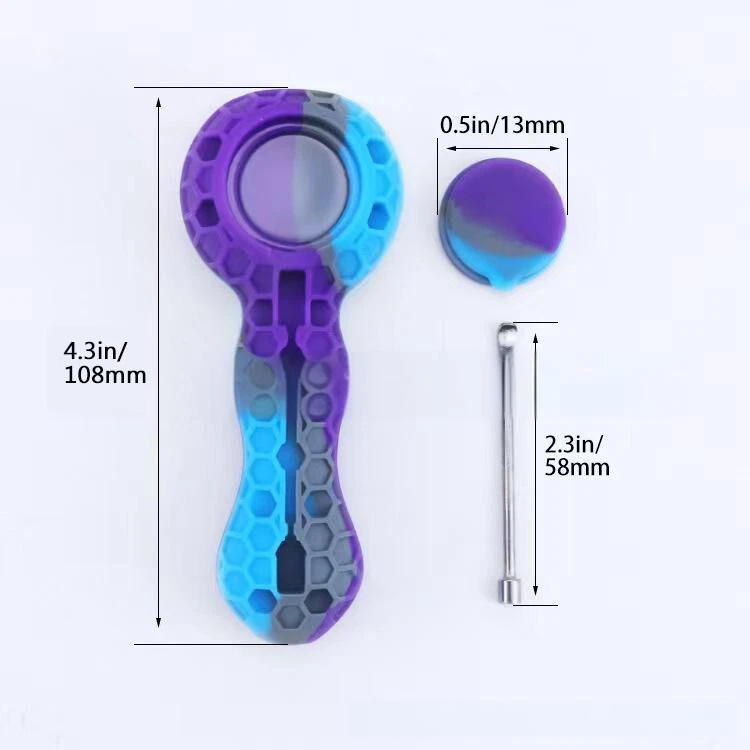 Description: We manufacture all kinds of silicone pipes for years Product Name?Honeybee Silicone Smoking pipe Color: Blue&Purple+Black High temperature (low temperature) characteristics, the highest heat resistance With longer life than other materials; greasy, corrosion-resistant, Conveniently sized 100% handmade and Real picture. Top quality 100% food grade silicone Weight 70g Length4.3 inch CharacteristicsHigh temperature resistance Package Include: 2 pipe with 9 holes glass bowl and clean tool On Aug 6, 2024 at 11:47:29 PDT, seller added the following information: