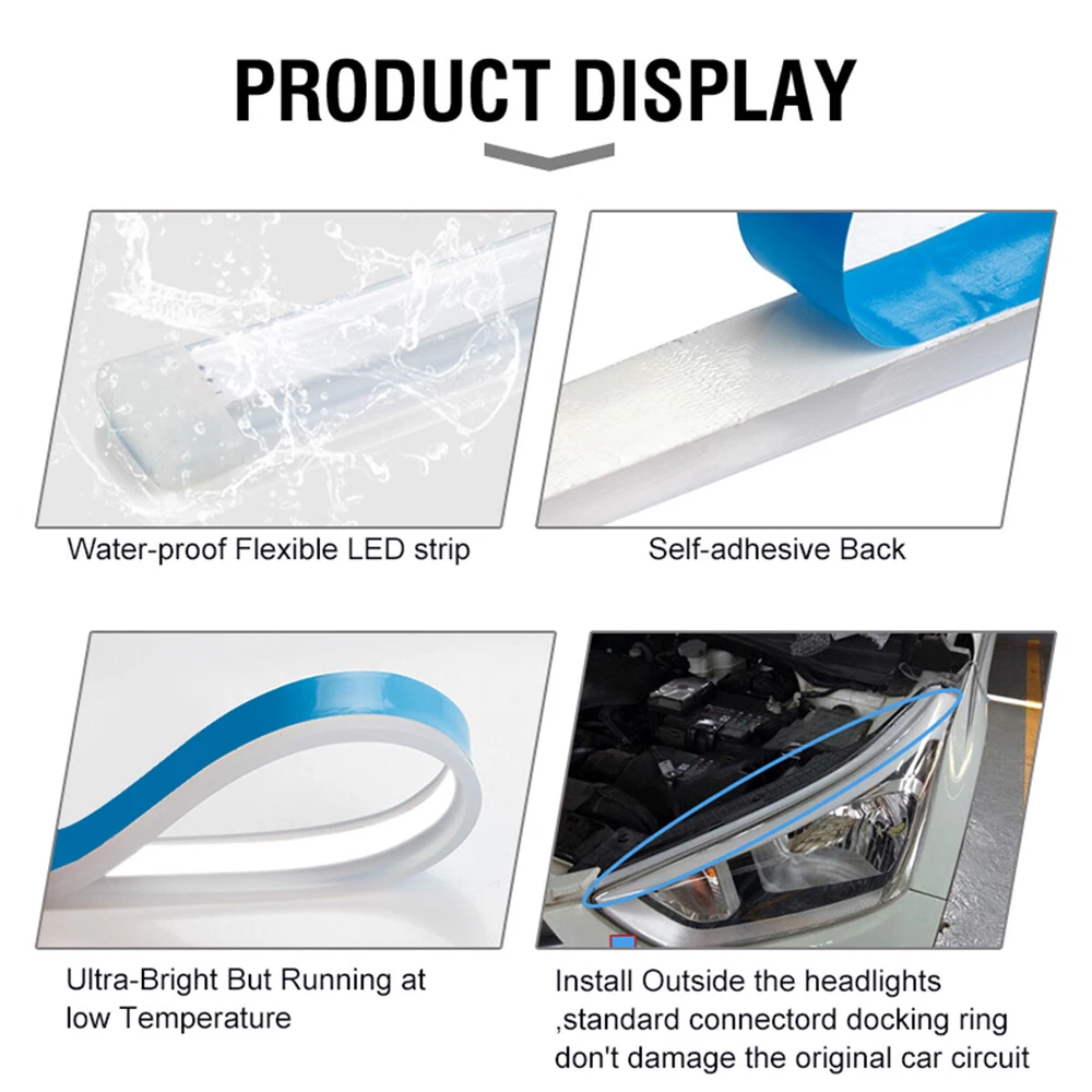 2PCS Flowing LED Car Styling Daytime Running Light Strip Headlight Accessories Pair* Daytime Running Light Strips ( White dynamic sweeping when start-up, As running light, it will be white when the car is running )Turn Signal Light Strips ( as turn signal light, it will be sequential flowing yellow(amber) sequential when the car is turning ) / Flexible / Waterproof 1.MAKE YOUR HEADLIGHTS POP! A perfect way to add a stunning custom look to your headlights 2.DRL AND TURN SIGNAL: A striking white liner look with turn signal actiavated amber lights 3.BENDS TO YOUR WILL: Can be bent, twisted, and contoured to fit most headlights 4.Simply splice into your current DRL and turn signal wiring 45cm in Length,and Cuttable every 3LED Beads (must seal the tube with Insulated Glue for Waterproof Protection) Voltage :12V/240mA Wattage : 3W Size : 450mm x 13mm x 4mm Package composition: 2x light drl strip (R+L) The item is equipped with a built-in mini control module. The controller is embedded in the light strip. Sealed inside the lamp tube together with the bulb panel. Driver integrated IC. Safe and strong anti-interference ability. Save installation space. We accept Paypal and majoy credit cards payment When you place an order, please choose a shipping method and pay for the order including the shipping fee within 48 hours. And please make sure your current address correct after your payment within 1-2 days! About Shipping 1. Receiving time = Processing time + Shipping time 2. Processing Time: Around 1-3 Days 3. Shipping Time: 15-26 Days By Air Mail 3-10 Working Days By Express We do not guarantee delivery time on all international shipments due to differences in customs clearing times in individual countries, which may affect how quickly your product is inspected! Important Notice >Transit Time Is Best Estimated But NOT Guaranteed As Transit Time Varies >Orders may be subject to import taxes, customs duties and fees levied by the destination country.Additional charges for customs clearance must be fulfilled by the recipient; We no control over these charges, nor can we predict what they may be. 100% Customer Satisfaction Is Our Top Priority For Any Reasons You Are Not Satisfied With The Products Within 30 Days Of Purchase, Return Or Exchange Can Be Issued, Customers Are Responsible For The Return Shipping Cost And Subsequent Replacement Shipping Cost For An Exchange Item. Replacement Item Will Be Processed And Shipped Upon Return And Inspection Of The Original Item. Return Items Must Be In Their Original Packaging And Unused Condition, Or They Will Be Rejected And Sent Back To You. Due To The Nature Of The Products We Sell, We Carefully Inspect All Packages Prior To Shipping. All Of Our Products Are Sold As Brand New, All Damaged Products Are Considered Damaged During Transit. If You Received A Damaged Or Broken Item, Please Save All Packaging Material And Paperwork And Contact Us Immediately So We Can Help You With The Damage Claim With The Shipping Carrier. No Claims Will Be Honored After 14 Days Upon Item Receive. Digital Photos Will Be Required For All Cases. All Products Come With A 60 Days Limited Warranty Against Manufacturer’s Defects. No Exchange Will Be Issued On Products That Have Been Damaged In Any Way. Warranty Does Not Applied To Improper Installation, Water / Fire Damage, Modification, Or Any Acts Of Nature . If you have any question or concern, please feel free to contact us via eBay massage directly, we will get back to you as soon as we are available ATTENTION : We do not answer any emails over the weekend Please send message to us.We will reply your message in 24 hours, Our working time: 9:00 AM-22:30 PM (GMT+ 08:00 Beijing) 1:00 AM -14:30 PM (GMT+ 00:00 London) 19:00 PM-08:30 AM (GMT- 06:00 USA/Canada) Why Choose us? 1. A tremendous variety of products-- With over 200,000 items in stock, we are one of the world's largest online stores in automotive aftermarket product sector. You'll have more choices than what you can ever imagine. What's more, we're updating with over 100 new arrivals per month! 2. Affordable prices -- we are offering the latest car parts and accessories for almost 20 years, we're always keeping up with the newest trends, while most importantly, making the prices as low as we can. 3. Free worldwide shipping -- Yep, you won't believe that you'll enjoy free worldwide shipping with us (unless stated otherwise),it's not a joke,but an absolute truth. 4. No-question refund and return-- Anything wrong issuing quality and breakage can be returned or refundable. Pair* Daytime Running Light Strips ( White dynamic sweeping when start-up, As running light, it will be white when the car is running )Turn Signal Light Strips ( as turn signal light, it will be sequential flowing yellow(amber) sequential when the car is turning ) / Flexible / Waterproof 1.MAKE YOUR HEADLIGHTS POP! A perfect way to add a stunning custom look to your headlights 2.DRL AND TURN SIGNAL: A striking white liner look with turn signal actiavated amber lights 3.BENDS TO YOUR WILL: Can be bent, twisted, and contoured to fit most headlights 4.Simply splice into your current DRL and turn signal wiring 45cm in Length,and Cuttable every 3LED Beads (must seal the tube with Insulated Glue for Waterproof Protection) Voltage :12V/240mA Wattage : 3W Size : 450mm x 13mm x 4mm Package composition: 2x light drl strip (R+L) The item is equipped with a built-in mini control module. The controller is embedded in the light strip. Sealed inside the lamp tube together with the bulb panel. Driver integrated IC. Safe and strong anti-interference ability. Save installation space. PAYMENT We accept Paypal and majoy credit cards payment When you place an order, please choose a shipping method and pay for the order including the shipping fee within 48 hours. And please make sure your current address correct after your payment within 1-2 days! SHIPPING About Shipping 1. Receiving time = Processing time + Shipping time 2. Proces