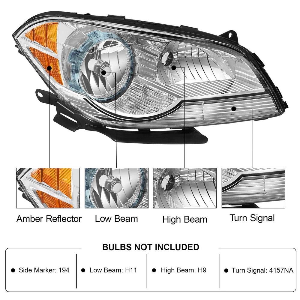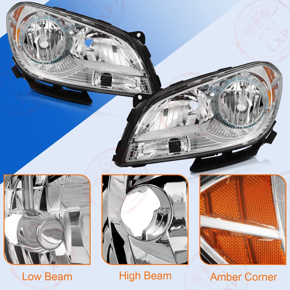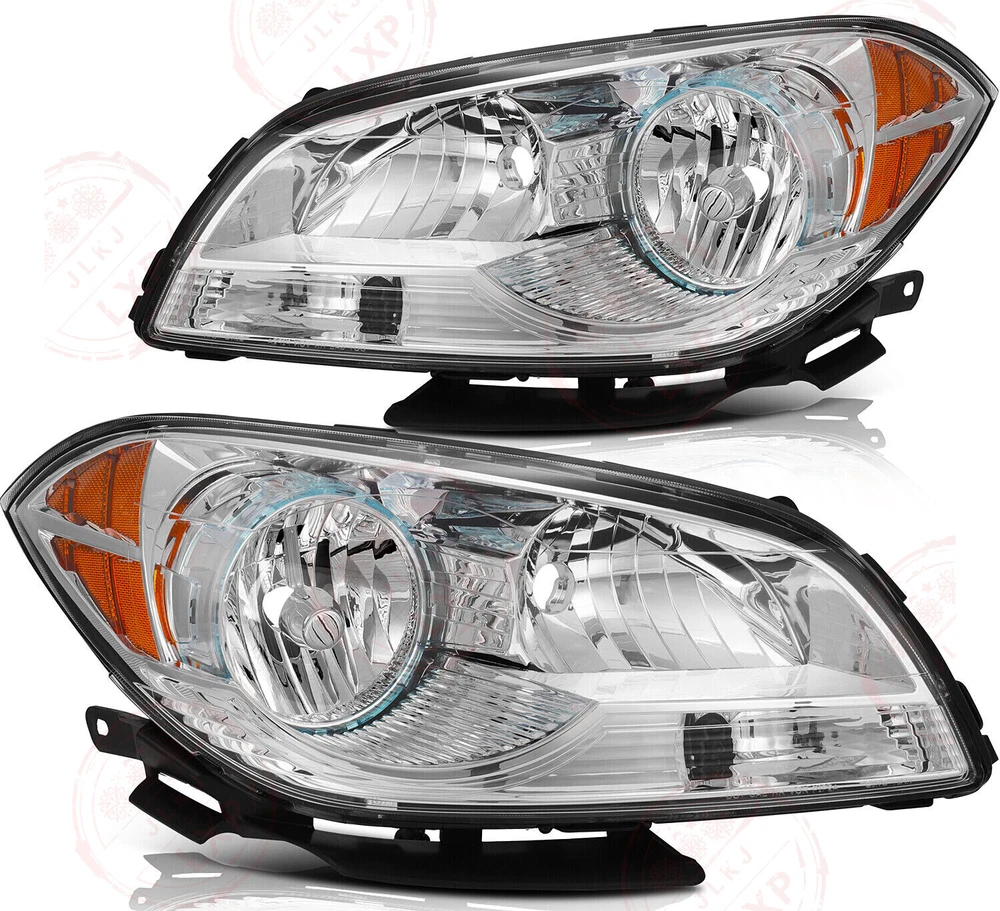 Material:ABS Plastic Color:clear Mounting Position:Driver & Passenger Side Package:Driver & Passenger Side Headlgihts Housing Color:Chrome Lighting Technology:Halogen OEM Part Number: GM2502307 GM2503307 25984637 25872861 Fitment For 2008-2012 Chevy Malibu Chrome Housing Clear Corner Headlights Headlamps Assembly