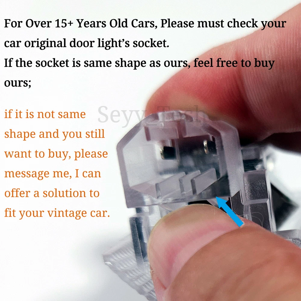 Home Shipping Return Policy About Us Contact Us Feedback Features: - Universal Fit for Almost All Last 20 Years of All Models and Subsidiary Brands. And for vintage cars, please check original door light's socket, and message me, we also have old socket type. - 1:1 Design, Plug and Play, super easy to install, no drilling, no wiring, no damage to your car, directly replace the original car door lights. - Automatically turn on / off when door is opened or closed. Designed lighting pattern display on the ground, great puddle lights to replace old door lights, more brighter and more attractive. - You can tell your car's subsidiary brand, you can check with us to see if the letters under emblem can be changed accordingly. - Great Performance, high-definition and bright projection, HD projection, using high-brightness LED chips, ultra-high-brightness lighting output, low power consumption. - Quick Response Service, any question or problem will be resovled for you within 24 hours, mostly within 12, please feel free to message us before or after sale. Parcel Included: 2× Door Lights, 1× Pry Bar. How to Install: 1, Use our plastic pry bar to pop our old door light, and disconnect it with car's plug; 2, Plug our door light directly, check the direction of the lighting, change to other light if the direction is not ok for you. 3, Press in the light, done. Note: Lighting Details & Patterns please check video or message me to get photos. Payment Delivery details Terms of sales About us Contact us Payment Thank you for buying, and any payment Ebay accept is OK. Delivery details Usually your parcel or parcels will be handled and sent out in 1 working day. Usually you will receive your parcel or parcels in 2~5 working days, depends on the courier and parcel size, sometimes large parcel is slower. In case there is any problem about tracking or delivery, please feel free to contact us, we will contact courier to resolve, and no matter what, we will resolve for you. Terms of sales Any message from you will be replied in 24 Hours. Any problem will be resolved or offered solutions in 24 Hours. Please kindly do not open any case before contacting us, I promise you that any question or problem will be replied or resolved much faster if you contact us directly. We are all nice and honest people, in case anyone don't reply you in polite manner, or anyone don't resolve your problem in good way, send a message with a title Your manager, then I will take care your problem by myself. Thank you very much, and I am the company owner, Jess Wang. About us A experienced team to service USA people and market, we always be available to our customers, we don't let anyone wait longer than 24 Hours, please feel free to contact us at any time. Contact us Free Return for any problem even it is just a slight problem when you want to return. Please kindly contact us before opening any case. When you want to return just because you buy wrong or just don't like it or just don't want it, also, just contact us, we will assist you as always. Have a lovely day, thank you for visiting.