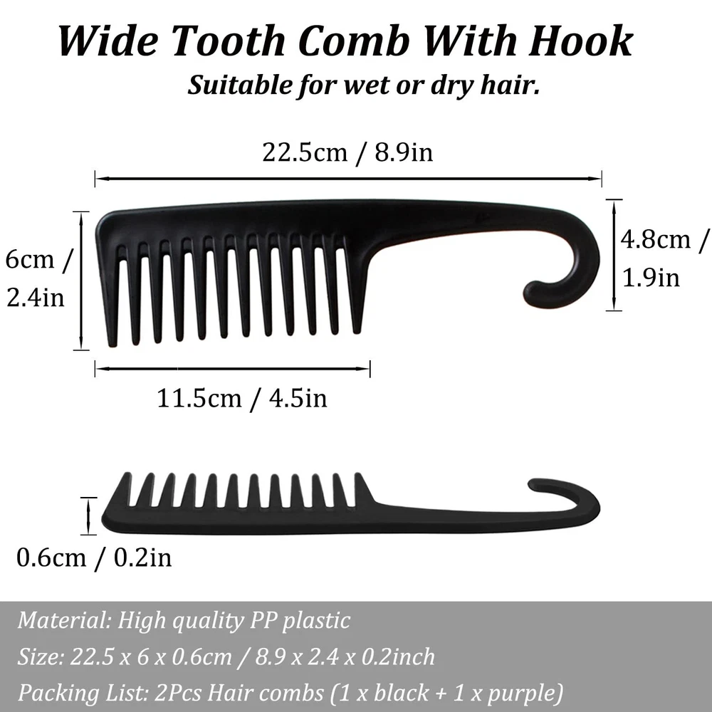 2PCS Large Wide Tooth Comb, Shower Combs with Hook for Wet Curly Hair, Premium B Premium Large Wide Tooth Comb -- Our shower comb is made of high quality PP plastic material, high temperature resistance, anti-static, anti-slip and wear-resistant, skin-friendly touch and robust. The detangling comb has hook, which can be hung in the bath room. The high quality hair combs detangler are not easily bent or broken, ensuring long-term use, especially the big shower hair bruh is suitable for the wet curly wig hairs. Circular Wide Tine Combs -- Smooth round wide teeth comb can help you easily comb out soft hair without knotting, tearing your hair and hurting your scalp, and help reduce hair loss. In addition to daily hair care, the styling shower comb can be used to massage the scalp, helping to increase blood circulation and distribute natural oils into the skin and hair to provide nourishment, leaving hair healthy, smooth and vibrant as a shower comb for wet curls. Ergonomic Handle Design -- The bottom of the hair comb handle is specially designed with a curved hook for a comfortable grip and fits the line of your hand, making the shower comb easy to hold and store in bathroom. the wide tooth comb for curly hair is easy and convenient to hang on the shelf when you are in the shower or handling the wet curly wig hair. Thus, the big detangling comb with hook is perfect for daily use. Specially, this is wide tooth comb for wet hair. Practical Hair Detangling Comb -- This hair styling comb brush detangler is perfect for wet or dry hair, curly hair, long & thick hair, natural straight hair, children's hair, just the comb you want. This portable hairbrush comb is perfect for applying conditioner to your hair, giving you a very comfortable and smooth experience to use and making you feel good every day. This detangler comb is very suitable for wigs, wet curly hair. Perfect Gift -- The large tooth comb is suitable for women and men. This unique design, good-looking and practical detanger hair brush comb set is the great gift for your family, lovers and friends. And the wide tooth comb is the ideal choice for Christmas, Valentine's Day, birthday or other holiday gifts. You will get 2pcs curved handle shower combs (1 x black + 1 x purple). Size: 22.5 x 6 x 0.6cm / 8.9 x 2.4 x 0.2inch, which is the wide tooth comb for curly hair, wigs, wet hair, and so on. Shipping We offer FREE shipping on all orders! We ship within Three business days of payment, usually sooner. We use a selection of shipping services such as UPS, FedEx, USPS etc. We only ship to the lower 48 states, no APO/FPO addresses or PO Boxes allowed. Local pickups and combined shipping options are not provided at this time. Return You can return a product for up to 30 days from the date you purchased it. Any product you return must be in the same condition you received it and in the original packaging. Please keep the receipt. Payment We accept payment by any of the following methods: PayPal Please pay as soon as possible after winning an auction, as that will allow us to post your item to you sooner! Feedback Customer satisfaction is very important to us. If you have any problem with your order, please contact us and we will do our best to make you satisfied. Contact Us If you have any queries, please contact us via ebay. We usually respond within 24 hours on weekdays. Please visit our eBay store to check out other items for sale! Thank you for shopping at our store.