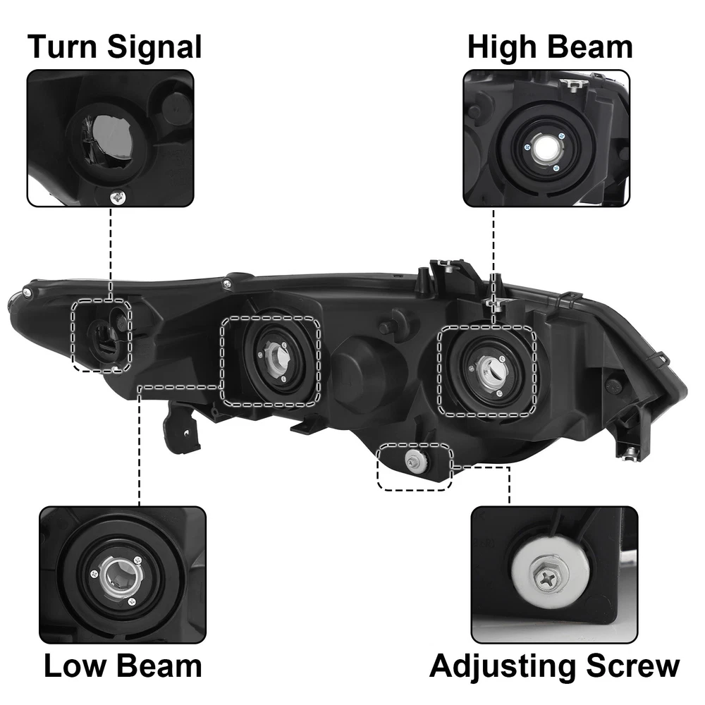 2PCS Pair Headlights For 2006-2011 Honda Civic 2-Door Coupe Headlamps Left+Right Specifications: 1.Color: Black Housing Amber Reflector 2.Material: ABS Plastic+ Polycarbonate Lens 3.The bulb type: High Beam:HB3 (Blubs Not included) Low Beam: HB4 (Blubs Not included) Features: 1.Anti-UV coating specially added to strengthen the lenses 2.Well sealed with premium silica glue and gone through air-tight tests 3.Plug and play operation; no drilling or wiring required 4.Meet or exceed DOT and SAE standards 5.Professional Installation is Highly Recommended. Installation Instruction is NOT Included. 6.3-Months Limited Warranty. Buy With Confidence! Compatible With: 2006-2011 Honda Civic 2Dr Sedan Model Only Not compatible with 4Dr Model Package includes: 1 pair of Headlights Driver and Passenger Side ( Left and Right Side ) Payment Shiping Policy Returns Policy Feedback Contact us Payment We accept PayPal, Google Pay, Credit Cards, and Debit Cards. Shiping Policy All Orders Will Ship Within Two Business Days.Except PR,HI,AK,GU and PO Box addresses. No local pick up All Packages Will Be Inspect Before Shipping, We Will Provide All Packing Material Needed For Your Package For Shipping Such As Boxes, Cushioning And Tape To Improve Shipping Quality. Very Important: Double check shipping address. We are not responsible for incorrect or undeliverable addresses. Returns Policy 60 Days returns satisfaction guarantee. All of Our Items Are 100% Brand New. If The Item Shows Up Defective or Broken, Please Contact Us Within 3 Business Days By Using "Ask A Question" Link Located At The Bottom of Our Listing. Your Questions/Concerns Will Be Responded Within 12 Hours Monday To Friday. Buyers May Contact us On The Weekends or Pubic Holidays And We Will Respond On The Next Working Day. We Will Offer Replacements, Exchange or Full Refund. 100% Satisfaction Guaranteed. We Will File Damage Or Lost Claim For Our Buyers Feedback We will leave a positive feeback immediately after payment is received. We appreciate a positive feedback as much as you do. If you have any issue with order,pls. contact us before leaving a feedback. We will glad to resolve your issue.Your satisfaction is our priority. Contact us If you have any concerns, Pls. feel free to contact us at any time.