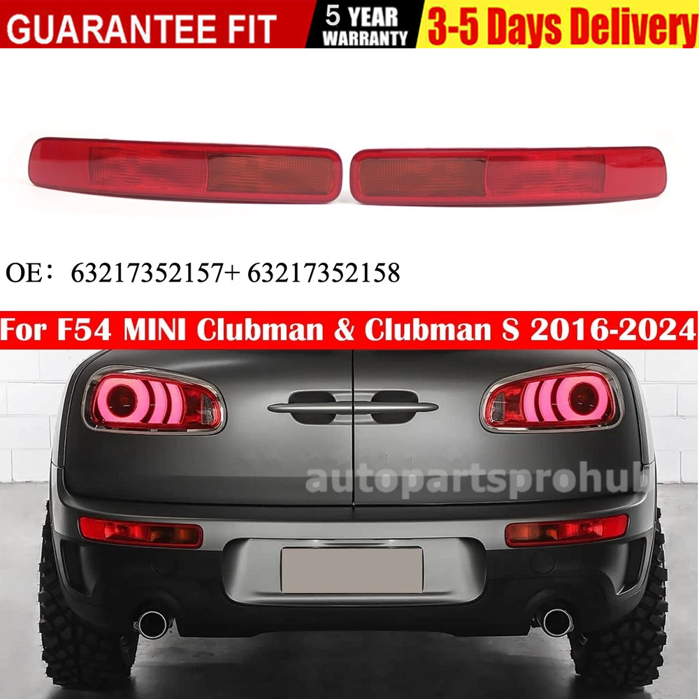 Feature: Made of high quality plastic housing and lens. Special coating on the lens surface prevents hazing and fading. Ensuring proper illumination and operational safety. Special design, great for stock rear bumper red reflector replacement. Easy installation, direct replacement, no modification required. Specification: Material: Plastic Color: Red Style:With Bulb Manufacture Part Number: 63217352159 63217352157(Left)/63217352160 63217352158(Right) Fitment: For 2016-2024 F54 MINI Clubman For 2016-2024 F54 MINI Clubman S Notice: - Please allow 1-3CM differs due to manual measurement. - Due to the different display and different light, the picture may not reflect the actual color of the item. Thanks for your understanding. Guarantee ⭐⭐⭐⭐⭐100% Bran-new and Good Quality ⭐⭐⭐⭐⭐2025 New upgrade version ⭐⭐⭐⭐⭐Item Located United States ⭐⭐⭐⭐⭐ Fast shipping 2 to 5 working days ⭐⭐⭐⭐⭐ 60 Days Money Back + 90 days Warranty ⭐⭐⭐⭐⭐ CE,FC,RoHS,PSE Please be noted that we stock our products in US, and you will get your package in around 1-5 work days, while there are some other sellers who claim to be US stock too, but take more than a week (4-10 Days) to deliver, which are usually China stock in fact. Feature: Made of high quality plastic housing and lens. Special coating on the lens surface prevents hazing and fading. Ensuring proper illumination and operational safety. Special design, great for stock rear bumper red reflector replacement. Easy installation, direct replacement, no modification required. Specification: Material: Plastic Color: Red Style:With Bulb Manufacture Part Number: 63217352159 63217352157(Left)/63217352160 63217352158(Right) Fitment: For 2016-2024 F54 MINI Clubman For 2016-2024 F54 MINI Clubman S Notice: - Please allow 1-3CM differs due to manual measurement. - Due to the different display and different light, the picture may not reflect the actual color of the item. Thanks for your understanding. Shipping Payment Return Customer Service Feedback Shipping We will ship the items within 24 hours on working days after your cleared payment. 1. Upon request, most of orders placed before 1pm EST can be shipped same day during weekdays from our US warehouse. 2. We only ship to the eBay confirmed address, Tracking number is uploaded to eBay orders. 3. Delivery time depends on destination and other factors, it may takes up to 3-8 working days. If you don't receive the item in 15 days, please contact us, we'll investigate and solve the delivery problem. 4. Import duties, taxes, and charges are not included in the item price or shipping cost. These charges are the buyer's responsibility. Please check with your country's customs office to determine what these additional costs will be prior to bidding or buying. Payment 1.We only accept PayPal. PayPal is the only online payment method we accept. 2.Payment must be made within 48hrs of the auction end time. 3.Non-Paying bidders will be reported. Return We provide 30 day return policy for products sold. If, for any reason, you are not satisfied with your purchases, full refund of the purchase (excluding the shipping expenses) can be applicable under the following circumstances: All accessories must be unused; ALL accessory packages must be unopened. All items must be intact and undamaged (except for defects in manufacturing). Items must be in good conditions with all original accessories, manuals, and packing materials. Any missing parts or damaged items will result in rejection on the return. In case of any defectives found, only defects in manufacturing are accepted as the reason of return. No refund is given if defects are caused by misuse of buyers. Our customer service officers will gladly contact you for further arrangement upon your request. All shipping cost thus generated is paid by the buyer. Item returned must be received within 7 days after the receipt of the items. No refund and replacement is issued after this period. Payment will be refunded as original currency only. We will not take responsibility for any loss due to exchange rate difference in the refund process. Refunds will NOT include ANY shipping and handling fees. Any additional expenses (such as eBay listing fees) will also be deducted from the refund. In the case of return, please be sure to include ALL the original contents (including gift, packages and manuals). Any missing contents may result in rejection of the refund. Please also make sure that the return package is securely packed, and apply waterproof packing instruments wherever necessary. Customer Service Working Time: Monday-Friday: 9:00-18:00 GMT+8 Saturday: 10:00-12:00 GMT+8 Customer satisfaction is very important to us and our feedback rating reflects this satisfaction We try our best to reply to your emails as soon as possible, however, due to high volume of daily incoming emails and time zone difference, we may not be able to reply your emails immediately. Please give us the opportunity to resolve any problem. We understand the concerns and frustrations you might have, and will try our best to resolve the issues. We focus on providing the best customer service. If you have any questions or concerns, Welcome to contact us. We will respond ASAP. Feedback If you have any enquiries, please do not hesitate to contact us through eBay contact seller message or email us with your eBay ID & item number. We appreciate your positive feedback and ALL 5 stars DSR score if you are satisfy with the transaction. Our system will automatically do the same for you by just a moment. We will try our best to solve any problems. Our aim is 100% customer satisfaction. Negative / Neutral feedback doesn't resolve any problems. Please contact us if you have any problems and we will try our best to solve the problems with you.