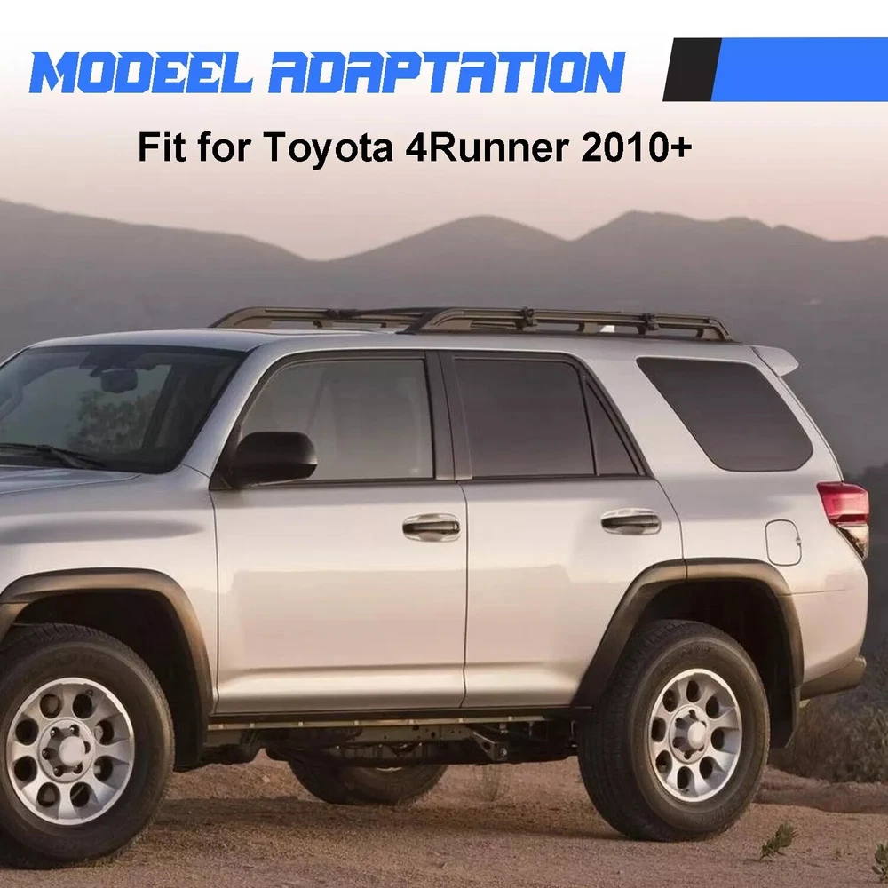 Feature: Material: Aluminum bars, Aluminum mounting brackets,Plastic cover High grade aluminum constructed.Instructions and all hardware are included.There are slots on the side rails to install cross bars. Low profile & streamline design enable it to reduce the wind resistance and noise effectively. Great solution if you have oversized items that you need to transport like: kayaks, canoes, luggage, snowboards, skis, bikes, fishing poles and more. Fitment: Fits for 2015 2016 2017 2018 2019 2020 2021 2022 2023 2024 Toyota 4Runner Note: This is after-market, Not OEM one. Package Include: 2 x Roof Rails; 1 x Screw Fittings Kit; 1 x Installation Instruction. 2PCS Roof Rack Side Rails for 2010-2024 Toyota 4Runner Roof Rails Black Aluminum Feature: Material: Aluminum bars, Aluminum mounting brackets,Plastic cover High grade aluminum constructed.Instructions and all hardware are included.There are slots on the side rails to install cross bars. Low profile & streamline design enable it to reduce the wind resistance and noise effectively. Great solution if you have oversized items that you need to transport like: kayaks, canoes, luggage, snowboards, skis, bikes, fishing poles and more. Fitment: Fits for 2015 2016 2017 2018 2019 2020 2021 2022 2023 2024 Toyota 4Runner Note: This is after-market, Not OEM one. Package Include: 2 x Roof Rails; 1 x Screw Fittings Kit; 1 x Installation Instruction. Payment Delivery details Terms of sales About us Contact us Payment We accept major credit card payments via Paypal. Payment must be received within 7 days of auction closing date. If you do not contact us or respond to our email within 7 days of auction closing date, we do not guarantee the item availability. We reserve the right to cancel any unwanted bids. Delivery details Flat rate shipping charge will be applied to the 48 continental USA States. Extra shipping fee will be charged to ship item(s) to HI, AK, PR, GU, VI, APO, FPO . Item(s) will be shipped via UPS Ground or USPS or Fedex within 3 Business days after payment is received. A Tracking Number will be upload on platform as soon as item(s) is shipped. International buyers please note, we are not responsible for any custom duties, taxes and brokerage fees. For some oversize packages, we may not be able to ship via USPS. Terms of sales All of our items are professionally made and guaranteed to fit. A professional installation is always recommended. Please send a message over eBay if you have any questions. We accept returns within 30 or 60 days after you received the item(s). All returned items must be new and in original package. The buyer will pay return shipping fees. No refund will be made for damaged parts. Shipping and handling fees and insurance fee are not refundable. About us Our warehouses are located in CA and NJ The transportation time is approximately 3-5 working days Contact us Your satisfaction is our top priority. We stand behind all products that we sell. If you have a problem with any of our listings, please allow us to work it out. Our business times are Monday-Friday 9:00- 5:00 Pacific Time. Office closes on weekends and holidays. We are striving to earn a 5- star rating with every purchase. Please take a moment to leave us a positive feedback when you receive your order. If you are not satisfied, please let us know before you leaving feedback. Please always include your purchase eBay item number in the mail whenever you have any questions.