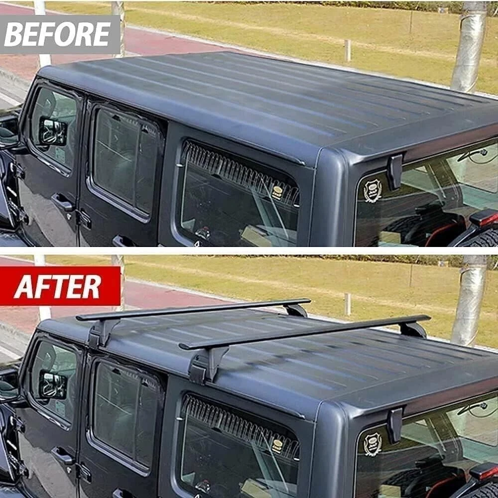 1.Product Description 【Our Advantage】 Bars made from high grade aluminum, base feet are made of high quality plastic. They are light weight, easy to install and dismantle. Max load capacity is 220lbs (100kg). 【Attention & Fitment 】The cargo luggage crossbars roof rack fit for compatible with Fit for Jeep Wrangler JL JK 2007-2025 ,Check will it fit your vehicle to ensure proper fit each vehicle, read description. 【Easy installation & Less Wind Noise】 Easy to assemble & remove in minutes. no drilling/cutting is required. Streamline water drop design, effectively reduce wind resistance & noise. 【Function】Great solution if you have oversized items that you need to transport like: kayaks, canoes, luggage, snowboards, skis, bikes, fishing poles and more. 2.Shipping Comments 【 1 】 2PCS Crossbars & Necessary Install accessories included . 【 2 】 We will send the items within 5 Days once system confirms buyer's payment. 【 3 】 FedEx, DHL,TNT Or UPS,5-7 working days for formal order, but the specific delivery time depends on destination and so on. 3.Function The roof racks are most commonly used for self-driving travel. It can be used with roof boxes and roof frames to carry travel luggage, increase the inside space of the car, and can also carry other sports equipment .Such As Skis, Bicycles, Sailboats, etc., to play a decorative and functional role. 4.Return Policy We can guarantee the high quality, and agree 1: 1 replace for the defective goods. 5.Pay Attention Due to the difference between monitors, the picture may not reflect the actual color of the item, but we guarantee that the item is exactly as the picture shown. If any problems with us, please feel free to contact us first, we will do our best to solve problems and provide the best services. We would be appreciate if you can contact us before feedback.