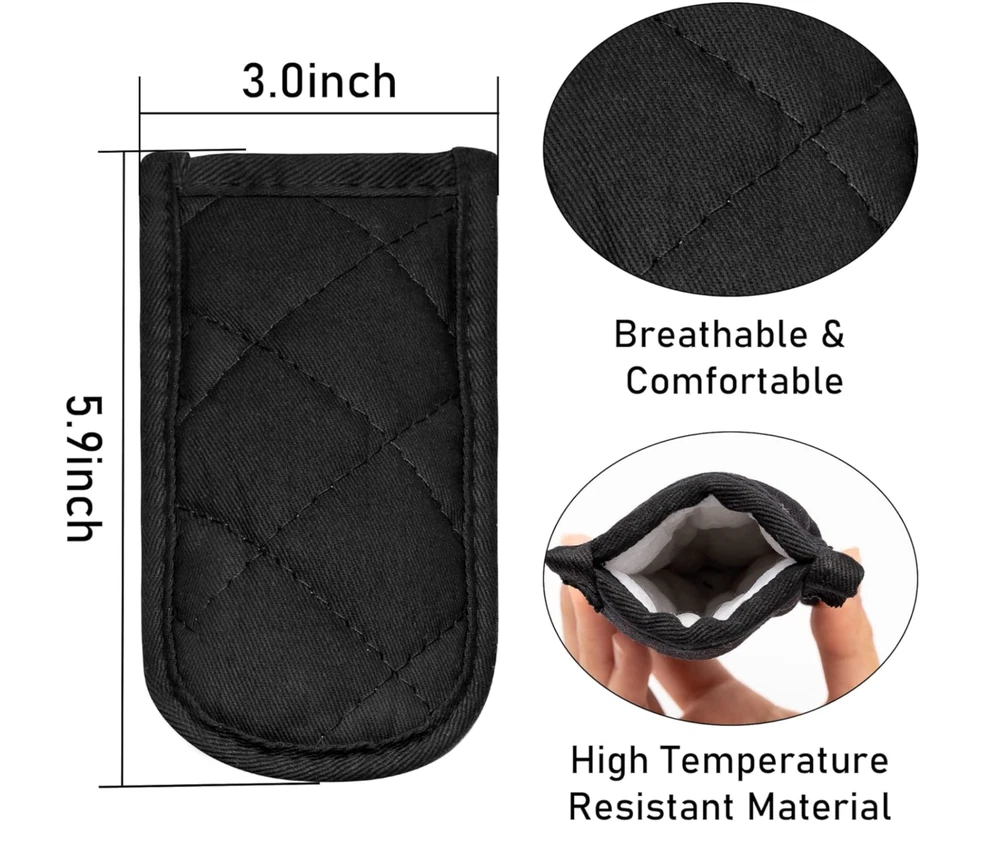 π₯ 2PCS Fabric Hot Handle Covers β Solid Black β Heat Resistant, Machine Washable Upgrade your cookware safety with this 2-piece set of solid black fabric hot handle covers , perfect for everyday cooking and cast iron lovers. Designed for comfort and protection, these stylish and practical covers are ideal for handling hot skillet and pan handles. π§€ Product Features: Durable Fabric β No Silicone Made from thick, heat-resistant fabric for flexibility and comfort. Heat Protection Helps shield your hands from hot cast iron, grill pans, and Dutch oven handles. Universal Fit Slides over most standard skillet handles with a snug, non-slip grip. Easy Care Machine washable for simple cleaning and long-lasting use. Sleek & Minimal All-black design matches any kitchen decor. π¦ Includes: 2 Fabric Hot Handle Covers β Solid Black (Approx. size: 6.5" x 3")