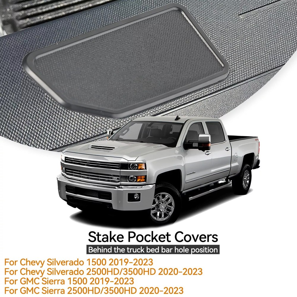 SAFE & SECURE SHOPPING 100% SATISFACTION GUARANTEED FAST SHIPPING Heavy Duty Plug Caps for Truck Side Rails, Fits Chevy/GMC 1500/2500/3500HD Product Description Feature : 1. Good Protection: Therefore, the plunger hole cover is a good choice for preventing rust in the pile hole. 2. Custom Design: The bed rail cover hole plugs compatible for Chevy Silverado GMC Sierra 2019-2023 make your car look more refined. The pile pocket cover extension has an uneven edge that allows the bed rail cover to better fit the holes of the original rail holes. Durable and sturdy pile pocket covers not only protect the pile holes but also give your truck a great custom look. 3. Easy to Install: installation will be very simple and convenient, it only takes a minute. First wash and clean the hole. Simply place the pile bag cover over the pile bag hole. Then put the pile bag into the hole. The entire installation process does not require any tools. Description: Product Name : Car Rail Pile Cover Quantity : 2 Colour : Black Material : ABS Application : Compatible For Chevy (Chevrolet)Silverado 1500 2019-2023 For Chevy (Chevrolet)Silverado 2500HD/3500HD 2019-2023 For GMC Sierra 1500 2019-2023 For GMC Sierra 2500HD/3500HD 2019-2023 Packing list: 2 x Car Rail Pile Cover Copyright © 2022 Tongtool