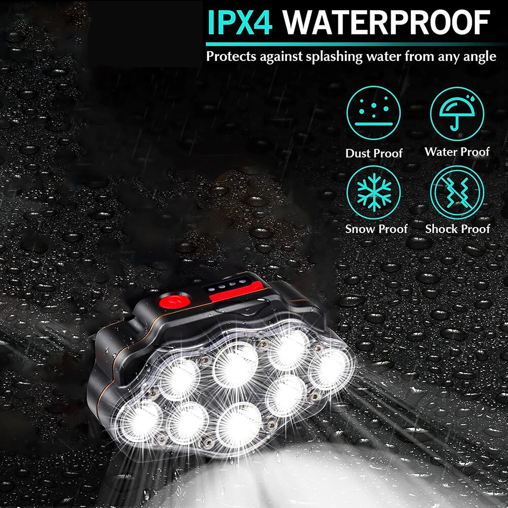 Battery Capacity: 1500mAh Usage Time: 4-5 hours Brand: Unbranded Country/Region of Manufacture: China Color: Black Charging Time: 3 hours MPN: Does not apply Features: Advanced Design, USB, Water Resistant Material: ABS Bulb Type: LED