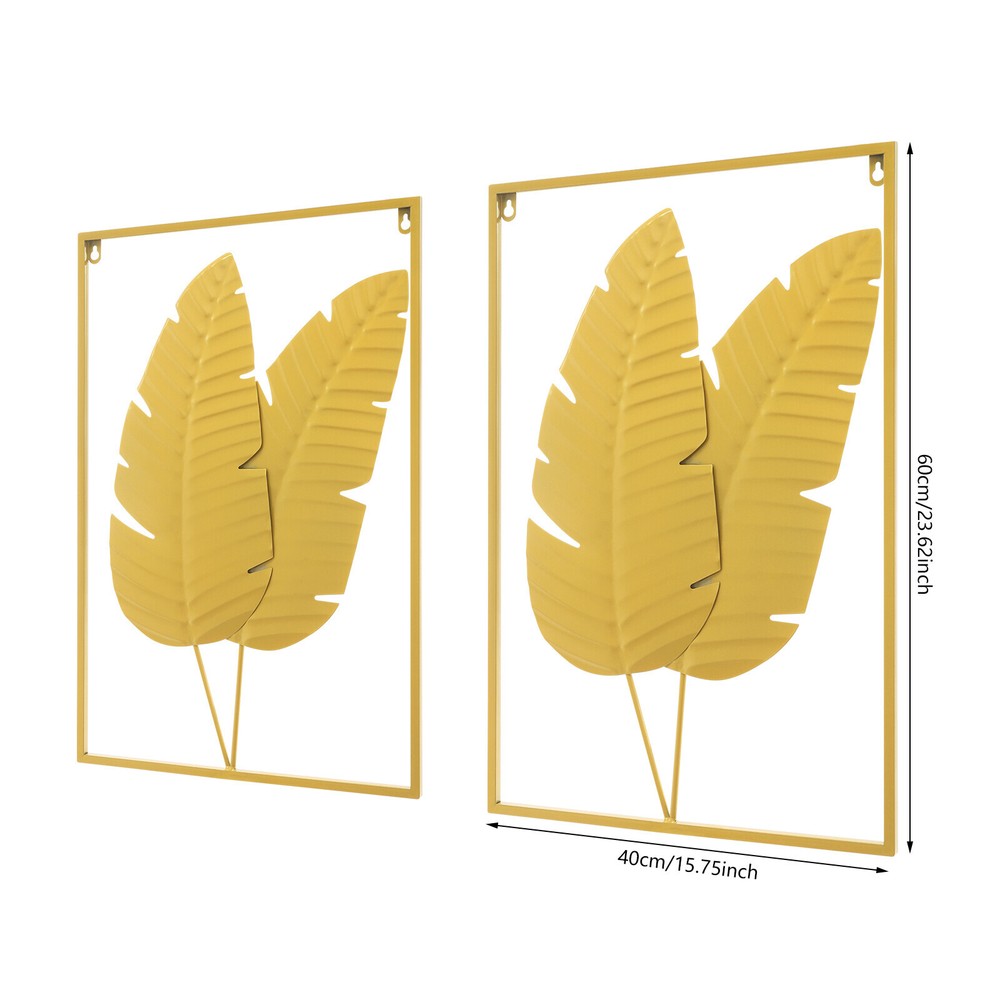 Specifications Material: Iron Color: Gold Style: Modern Pattern: Begonia Leaf Frame Shape: Rectangle Process: Baking Paint Mounting Type: Wall Mount Indoor/Outdoor Use: Indoor Assembly Required: No Number of Items: 2 Each Product Thickness: 10mm/0.39in Each Product Size(L*H): 41*61cm/16.14*24.02in Package Size: 62*42*5.5cm/24.4*16.54*2.17in Gross Weight: 2.7kg/5.95 lbs Net Weight: 2.57kg/5.67 lbs Package Included 2* Wall Decorations Other Accessories for Installation 2PCS Wall Decorations Gold Iron Leaf Wall Hanging Home Decor w/Frame Wall Decor Description Do you want to add a unique touch of beauty to your space? This wall decoration is undoubtedly your ideal choice. It is meticulously crafted from premium iron, ensuring durability and a like-new appearance even after long-term use. Choosing it is not only a pursuit of a life of exquisite taste but also a reflection of an endless yearning for nature and a profound admiration for beautiful things deep within your heart. Key Features Long Service Life: Made of high-class iron with a baking painting process, this product is wear-resistant, not easy to oxidize or deform, and can be used for a long time. High Stability: Each decoration has two holes that are small at the top and large at the bottom, which not only facilitate installation but also help the product to be firmly fixed on the wall. Thoughtful Design: The thickness of the product is only 10mm, together with the size of 16.14*24.02 inches, which will not make the wall feel abrupt or occupy too much space, beautifying your space without any unusual feeling. Set of 2: This set contains 2 pieces of decorative items of begonia leaf, whether the combination of hanging on the living room wall or separately embellishing different spaces, can easily cope with it. Fashionable Appearance: The leaves are lifelike in shape and have a strong sense of three-dimensionality. Paired with dazzling golden tones, they showcase a fashionable and elegant artistic atmosphere and can be integrated into various home styles. Ideal Gift: This product is not only elegant and stylish but also highly practical, making it a great choice for those who want to add a decorative art wall to their home for friends, family, and colleagues. Simple Installation: With the one-piece structure, You just need to use the screws to fix the product on the wall, which is convenient and simple. Easy to Clean: The simple structure makes this product easy to clean, you just need to wipe the surface with a damp cloth. Customer Service: We stand behind all our guests and look forward to assisting you with your purchase. It is our pleasure to answer your confusion and questions. The end of the story between us is not "we sell and you buy". Details Smooth Edges: They can protect your hands from getting scratched during installation and daily cleaning. Iron Frame: It provides stable and solid support, ensuring that the decorations can be securely fastened. Exquisite Texture: The delicate texture on the leaves enhances the aesthetic feeling of this product, making it look more realistic and adding more luxury. Application This product is ideal for bedrooms, staircases, kitchens, corridors, bars, foyers, living rooms, offices, halls, hotels, restaurants, cafes, exhibition halls, and wall art decoration. Specifications Material: Iron Color: Gold Style: Modern Pattern: Begonia Leaf Frame Shape: Rectangle Process: Baking Paint Mounting Type: Wall Mount Indoor/Outdoor Use: Indoor Assembly Required: No Number of Items: 2 Each Product Thickness: 10mm/0.39in Each Product Size(L*H): 41*61cm/16.14*24.02in Package Size: 62*42*5.5cm/24.4*16.54*2.17in Gross Weight: 2.7kg/5.95 lbs Net Weight: 2.57kg/5.67 lbs Package Included 2* Wall Decorations Other Accessories for Installation Notes Please check the product size before ordering to make sure it fits your needs. Please allow the slight color difference caused by the shooting light and 1-3cm error due to manual measurement, and make sure you do not mind before you order. Payment Delivery details Terms of sales About us Contact us Payment We accept ebay payment 。 Fees such as import duties, taxes are not included in the item price or shipping costs. These charges are the buyer's responsibility. Delivery details Shipping: 2-9 working days to: USA Terms of sales We maintain high standards of excellence and strive for hundred percent customer satisfaction. Feedback is very important to us. We hope that you contact us immediately before you give neutral or negative feedback, so that we can address your concerns. It is impossible to address issues if we do not know about them! About us Your satis faction is our ultimate goal. We work hard to earn your trust and future business. Our certified technicians have tested each item before shipping. The unit comes with 1 year limited warranty on all manufacturing defects. a) If you receive a defective item, you may return it or ask for a discount. Please contact us within 14 days after you receive the package. b) What you returned must be intact and in its original packaging as re? u. Customer is responsible for shipping costs of the returned item. c) We will cover the cost of shipping back t with the shipping rate indicated in the registration page. We will send you a new unit or refund the full payment you paid. Thank you. Contact us Business Hour Business Hour: Monday To Friday: 8:30 AM to 5:00 PM (Beijing China time) Due to time zones, our reply to your questions may not be immediately. But within above working time, we will reply your email within 24 hours. If it's non-workdays, please kindly be patient and wait till Monday. Please contact us with ebay message. Please feel free to contact us if you have any questions. Monday To Friday: 8:30 AM to 5:00 PM (Beijing China time) Due to time zones, our reply to your questions may not be immediately. But within above working time, we will reply your email within 24 hours. If it's non-workdays, please kindly be p