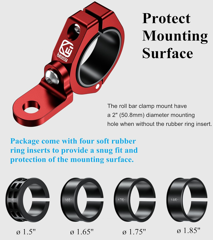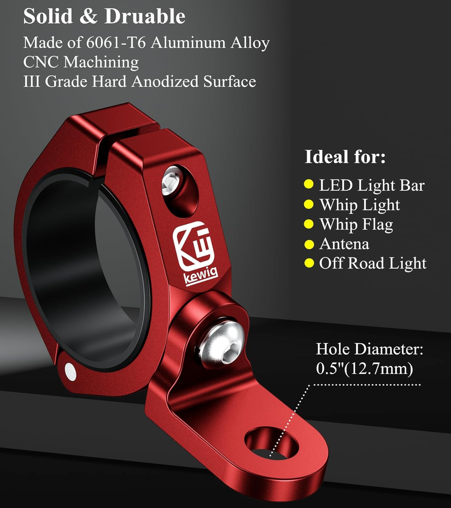 Store New Arrivals Add to Favorite View Feedback Contact 2PCS Whip Light Mount, Solid Aluminum Alloy UTV Flag Mounts, Off-Road LED Light Bar Mounting Bracket, Heavy Duty Roll Cage Clamp Holder Fit 1.5''/1.65'' /1.75''/1.85''/2'' Bars Description Item model number C14B-RED-2PACK Style Modern Power Source no Type of Bulb no Country of Origin China Warranty Description 1 year Batteries Included? No Batteries Required? No Finish Hard Anodized Product Dimensions 4 x 3 x 0.77 inches Material Aluminum Item Depth 3 inches Finish Type Hard Anodized Item dimensions L x W x H 4 x 3 x 0.77 inches Item Weight 15.2 ounces Special Features Made of 6061-T6 aluminum alloy, CNC Machining Integral Forming, iii grade hard anodized surface. Part Number C14B-RED-2PACK Mounting Type Round Rail, ATV UTV Roll Cage Color Red Included Components Whip Light Flag Mount The rail bar mount made of 6061-T6 aluminum alloy material with CNC machining and iii grade hard anodized surface for durability and reliability in the most demanding environments Fit on 1.5''/1.65''/1.75''/1.85''/2'' tubes for ATV, UTV, truck, boat, motorcycle, off-road vehicle and farm vehicle. It is applicable for roll bars, roof racks, roll cages, bull bars, head racks, handlebars and more. (Please Note: Before purchasing, please measure the diameter of the mounting rail to confirm whether this clamp mount fits your rail) The tube clamp mount with 360° rotating flag hole (Hole Diameter: 0.5''/12.7mm). Ideal for a variety of applications including whip lights, whip flags, antennas, light bars, LED off road lights and driving lights Kit comes with four sizes of rubber ring inserts to provide a snug fit and protect the mounting surface. Rubber ring diameters: 1.5" (38.1mm), 1.65" (41.91mm), 1.75" (44.45mm), 1.85" (46.99mm). The rubber ring can be increased or decreased according to the diameter of the round rails. The tube clamp have a 2" (50.8mm) diameter mounting hole when without the rubber ring insert Hinged design and single-bolt locking make installation easier. An Allen key is included in the package to facilitate your installation Color: Red, Quantity: 2 PCS Product Description Fit on 1.5" / 1.65" / 1.75" / 1.85" / 2" round rails ABOUT US We offer the best prices around on high quality products. Our E-store includes media such as books, movies, music and games while offering electronics, toys, sporting apparel, clothing, tools, general home, garden items and more. SHIPPING We are always working hard to ensure your package arrives as soon as possible. Please understand that some factors like weather, high postal traffic, and the performance of shipping companies are outside of our control. We offer free shipping to the lower 48 states and ship within 2 business days of payment, usually sooner. We do not accept P.O. Boxes. Please provide a physical address. For shipping outside of the continental USA, we only use eBay's Global Shipping Program.The item is shipped to KY and then sent to the rest of the world. International customers are responsible for all duties and taxes. Continue to check out in order to calculate costs for shipping the item to your country. Messages regarding eBay's Global Shipping Program MUST be directed at eBay EXCLUSIVELY. RETURNS We offer a 30-Day Return Policy on items which you are not completely satisfied with. You have the option for a full-refund or an exchange of the item. No returns are available on items shipped outside of the USA. PAYMENT We accept PayPal. CONTACT US This page content is yet to come Please ad us to your favorite seller and visit again later Thank You CUSTOMER SATISFACTION We try our very best to make sure every customer is completely satisfied. If there's a problem, message us! We're happy to help. WE ACCEPT Copyright © 2021 AutoDS. | All Rights Reserved