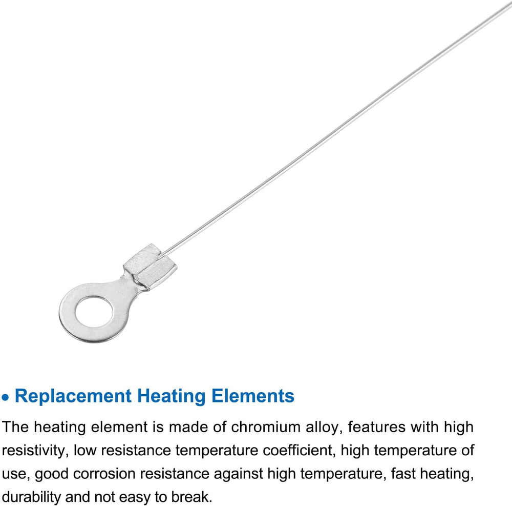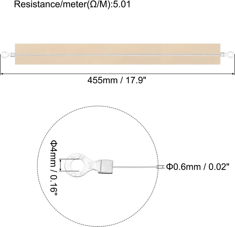 The product is replacement heating elements and PTFE Tapes for sealing machines,is a good spare repair replacement part. Package contains:2 x replacement heating elements;2 x ptfe tapes;Length:455mm/17.9inch;Width:0.6mm/0.02inch;Resistance/meter(Ω/M):5.01;Material: nickel chromium wire; The heating element is made of chromium alloy, features with high resistivity, low resistance temperature coefficient, high temperature of use, good corrosion resistance against high temperature, fast heating, durability and not easy to break;PTFE Tapes are used between low temperature -196℃ and high temperature 300℃. It has the characteristics of anti-oxidation, high insulation, anti-static, high strength, etc. The product is easy to operate and can be installed on most machines with just a screwdriver. In daily use, try replacing old components to get better sealing function. Please make sure your sealer size matches the product size! What is this? The product is replacement heating elements and PTFE Tapes for sealing machines,is a good spare repair replacement part. What will I get? Package contains: 2 x replacement heating elements; 2 x ptfe tapes; Length:455mm/17.9inch; Width:0.6mm/0.02inch; Resistance/meter(Ω/M):5.01; Resistance:2.280Ω; Material: nickel chromium wire; Are there any advantages of the product? The heating element is made of chromium alloy, features with high resistivity, low resistance temperature coefficient, high temperature of use, good corrosion resistance against high temperature, fast heating, durability and not easy to break;PTFE Tapes are used between low temperature -196℃ and high temperature 300℃. It has the characteristics of anti-oxidation, high insulation, anti-static, high strength, etc. How to use it? The product is easy to operate and can be installed on most machines with just a screwdriver. In daily use, try replacing old components to get better sealing function. What should I notice? Please make sure your sealer size matches the product size!