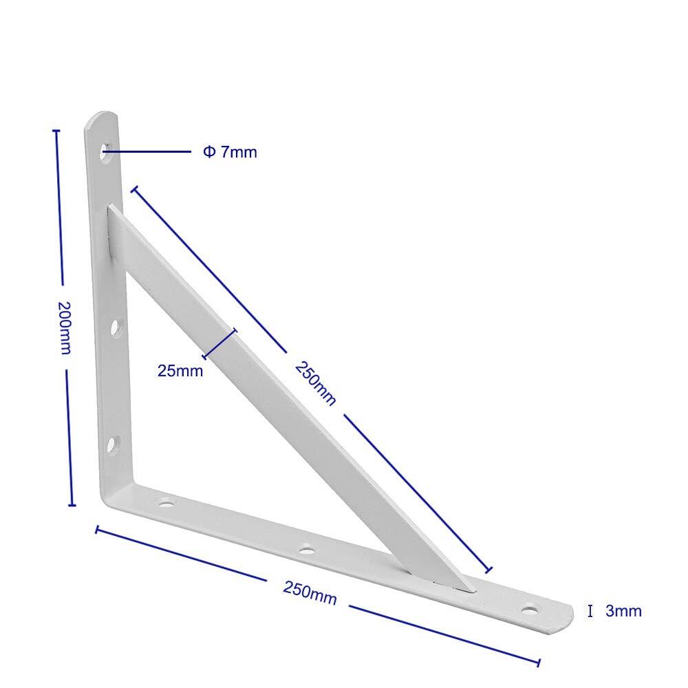 Product Description This white shelf bracket is perfect for display bookshelf, bookracks, storage shelf ,exhibition stand ,etc. Made of heavy duty cast iron, with premium matte white coat finished, adds a touch of industrial and rustic taste to your home Coming with screws and anchors, easy to install. Shelf Brackets Dimension-10*8 inch (250*200 mm); Thickness-3mm; Width-25mm Package included: 2 x Angle Brackets,4 x long screws, 4 x short screws and 4 x anchors, NO WOOD BOARD INCLUDED WIDE APPLICATION---This white shelf bracket is perfect for display bookshelf, bookracks, storage shelf ,exhibition stand ,etc. STURDY & RUSTIC--- Made of heavy duty cast iron, with premium matte white coat finished, adds a touch of industrial and rustic taste to your home EASY INSTALLATION --- Coming with screws and anchors, easy to install. MEASUREMENT---Shelf Brackets Dimension-10*8inch(250*200mm); Thickness-3mm; Width-25mm PACKAGE INCLUDED –-- 2 x Angle Brackets,4 x long screws, 4 x short screws and 4 x anchors, NO WOOD BOARD INCLUDED