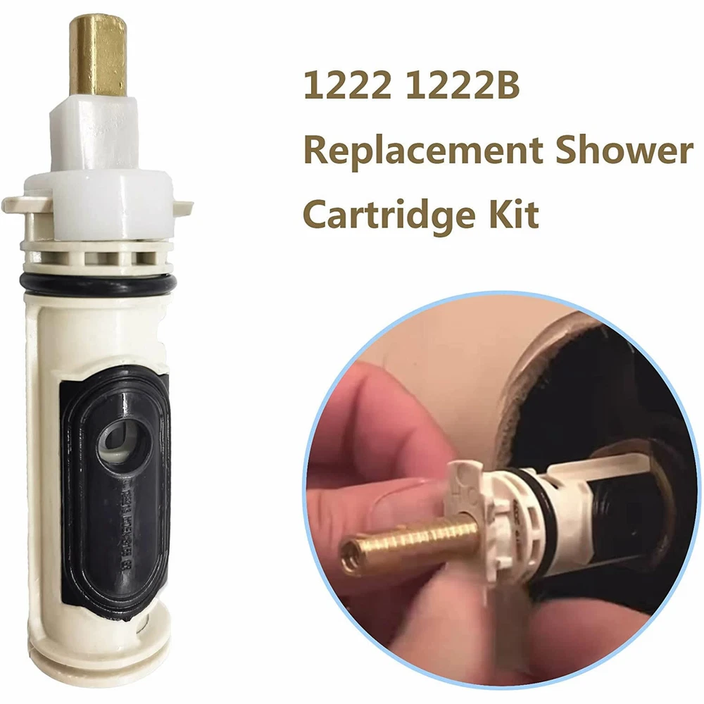 1222 Cartridge Single Faucet Handle Repair Parts Replacement for Posi-Temp Tub & Shower Faucets Configuration Faucet Brass and Plastic,Durable Easy Install Product Description Fitment: Replacement for Moen 1200 brass cartridge, [Fitment]: It is compatible with Posi-Temp Tub & Moen Shower faucets. Your situation may vary slightly, depending on the faucet model. [Durable]: Replace 1222 1222B, single handle replacement filter is made of durable and sturdy brass and plastic structure which can last for many years. [Advantage]:Designed for bathroom bathtub shower.It is no need to replace the entire accessories-sturdy, clean and effective filter replacement parts, perfectly fit your bathtub shower. [Easy]: It can be easily replaced-equipped with O-ring lubrication, rotating cover to loosen the installed cartridge , Installation/removal instructions, cost-effective maintenance. [Package]: 2 *1222 Cartridge. How to remove the 1222 Cartridge or 1222B Cartridge? Step 1: Prepare Turn off the main water supply, and open the faucet handle to relieve any water pressure and drain the lines. Step 2 Loosen the Handle Adapter screw and remove the Adapter. Step 3 Pull off the Key Stop and Adjustable Temperature Limit Stop, then the Stop Tube.Pull out the cartridge Retaining clip with Needlenose Pliers. Step 4 Make sure the cartridge is in the ON position.The notch in the stem should be facing up.Remove the cartridge from the valve.You can also use the cartridge Removal Tool to pull out the Cartridge How to install? Step 1 Apply grease to the cartridge Oval on both sides.Make sure the notch in the cartridge Stem are facing up, then insert the new 1222 into the valve. Step 2 Reinsert the Retaining Clip to hold the cartridge in place. Step 3 Turn the Cartridge to the OFF position.The notch in the stem should be facing down.Slide on the Stop Tube, Adjustable Temperature Limit Stop and Key Stop. Step 4 Finish up by reinstalling the Handle Adapter and Handle.