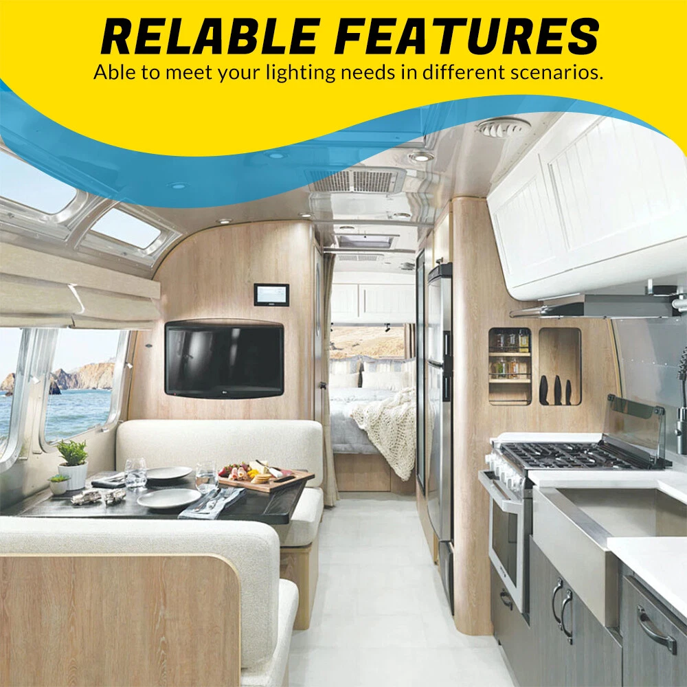 Features: Perfect replacement light for Car/RV/Trailer/Camper/Motorhomes/Marine Boats. It uses high-quality environmentally friendly plastic materials and the most advanced LED lighting technology, which is heat-resistant and corrosion-resistant. Convenient ON/OFF switch design with built-in 2-way switch, allowing you to use one or both sides of the lamp independently. Low power consumption and high energy efficiency, LED bulbs are designed to consume less power than traditional incandescent bulbs. This ensures that your RV's battery or power source is not overtaxed, extending its lifespan. Easy to install. It has 2 non-polarized two wires and comes with nuts and screws to hold it directly in place, suitable for smooth surface mounting. Specification: Material:Plastic Color: Clear Lens Voltage: 12V LED chip: 2835 Power: 8.5W Working life: 50000h Dc voltage: 0.71A Operating temperature: -20-60℃ Number of lamp beads: 48 Product color temperature: white light 4000~4500k Built in 3-way switch (to use one or both sides of light fixture) Fit for: Applications include 12 Volts DC, recreational vehicles Package Includes: 2 X Double Dome Lights (Mounting hardware Included)