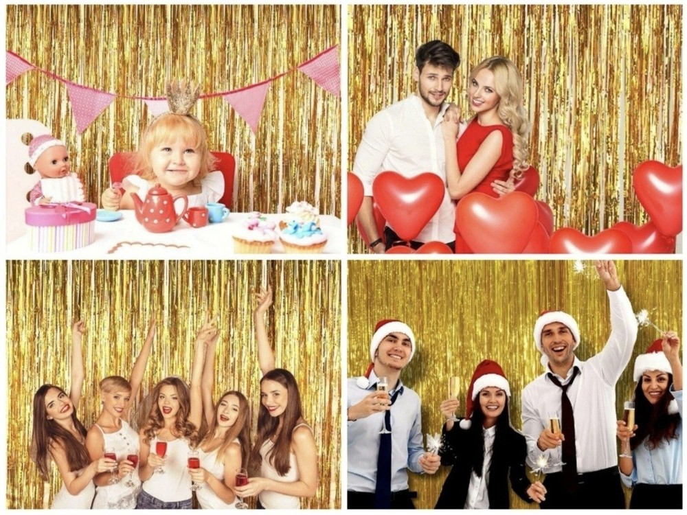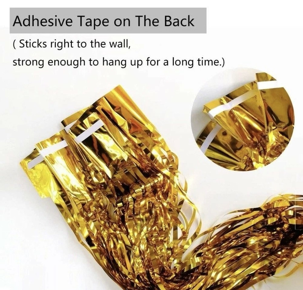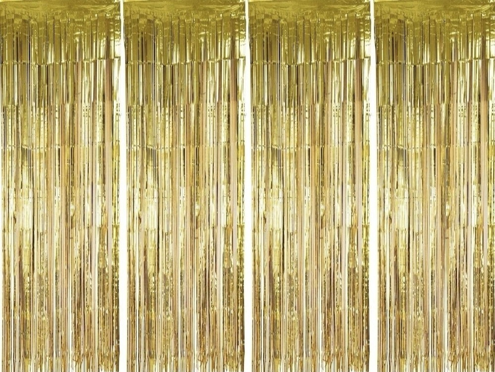 The 2-pack 2×1M Foil Fringe Tinsel Shimmer Curtain by The Party Place is perfect for adding a touch of celebration and fun to any event. Made from shimmering gold foil, this curtain decoration serves as a photo backdrop for birthdays, weddings, Halloween, Christmas, and New Year parties. Create a festive atmosphere with these vibrant party curtains, ideal for groups of any age. Bring a touch of happiness and style to your next special occasion with this eye-catching foil fringe tinsel curtain.