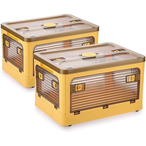 2-Pack 28L Foldable Plastic Storage Bins with Yellow Accents