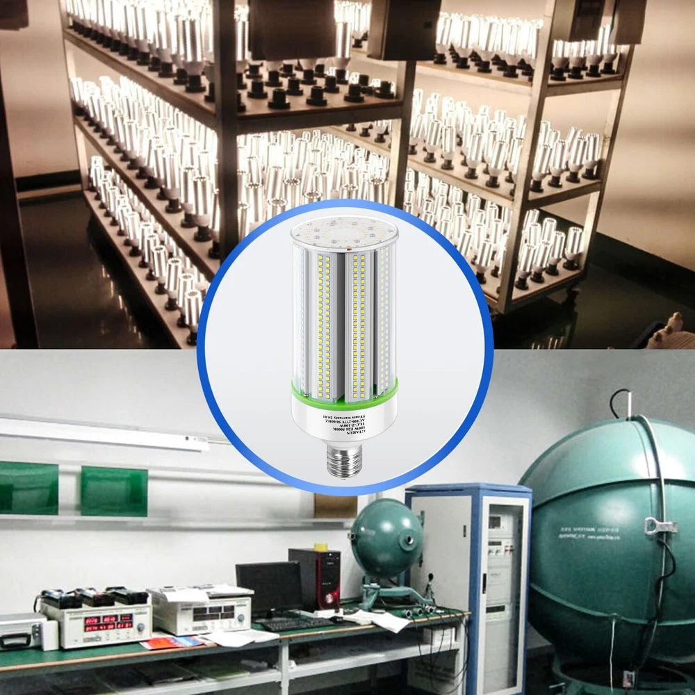Specializing in high-quality LED replacement products in the past decade, we have more than 40 products. In addition, with improved production equipment, we can independently produce LED radiator, LED power supply and LED lamp plastic parts The LED corn lamp certified by FCC can beused to replace 70W, 100W, 150W, 175W, 200W, 250W, 320W, 400W and 600W 800w 1000w metal halide lamp (MHL),high intensity discharge bulb (HID), high pressure sodium bulb(HPS), incandescent bulb and Compact Fluorescent bulb(CFL ) perfectly. Besides, LED corn Bulb is widely used in outdoor lighting,warehouse lighting,street lighting, high-bay & low-bay LED lighting LED flood lighting, industrial spaces lighting ,garage lighting ,commercial lighting, shopping lighting and parking lot lighting,factory lighting, wall pack lighting,area lighting ,driveway lighting,post top lighting,barn lighting ,patio lighting , courtyard lighting,garden lighting ,canopy lighting projects and so on. It not only has strong lightness, but alsois high-efficiency. In addition, we provide five-year warranty With it, let us do energy conservation together Specification: CRI: >80 PF: >0.9 THD: <20% Wattage: 60W Lumen Efficacy:130lm/w. LED Lamp:SMD2835LED Brightness:7800Lm Color Temperature: 5000 Kelvin LED Qty:396pcsSMD2835 Socket: E26/E39 Waterproof: IP60 EmittingAngle:360 degrees NOTICE: ● Make sure to remove or bypass the ballast in the fixtures before installing. Don't need ballast, just wire them directly. ● Suitable for use in enclosed luminaires, Please CONFIRM the installation size ● The input voltage and lamps should be matched(AC110V-277V) ● Suitable for damp locations(Do not use withdimmers) In the Box: LED Corn Light+E39 or E26 Adapter