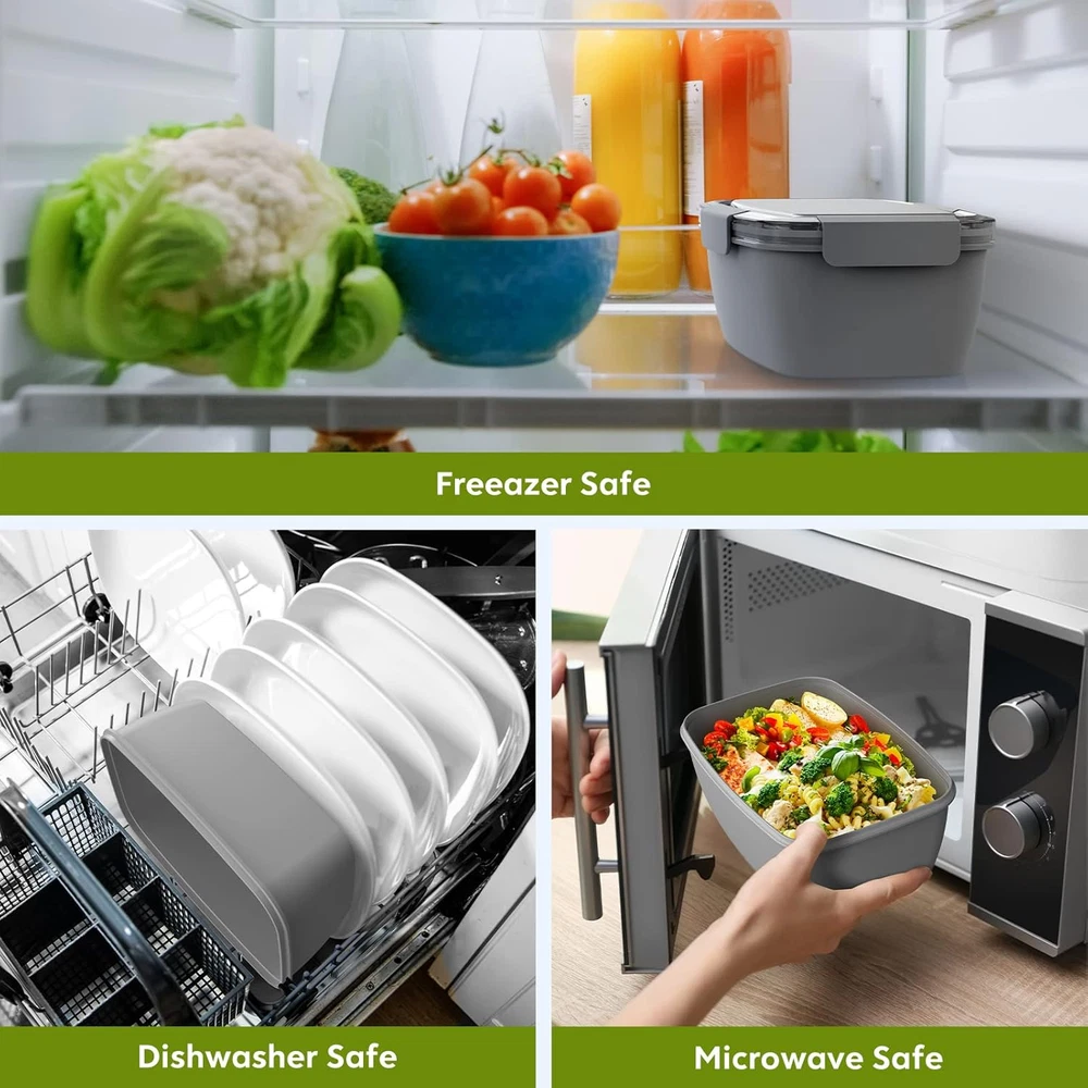 Store New Arrivals Add to Favorite View Feedback Contact Fast deliveries to the customer's home Quality customer service John Make the customers happy! 2Pack Salad Lunch Container, 68Oz Salad Bowls with 4 Compartments Tray,Leak Proof Lunch Box with Fork for Men,Women Bpa-Free Snack Container with Sauce Container for Dressings-Grey Description 4 Compartments to Keep Food Fresh - Get benefit from brilliant idea of the Dietitian,our Salad compartment lunch box match with 4 compartments and 1 separate salad dressings container that allows you to bring a range of different foods without them mixing together in a soggy Large Salad Lunch Container - 68-oz salad bowl is large enough to pack a balanced meal for any size of appetite from kids to adults. 2 large compartments with 5oz for meat as well as fruit. The small compartments with 3oz can be paired with snacks and nuts.It fits easily into your backpack or handbag, making it ideal for use in picnic, office,gym, school, travel, or wherever you want Food Safety Materials - For the health of kids and adults,our salad to go plastic container made of safety materials BPA free, durable, tasteless, non-toxic. It is microwave safe( please open and remove the lid while you microwave the food) freezer safe,dishwasher safe. (Compartments and lid need to be washed separately and cannot be placed in the dishwasher) Seal Ring & Tight Buckle to Reinforced Leak Proof - Come with silicone sealing ring and airtight lid.Store your salad fresh all the day.Unlike other bento boxes, Cherrysea bento salad container with 4 tight buckles to prevent accidental spills What You Get - 2 x salad container to go, 2 x dressings container, 2 x salad fork. Cherrysea customer service,if you have any question with our 68 OZ large capacity salad lunch container,please get in touch with us for a satisfied solution., we will help you ASAP Product Description Item model number SA Style Kids Capacity 2 Liters Number of Items 1 Pattern Solid Theme Grey Number of Pieces 2 Unit Count 1.7583 Fl Oz Number of Compartments 6 Material Plastic Age Range (Description) Kid Item Form Box Included Components 2 x salad container, dressings fork Closure Type Clip Item Weight 1.7 pounds Material Type Free BPA Free Special Feature Leak Resistant, Freezer Safe, Micro Color 2Pack-Grey Shape Fruit Recommended Uses For Product Travel, School, Picnic Product Dimensions 3.8"D x 6.5"W x 3.8"H Product Care Instructions Hand Wash Only, Dishwasher Safe Size 68OZ ABOUT US We offer the best prices around on high quality products. Our E-store includes media such as books, movies, music and games while offering electronics, toys, sporting apparel, clothing, tools, general home, garden items and more. SHIPPING We are always working hard to ensure your package arrives as soon as possible. Please understand that some factors like weather, high postal traffic, and the performance of shipping companies are outside of our control. We offer free shipping to the lower 48 states and ship within 2 business days of payment, usually sooner. We do not accept P.O. Boxes. Please provide a physical address. For shipping outside of the continental USA, we only use eBay's Global Shipping Program. The item is shipped to KY and then sent to the rest of the world. International customers are responsible for all duties and taxes. Continue to 'check out' to calculate costs for shipping the item to your country. Messages regarding eBay's Global Shipping Program MUST be directed at eBay EXCLUSIVELY. RETURNS We offer a 30-Day Return Policy on items in which you are not completely satisfied with. You have the option of a full-refund or an exchange of the item. No returns are available on items shipped outside of the USA PAYMENT We accept PayPal. CONTACT US This page content is yet to come Please ad us to your favorite seller and visit again later Thank You CUSTOMER SATISFACTION We try our very best to make sure every customer is completely satisfied. If there's a problem, message us! We're happy to help. WE ACCEPT