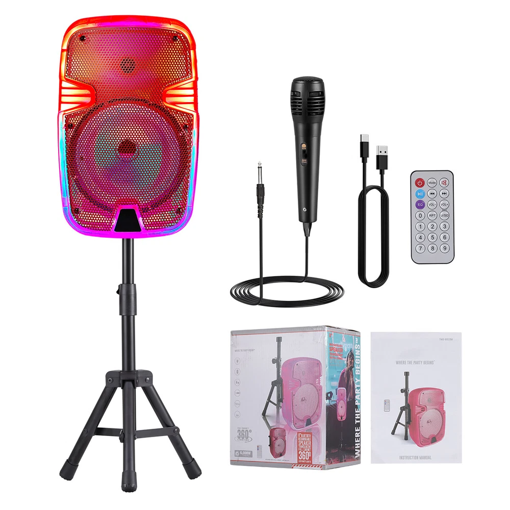 2 Sets Portable Party Bluetooth Speaker 8" Subwoofer Bass Led Tws Fm W/Mic Stand 2 Sets 8-inch Bluetooth Speaker with Transparent Case & Stand (TMS-801SM Red) - Bluetooth, TF Card, USB, AUX, TWS, Dual Mic, Remote Control Elevate your audio experience with our 2 Sets of 8-inch Bluetooth Speakers (TMS-801SM Red) . Designed for both indoor and outdoor use, these speakers deliver powerful sound with a sleek, transparent red ABS casing. Perfect for parties, gatherings, or personal use, this bundle includes everything you need to get started. 1.High-Quality Sound & Versatile Connectivity: Equipped with an 8-inch speaker, this Bluetooth speaker delivers rich, powerful sound. It supports multiple connectivity options including Bluetooth, TF Card, USB, AUX, and TWS (True Wireless Stereo) for seamless pairing with your devices. 2.Complete Set with Accessories: Each set includes a stand, remote control, TYPE-C charging cable, wired microphone, and an English manual . Everything you need for a hassle-free setup and operation. 3.Long Battery Life & Fast Charging: Powered by a DC 5V 1A battery, the speaker charges in just 2 hours (indicated by a red LED light). Enjoy up to 1 hour of continuous playback on a full charge, making it ideal for extended use. 4.Dual Microphone & Remote Control: Comes with 2 wired microphones and 2 remote controls , allowing you to control the speaker and enjoy karaoke sessions or voice amplification with ease. 5.Stylish Design & Portability: The transparent red ABS casing not only looks modern but also ensures durability. The included stands provide stability, making it easy to place the speakers anywhere. Specifications: Material: ABS Color: Transparent Red Bluetooth Model: TMS-801SM Speaker Size: 8-inch Power Supply: DC 5V 1A Charging Time: ~2 hours Playback Time: Up to 1 hour Included Items: 2x 8-inch Bluetooth Speakers, 2x Stands, 2x Remote Controls, 2x TYPE-C Charging Cables, 2x Wired Microphones, 2x English Manuals Why Choose This Product? Perfect for Parties: With dual microphones and powerful sound, these speakers are ideal for karaoke, events, or outdoor gatherings. Easy to Use: Simple controls and multiple connectivity options make it user-friendly. Portable & Durable: Lightweight yet sturdy design ensures you can take it anywhere without worry. Package Includes: 2x 8-inch Bluetooth Speakers 2x Stands 2x Remote Controls 2x TYPE-C Charging Cables 2x Wired Microphones 2x English Manuals Get Yours Today! Upgrade your audio setup with this versatile and stylish Bluetooth speaker bundle. Perfect for music lovers, party hosts, or anyone who appreciates high-quality sound. Order now and enjoy the ultimate audio experience! Note: Ensure the speaker is fully charged before first use. For optimal performance, keep the speaker within the Bluetooth range (typically 10 meters). Payment Shipping Return Feedback Question Payment We accept payment via Paypal ONLY. Immediate payment is required & Shipping will be arranged only your payment is cleared. Shipping Same business day dispatch if paid by 4 pm EST(1 pm PDT). No shipping on weekend or Public Holidays & No responsibility for any customs duty. Return We stand behind our products. Items can be returned for exchange or full refund within 60 days from the date you receive your item. Return shipping is the responsibility of buyer unless the return is a result of our mistake (i.e., your receive the wrong item or damaged item). We will pay for shipping replacement back to you if an exchange is requested. If you want to initiate a return, simply clicks "Return this item" next to the transaction in My eBay, chooses a reason, and prints a return shipping label and packing slip. We’re automatically notified. Feedback Please leave us a FIVE star and POSITIVE feedback if you are satisfied with our product and service. Neutral or negative feedback will not solve problems happily. We believe communication will fix problems and hope every customer can have a good purchasing experience. Question All ebay message will be responded within 1 business day or less, except weekends and holiday!