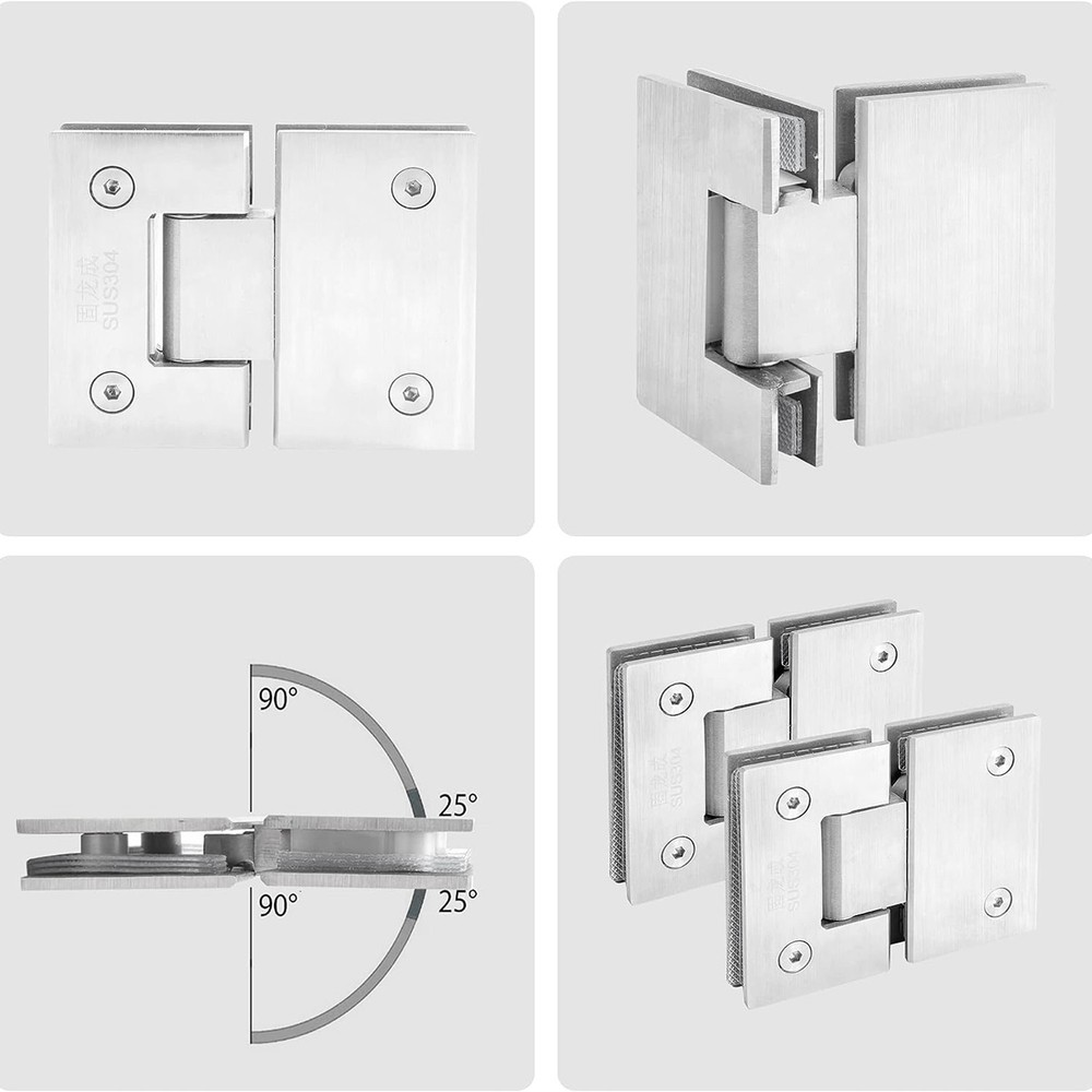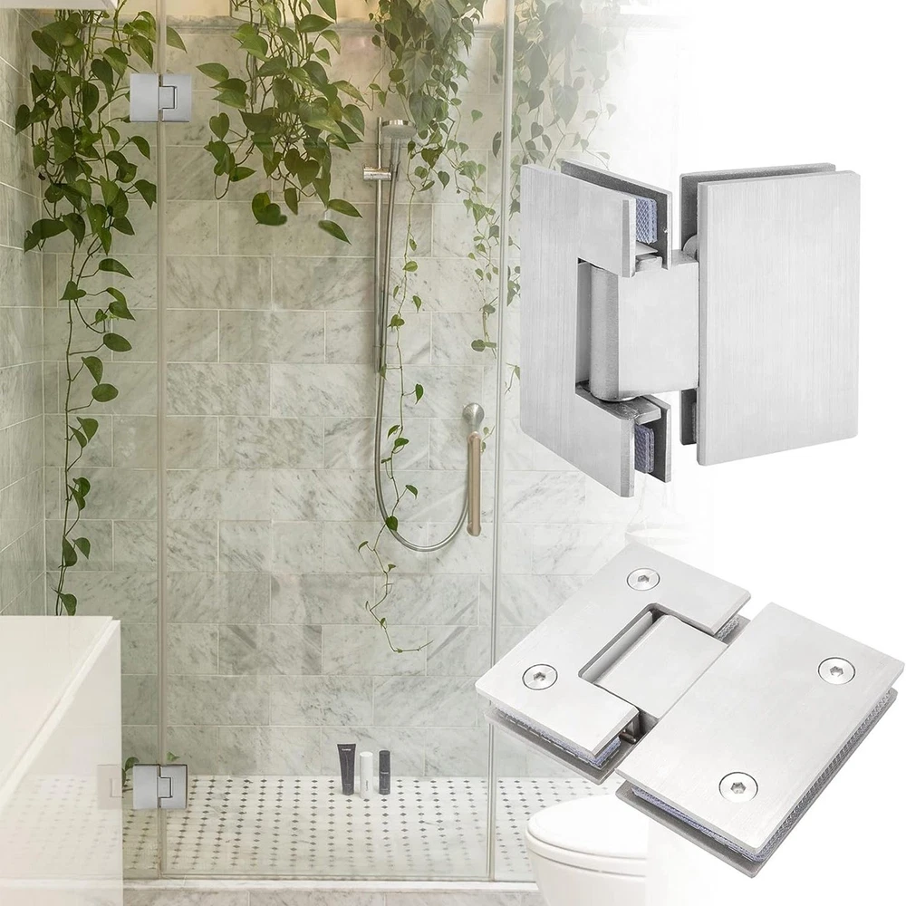 2 Pack 180 Degree Frameless Glass Shower Door Hinges, Brushed Nickel Shower9127 [Note]The 180 degree glass door hinge is suitable for 5/16 to 1/2 inch (8mm-12mm) thick glass, with a maximum load-bearing capacity of 120 pounds. Wall to glass bracket, please purchase according to your needs [304 Stainless Steel Door Hinge]The shower door hinge is made of heavy-duty brushed 304 stainless steel, which is not rusty, -, easy to break or deform, and the brushed does not change color. The thickness of the frameless glass door hinge is 4mm, which is . [180 degree glass door hinge]The replacement of the 180 degree glass door hinge allows for bi-directional opening, flexible and noise free, and each hinge has elastic function. When the door closes to nearly 25 degrees, it automatically close backwards [Easy to Installation]The installation of the shower door hinge is fast and convenient, equipped with installation hardware, making your installation more convenient. The hinge of the glass cabinet door is equipped with high-quality anti slip adhesive to protect your glass from damage. [HEAVY DUTY GLASS SHOWER DOOR HINGES]Frameless shower hinges made of high quality stainless steel with high hardness, sturdy and , rust and resistance; Brushed finish has been special treatment, build to resist daily scratches and tarnishing Colour:silver Material:304 stainless steel Package Contents: 2 x Door Hinge 2 x wrench