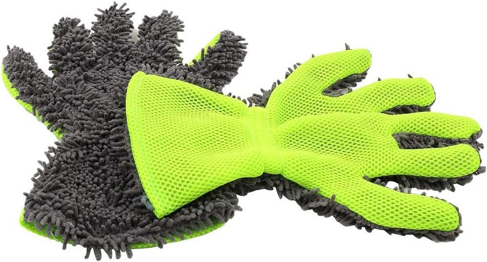 Extra Larger Size Make Cleaning Quicker: One size fits left or right hand,make clean more easier,safe on car paint and other delicate surfaces, for for car detail shop, truck, motorcycle, boat, home. Wash mits can washed by machine,can be reused after drying. Why Choose 2 Mitts? Not one?One using for cleaning your vehicle, 5-fingers wash mitt can help you well getting in smaller or hard to reach areas,2-hands gloves are better than one you can literally use both hands.The other microfiber mits can be used in house, clean the granite kitchen counters and glass dust, can also it clean up dog hair in the bathroom. Thick Absorbent Microfiber and Soft Chenille: High density and thick microfiber gloves holds the more suds and water than sheepskin, the knobby side was used for scrubbing tough dirt, and smooth side works with tons of solutions, absorbent and very soft and scratch free, we love your car as much as you do. 5-Finger Gloves Compare to Sponge: 5-finger car washing mitts design for: (1)Well getting in smaller or hard to reach places you usually miss with a sponge,like spokes,lugnuts. (2)When washing you can still carry stuff like towel,brush,foam to help clean car thoroughly. (3)You will get better coverage and get to narrow areas through flexible fingers. (4)You can still use the hose with them on. Package Contains: You will get 1 pair of 5-finger car washing mitts.Size about 300mmx220mm/11.81 "x8.66"(L*W).