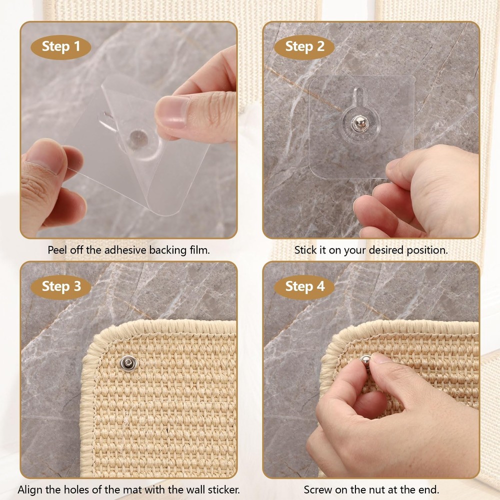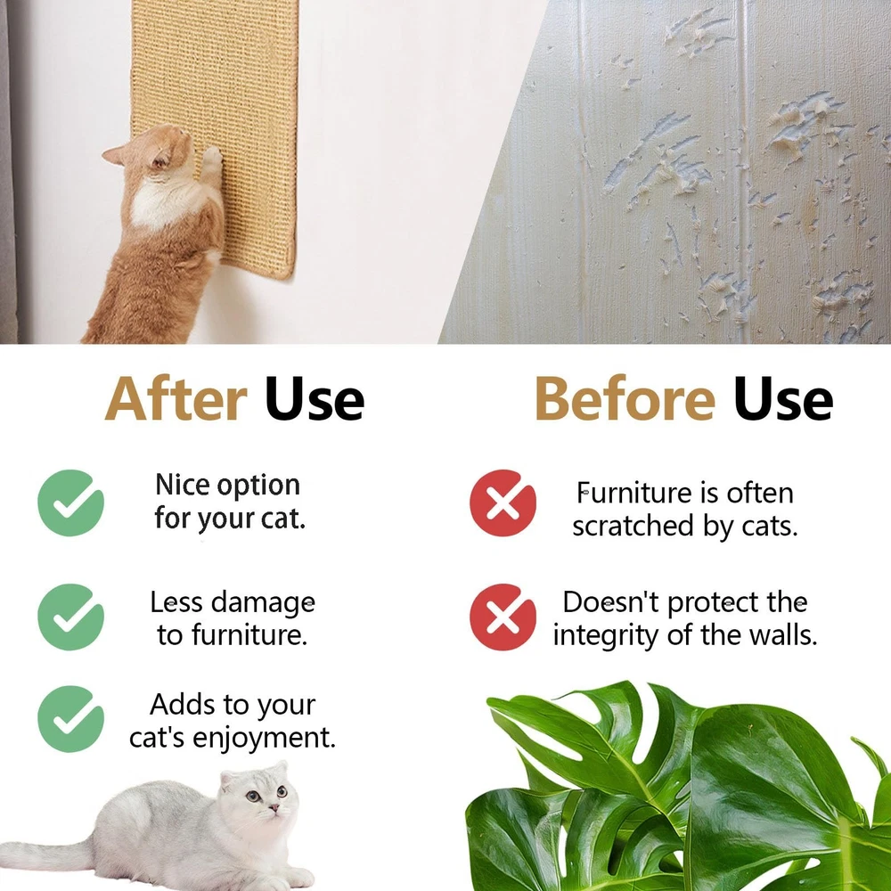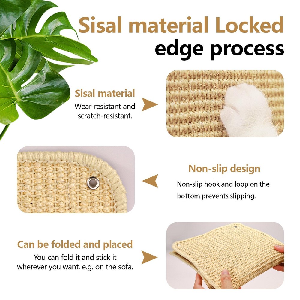 eBay Product Listing Welcome to Your Favorite My Store Your satisfaction is our top priority – Shop confidently Sisal Cat Scratch Pad for Indoor Cats, 19.6" x 9.8" Mountable Cat Wall Scratcher Carpet, Perforated Cat Scratch Furniture Protector for Couch Corner Door Sofa Climbing Hanging (2 Pack) Item Gallery Item Description 【Size Information】You can get 2 sisal cat scratcher rugs, which are 19.6" x 9.8" (50 x 25 cm). They can provide a firm enough surface for your cat to sharpen his claws without hurting. Let your cat release its nature while protecting your furniture. 【Easy to Install】Our scratch pad for cats has perforated holes in all four corners, making it easier for you to install and fix. They are also suitable for mounting on your old cat post or cat scratching board, making them last longer. 【Solid and Wear-Resistant】Comparing with normal cat scratching board, our cat scratch pad is made of premium sisal, stronger and more breathable, also it doesn't create a lot of debris after using. 【Cat Scratch Guards for Furniture】Our cat scratch mats use edge-locking technology, not easy to come loose. They can cover cat scratches and give cats a place to scratch, stopping your cat damaging floor and wall. 【Wide Application】Our cat scratching mat is easy to put basically anywhere, it can be fixed easily by ropes or screws. You can put it in place where your cat often scratches, also you can install it on your couch, floor, wall, and door. Special Features Our sisal scratch pads are finely woven, sturdy and breathable, you can fix them on wall, sofa, door, and cabinet for use. Not just a scratching pad, it can also be used as a little mat on floor to let your cat play and rest. Product Features Great Gift Option: Our classy and solid cat scratch pads will be a very thoughtful and handy gift for cat lover. You can gift them to your family, friends, neighbors, and colleagues who have cat on birthday, Christmas, and Thanksgiving. Small and Soft: If you use our couch cat scratch protector on wall or furniture, it can protect your wall and furniture without taking up extra space. If you just put it on floor, it is also convenient to and use. Various Ways to Use: You can use hooks or screws to hang this cat carpet protector, or you don't want to hurt paint on your furniture or walls, you can use string to hold it in place. Directly put it on floor is also a good way to use. Specification Material: Sisal Color: Beige Size: 19.6" x 9.8" (50 x 25 cm) Package Contents: 2 x Cat Scratch Pad Our Guarantee To You We offer fast shipping, free delivery, and 100% customer satisfaction guarantee. Not satisfied? Return your item for free within 30 days. 30-Day Free Returns Shipping Details Items will be sent to your eBay address. Please verify before purchasing. Typical delivery within 3-7 business days. Professional shipping services used for all orders. We ship to the continental US (48 states only). Unable to deliver to Alaska, Hawaii, or territories. No APO/FPO or PO Box deliveries available. We use eco-friendly packaging Payment Options We accept these secure payment methods: All transactions securely processed through eBay's payment system. Simple Returns 30-Day Satisfaction Promise Contact us through eBay messages within 30 days of delivery. We'll provide return instructions and our address. Return the item in its original condition. We'll process your refund within 48 hours of receiving the item. Get In Touch Have questions about your order? Contact us through eBay messaging for prompt assistance. We typically respond within 24 hours.
