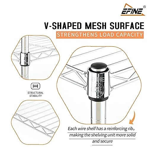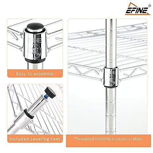 Menu 1. We require immediate payment. 2. We currently accept payment via eBay managed payments only. 3. Once payment is cleared, we will dispatch your shipment within 1-3 business days. Please refer to the "Shipping" tab for more information regarding shipping speed to your destination. EFINE 2-Pack 3-Shelf Chrome Shelving Unit with 3-Shelf Liners, Adjustable Rack, Steel Wire Shelves, Shelving Units and Storage for Kitchen and Garage (36W x 16D x 36H) Product description Metal HEAVY-DUTY CARBON STEEL CONSTRUCTION: Constructed with heavy-duty carbon steel, these storage shelves feature exceptionally secure wire racks, being able to bear more weight with its 20% higher density. The unique triangular mechanical design creates an anti-rust wire shelving unit that is tighter, stronger, and more durable than traditional racks. ADJUSTABLE HEIGHT: Enjoy a completely customizable metal shelving unit. The build allows for height adjustments - giving you the freedom to adjust accordingly to your needs. Comes with easy adjustable clips to secure and stabilize each shelf. The multi-purpose shelf rack is perfect for garage shelving, kitchen storage, pantry shelving, and more. STRONG WEIGHT CAPACITY: Each shelf holds up to 100-lbs, with the total max weight being a sturdy 300-lbs. You also have the option to purchase an extra wire shelf if you’re looking for even more space. STURDY LEVELING FEET: This 3-tier storage shelving unit is supported by sturdy leveling feet. Its non-slip grip provides durable positioning for stable storage space. NO TOOLS REQUIRED: Assembly has never been easier. The storage shelf rack’s simple installation requires less than 30 minutes of your time - and zero additional tools. PLEASE MESSAGE US IF YOU HAVE ANY OTHER QUESTIONS, AND MANY THANKS FOR READING ALL OF THIS. Copyright ©#. All Rights Reserved.