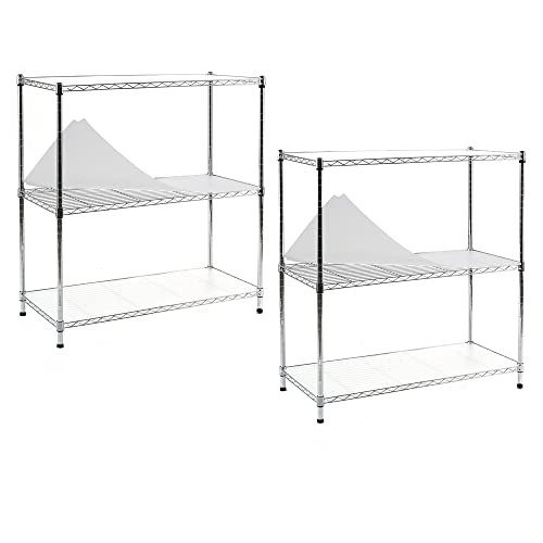 2-Pack Chrome 3-Tier Shelving Units - 3-Shelf Storage Racks