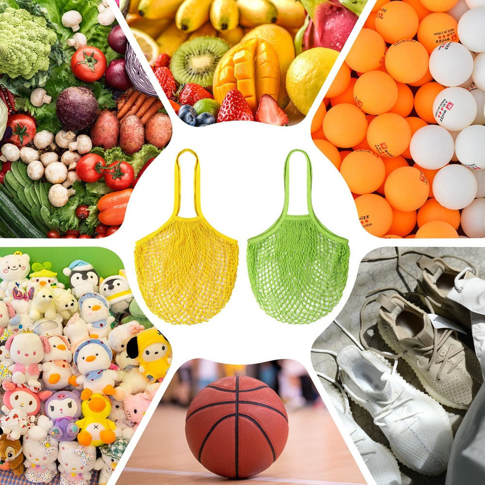 【Material Quality】This bag is made of 100% cotton, which is safe and environmentally friendly. 【Large Capacity and Sturdy】This bag is very sturdy and can hold a lot of things. It can be stretched, and the capacity after stretching may exceed your expectations. They are perfect for the home, grocery store and farmers market. The long handle makes it easy to carry, and you can tie a knot for added security. 【Light and Portable】This mesh bag is very light and very convenient to carry because it takes up very little space. You can keep them in your bag or in your car. 【Easy to clean and reusable】You can hand wash and machine wash, or dry in the dryer and use repeatedly. 【Wide Use】This stylish mesh storage bag can be used in many scenarios and hold various items. If it is used for shopping in shopping malls, grocery shopping, grocery storage, storage bags for vegetable and fruit merchants, it can be hung on the wall, or you can hang a basketball on the wall, it will look very fashionable and beautiful.